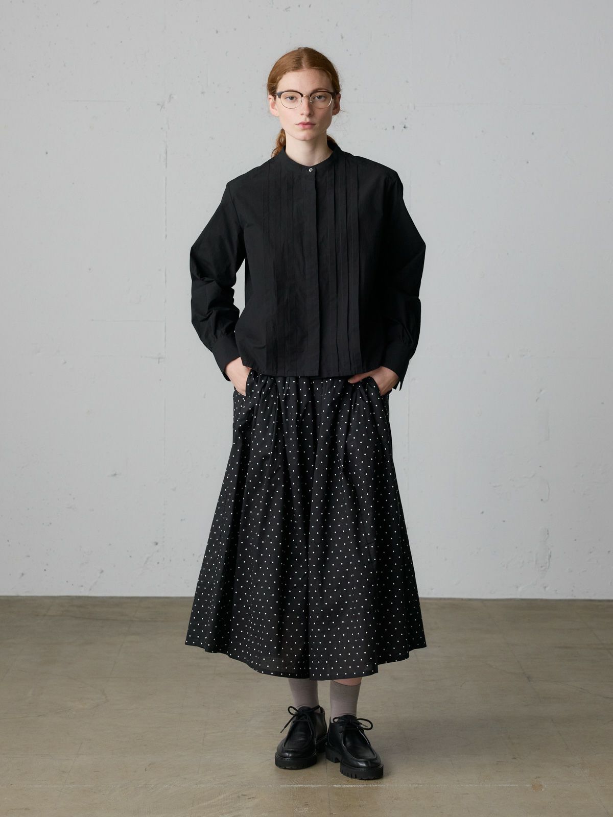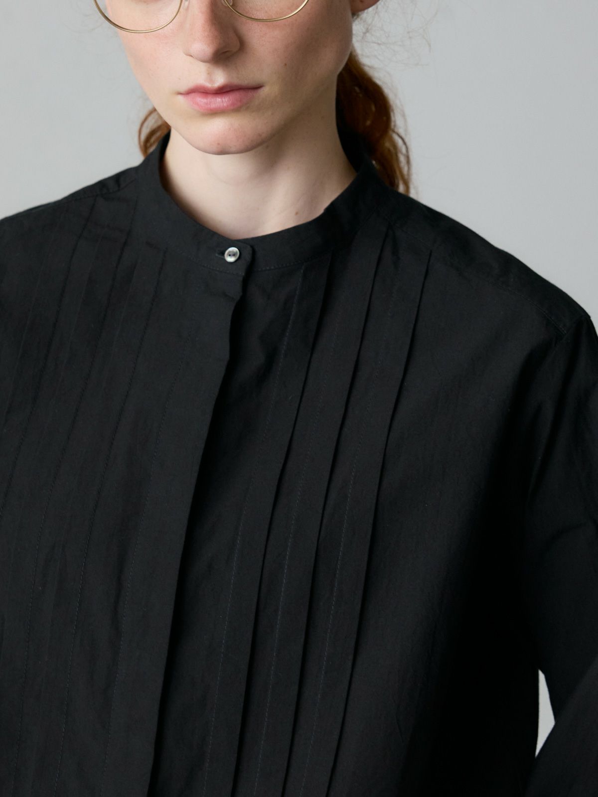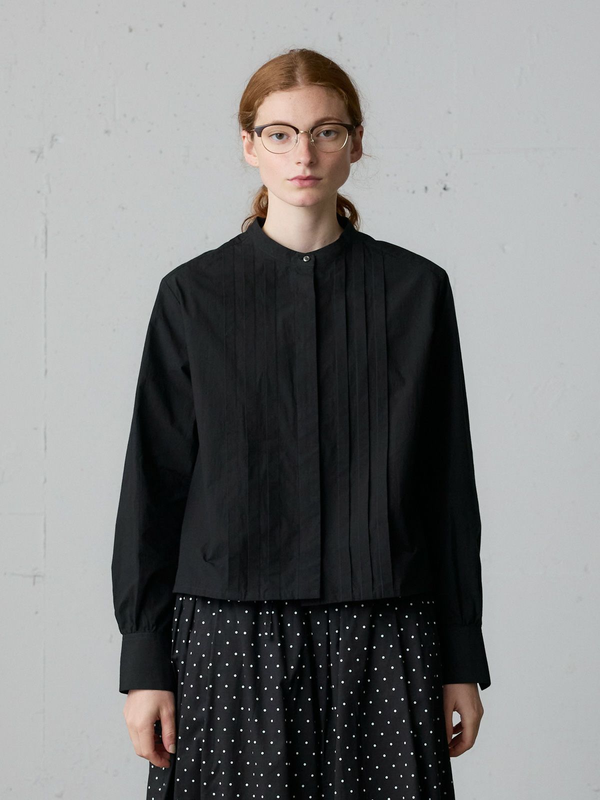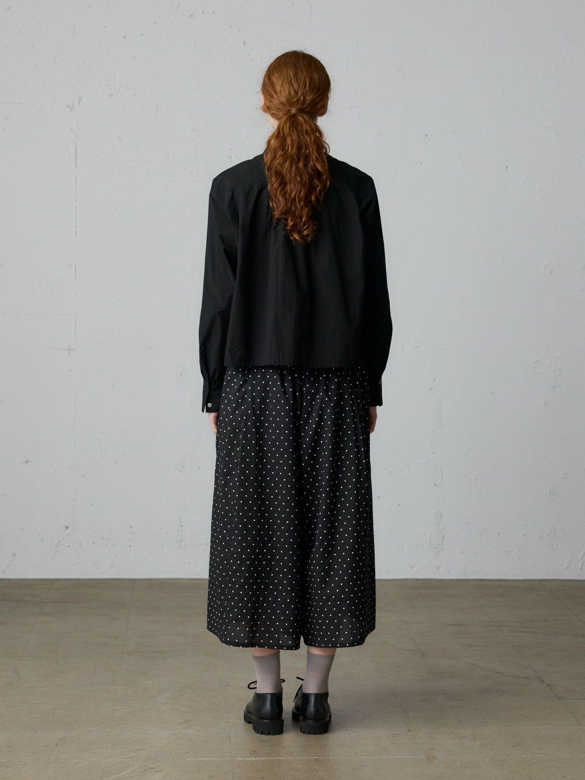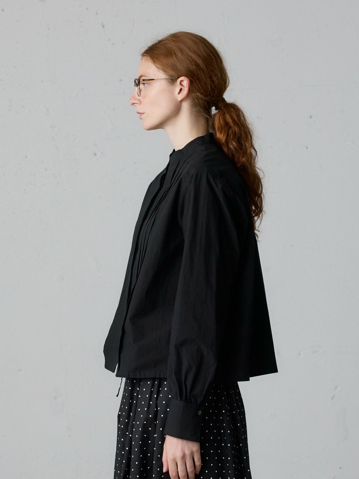 アンティークのワークシャツから着想を得たタックショートシャツ。MidiUmiのNEWアイテムとして季節の変わり目にお勧めの1枚です。ボックスシルエットにし、甘すぎない雰囲気に仕上げました。長めのカフスにすることで、袖をまくった時のシルエットが素敵なシャツです。洗いのかかったヴィンテージ感のあるタイプライターを使用。ヒップに掛かるくらいの丈感なのですっきりと着こなせます。フロントタックのシャープな印象と軽くふんわり感のあるバックシルエットが魅力のシャツです。