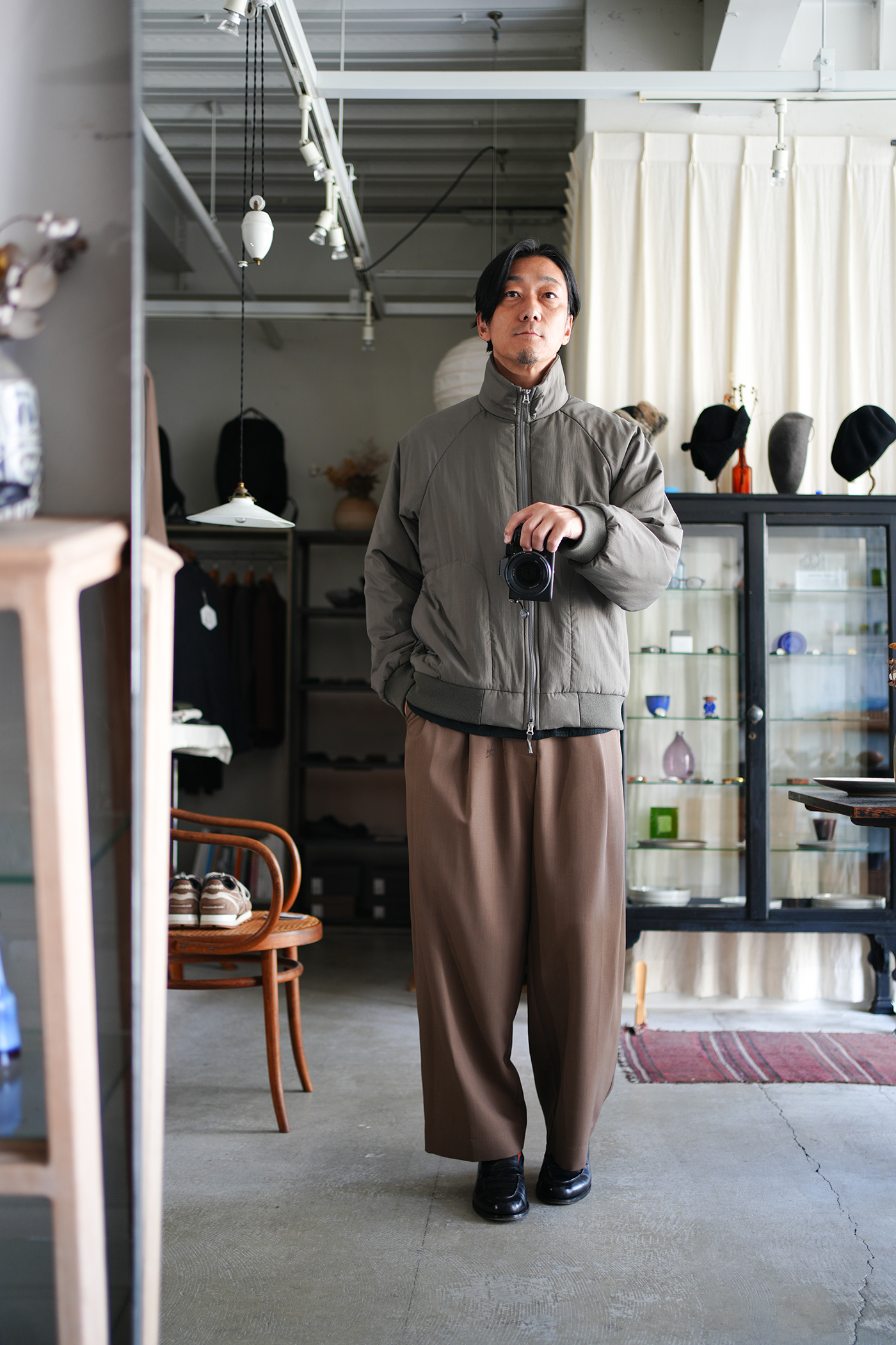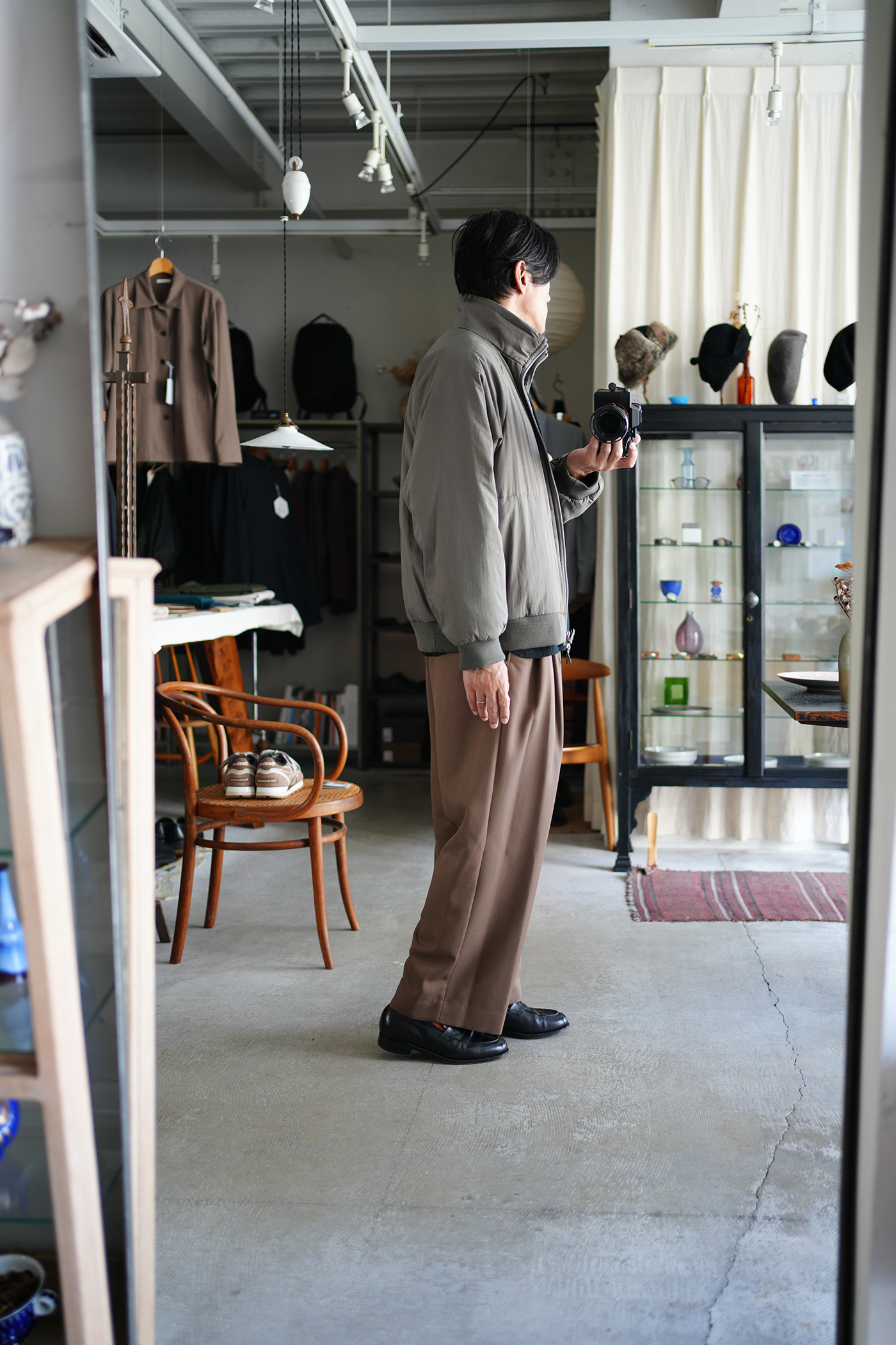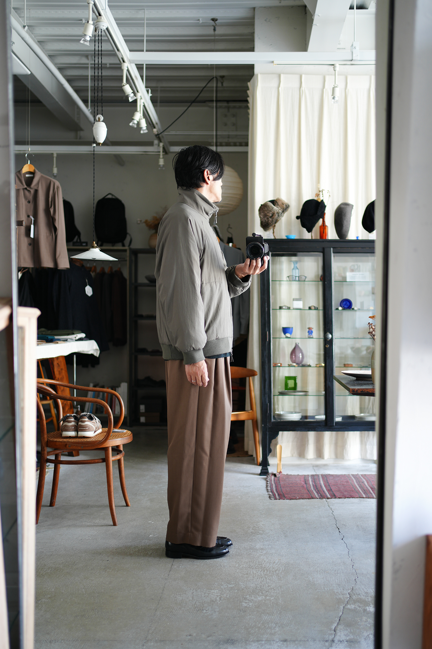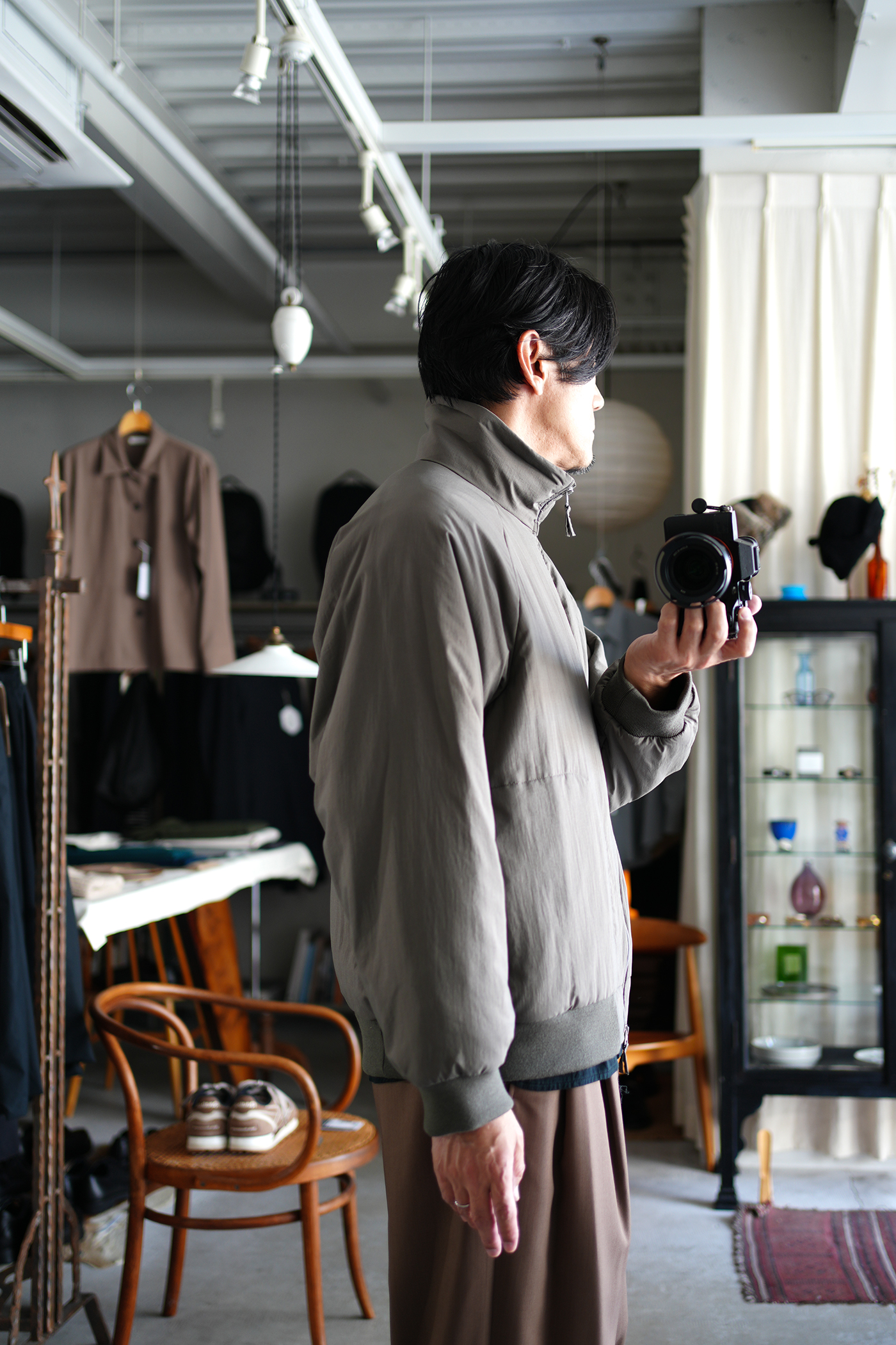 「ATON」 MAT AIRY NYLON | WOOL PADDED STAND JACKET ¥108,900-