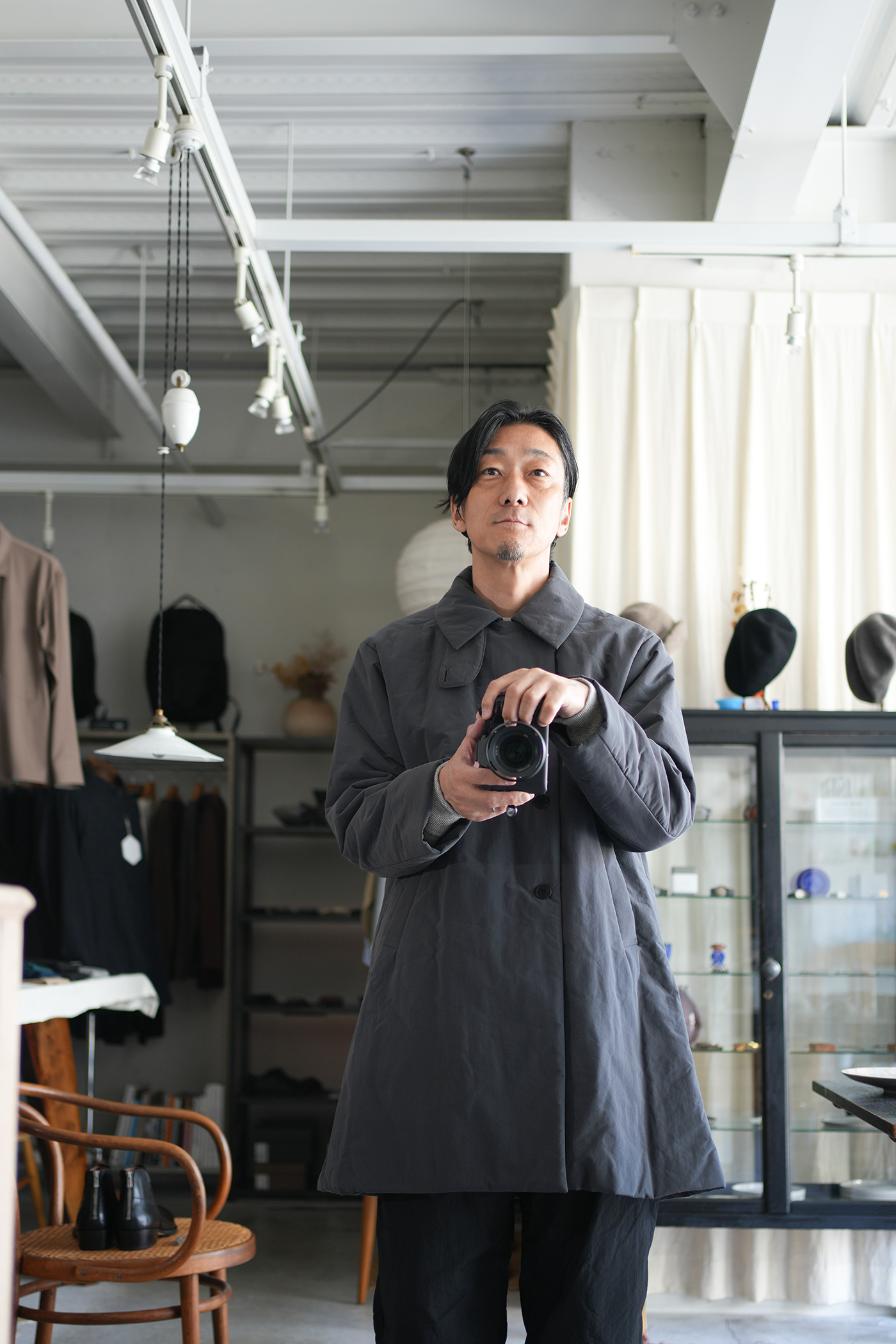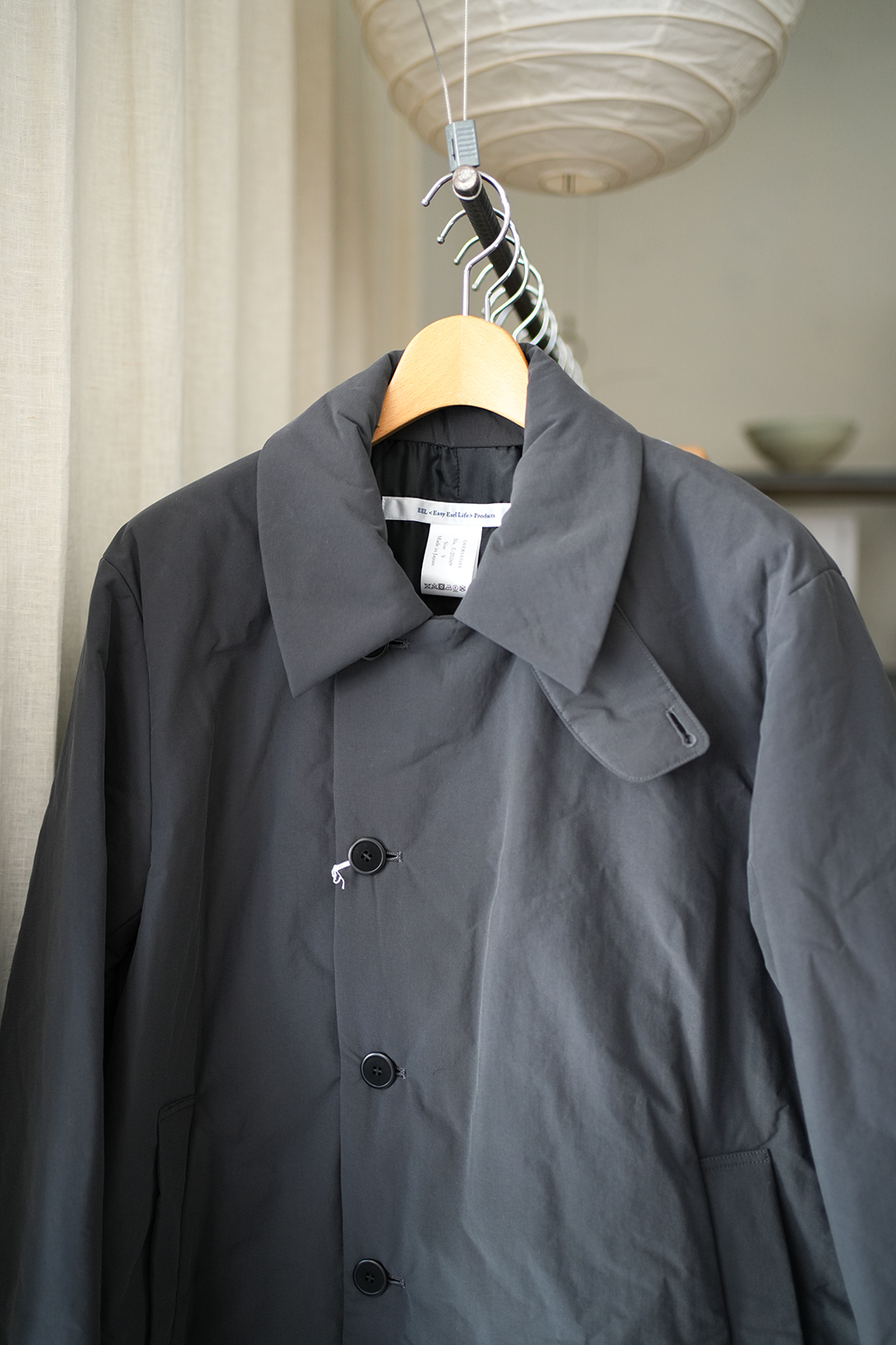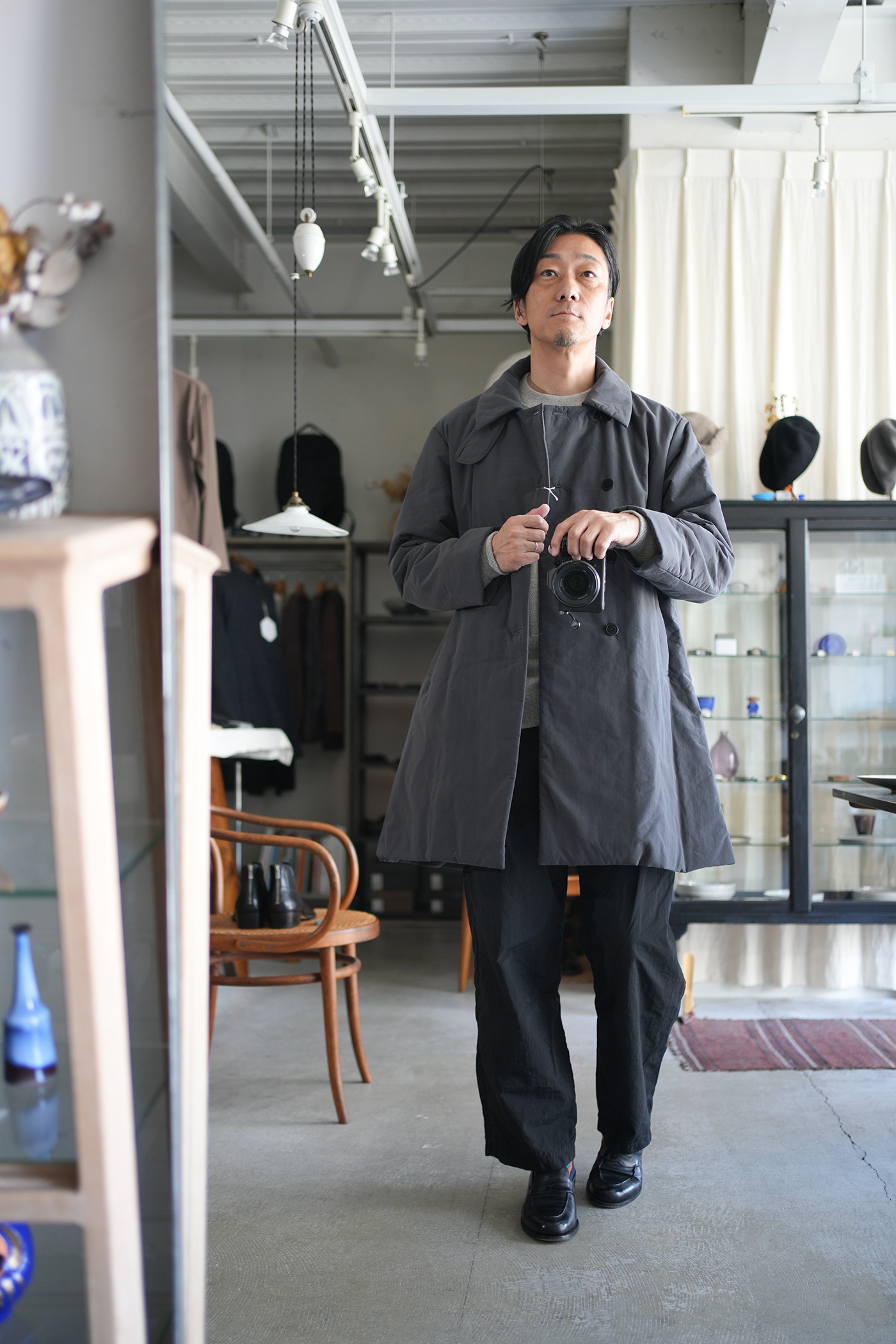 ナイロンに高機能中綿を配した保温性の高いステンカラーコート。軽やかでストレスの無い着心地。