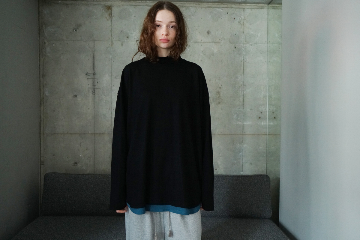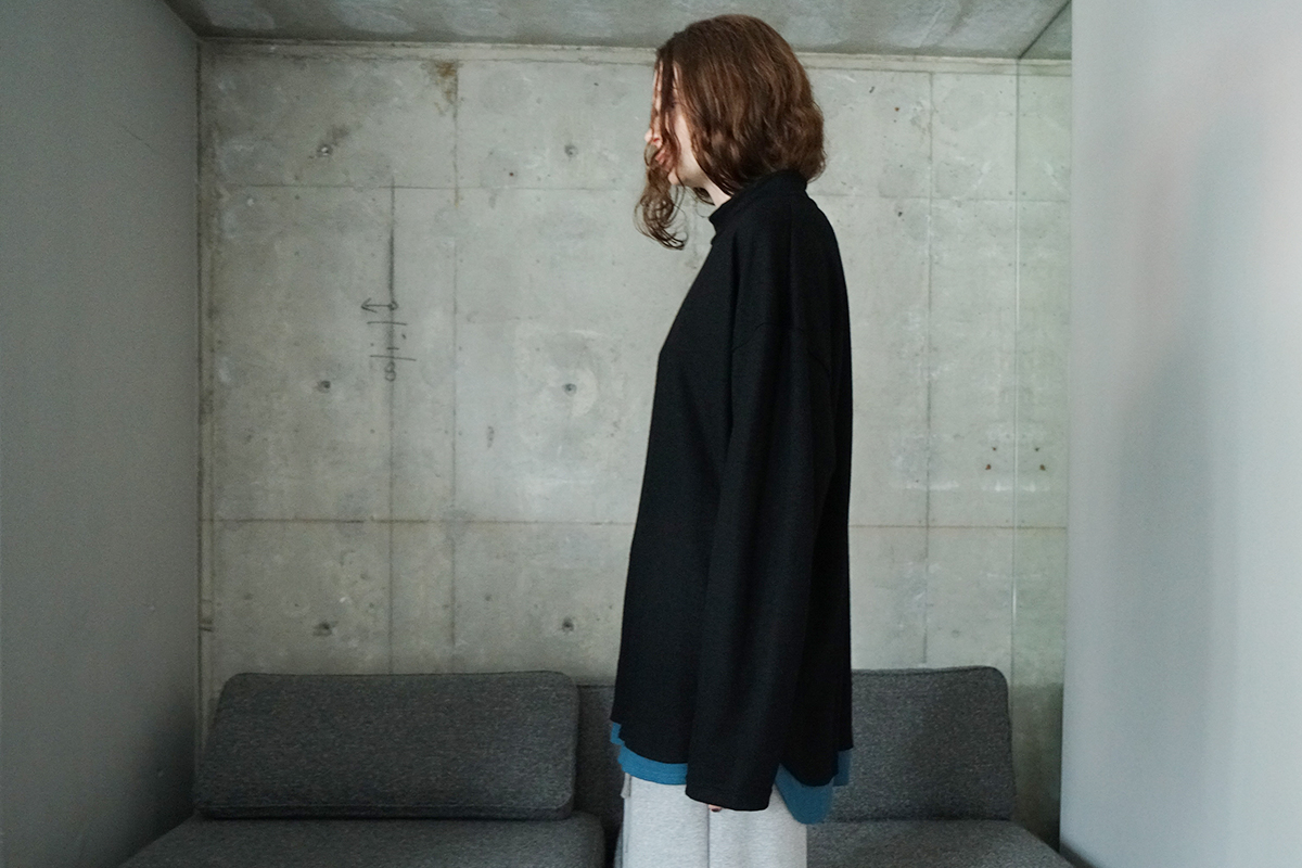 「VU」 petite high neck layered long knit washable wool ¥16,500-