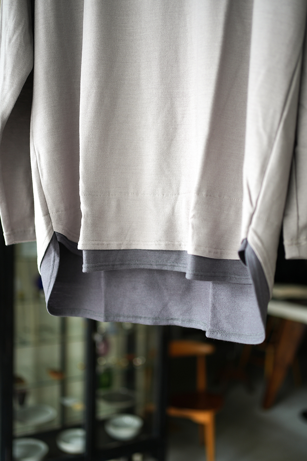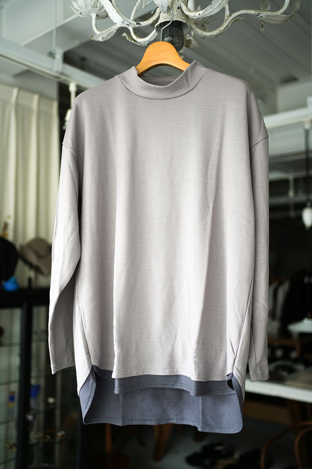 レイヤードデザインが特徴のプチハイネックウールカットソーニット。裾は配色使いでまるで重ね着しているかのような立体的なデザインです。プチハイネックは高さ約4.5cmの低め設定で、締め付け感がなく快適に着用いただけます。生地には少し肉厚でウォッシャブルな100%ウールの天竺カットソーを使用。自宅で洗えるのでお手入れも簡単です。ゆったりとしたシルエットでリラックス感のある着心地抜群です。太番手ウールをミドル仕上げにすることで、適度な肉感とハリ感のある生地に仕上げています。スケールオフ加工を施し、高い洗濯耐性を実現しています。 手洗い可能、洗えるウール。