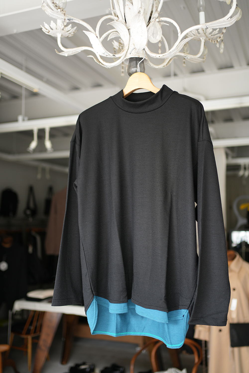 「VU」 petite high neck layered long knit washable wool ¥16,500-