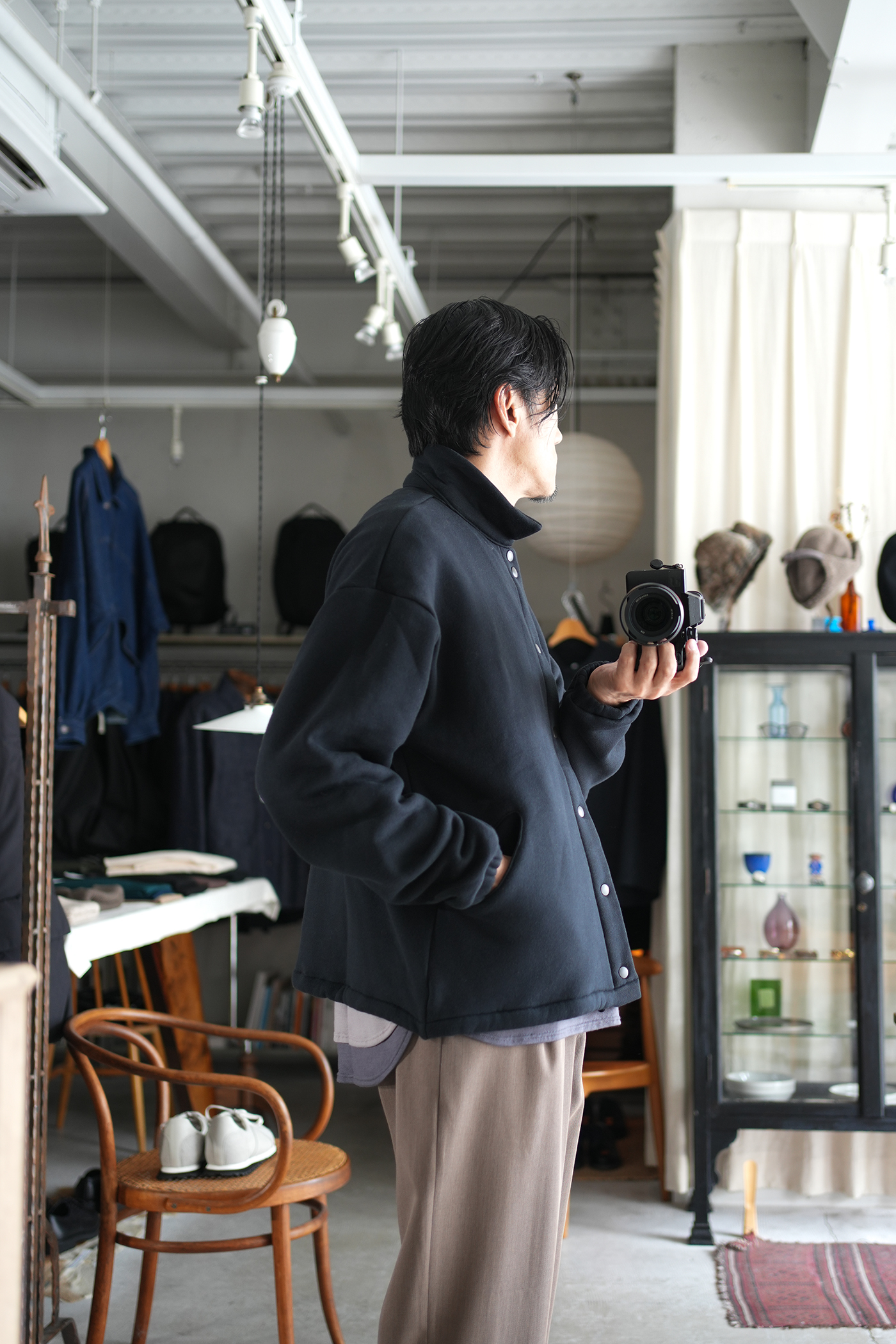 裏面に特殊加工を施した、モコモコとした立体感のある裏毛スウェット生地を使用。柔らかく温かみのある着心地が特長です。小さめの襟は首元をすっきり見せ、ゆったりとしたワイドシルエットでリラックス感があります。裾のドローコードを絞ることで、シルエットに変化をつけられます。コード先端にはチップ加工を施し、細部まで丁寧に仕上げました。開閉はメタルスナップボタン仕様。深めのポケットで使い勝手も抜群です。30/7裏毛の裏面にナッピング起毛を施しました。通常の起毛に比べて毛抜けしにくく、玉状の凹凸のある独特な表面感が特徴です。モコモコとした温かな風合い、洗濯機で洗濯可。