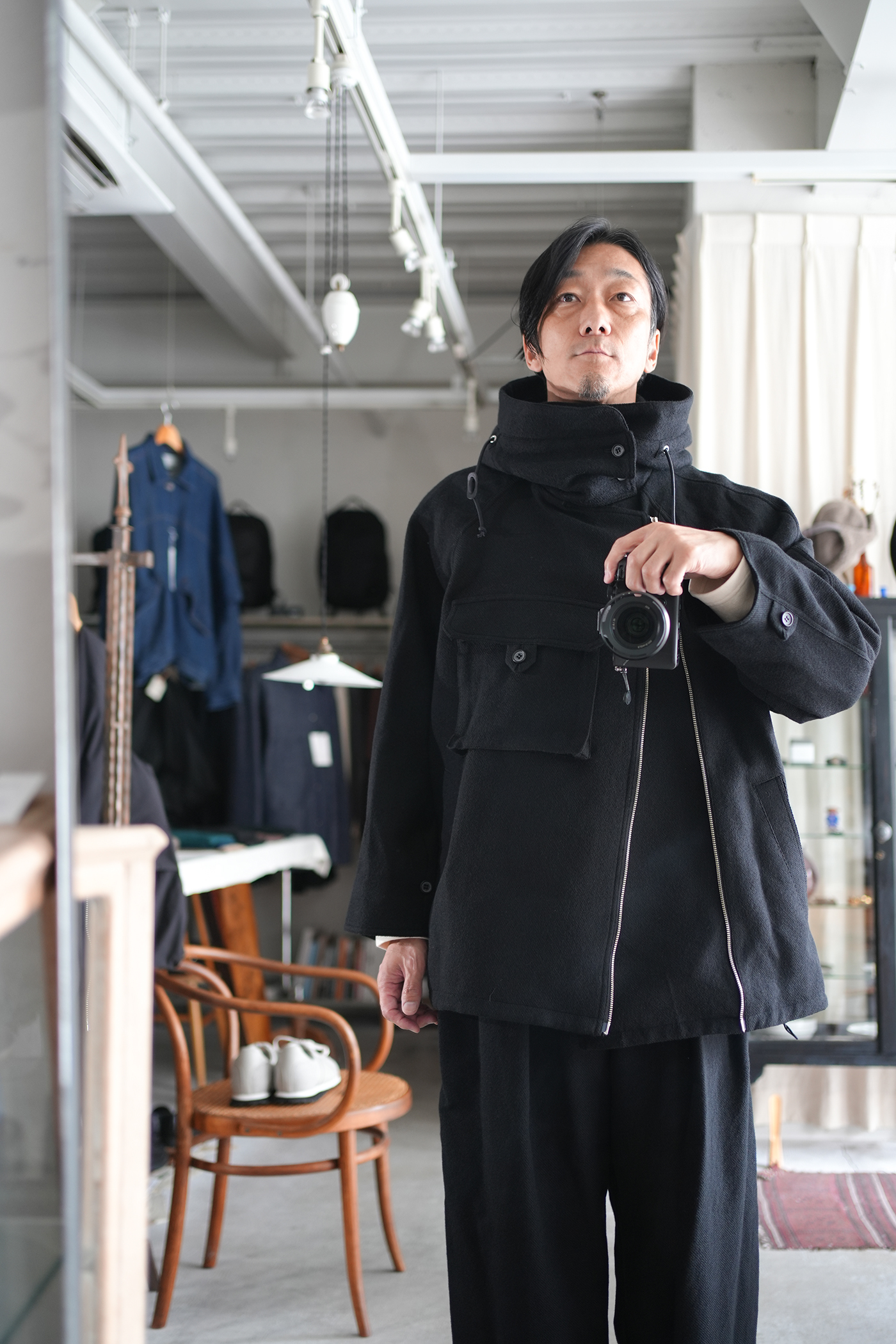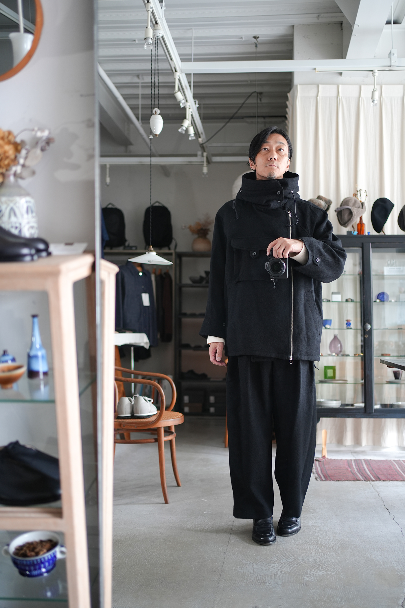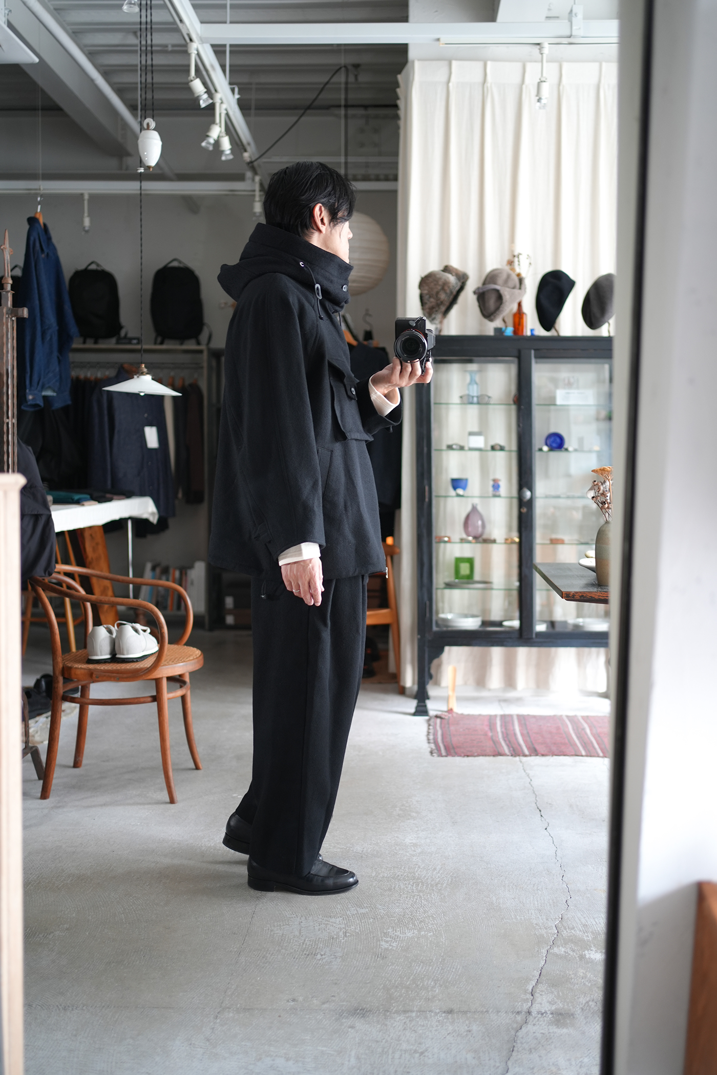 「my beautiful landlet」BISHU WOOL ZIP HOOD BLOUSON & TUCK WIDE PANTS。