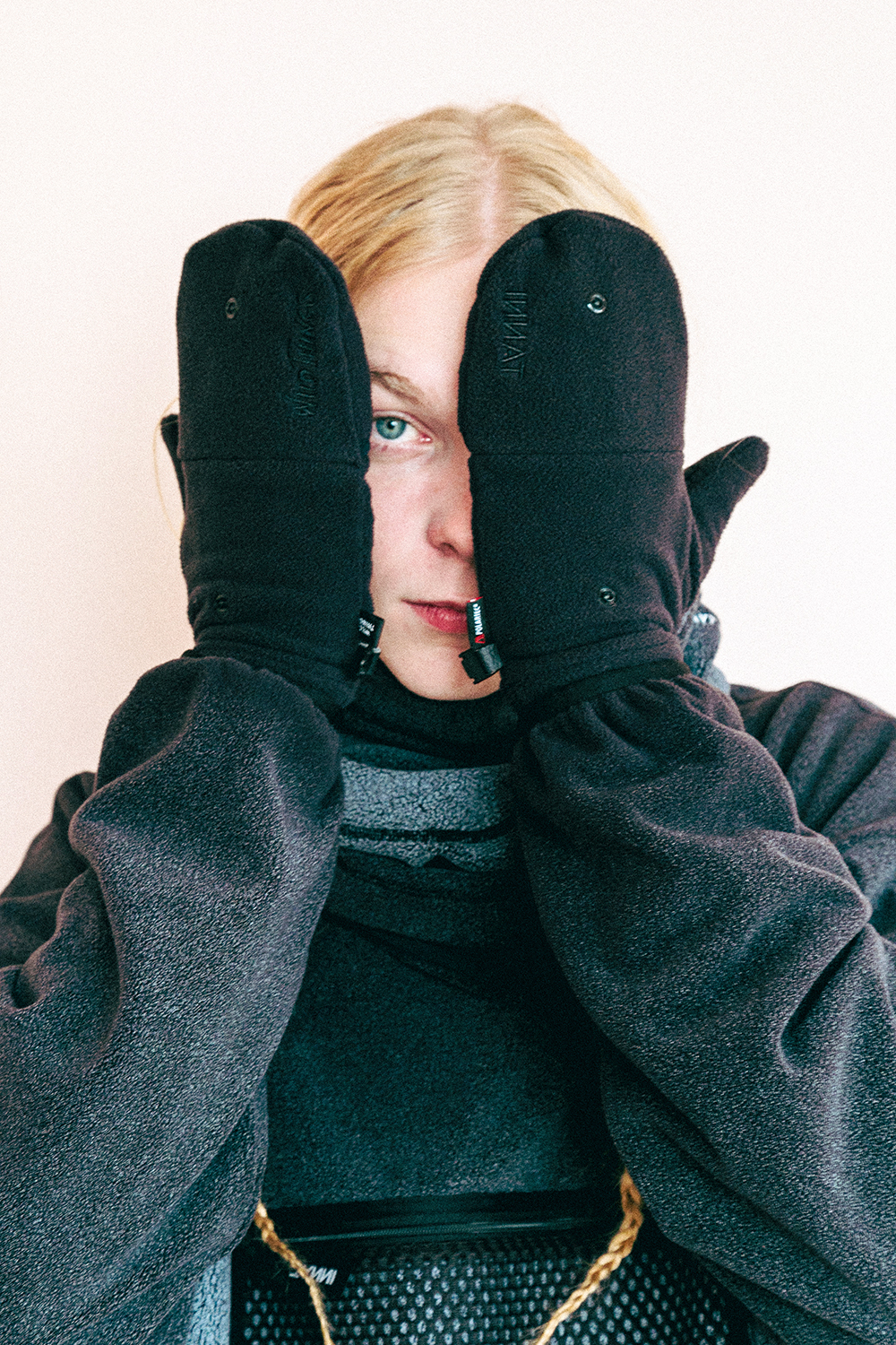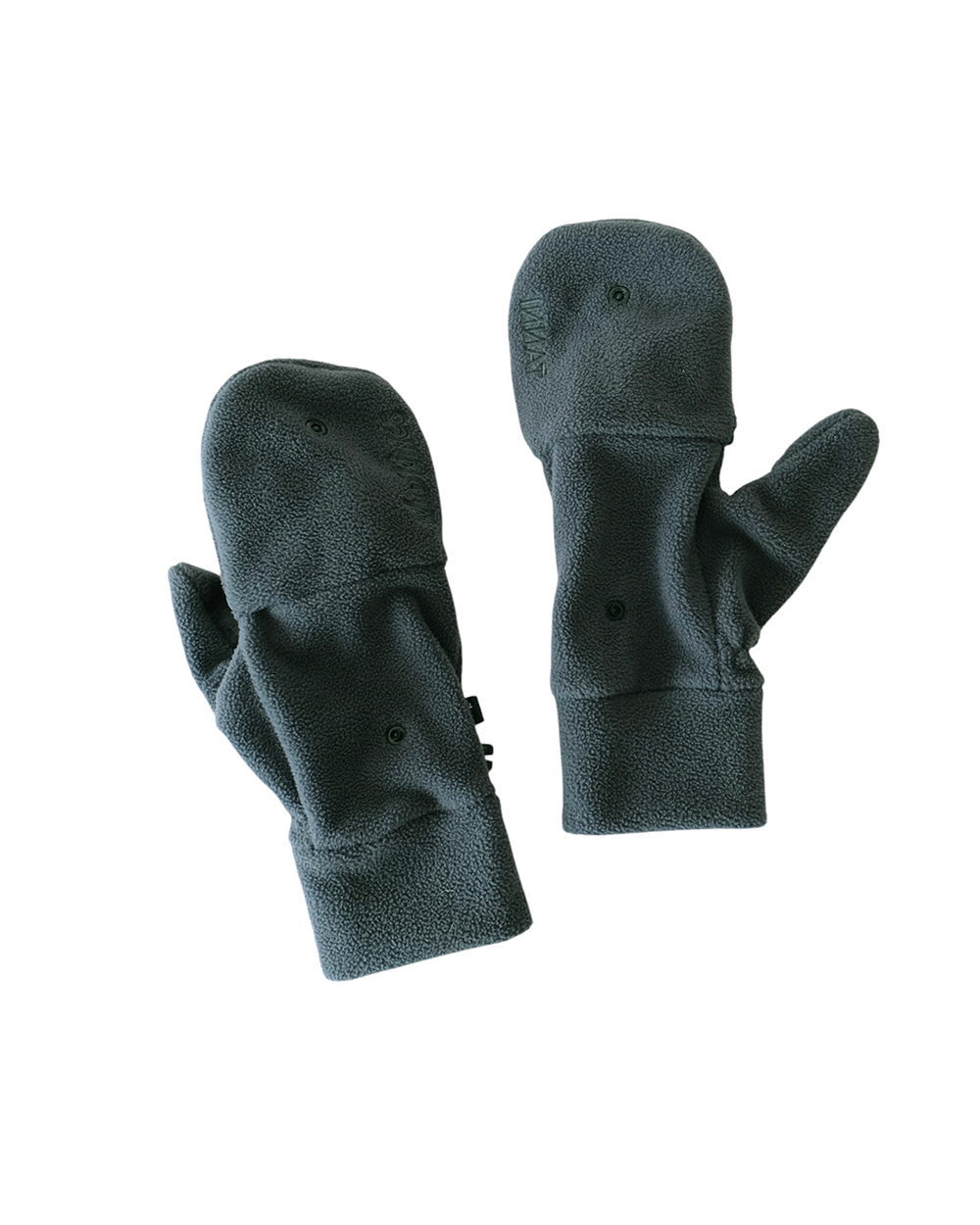 WILD THINGSとのコラボレーション企画。POLARTECWIND PROを使⽤したミトン。指先を出した状態とミトンとして使⽤できる2WAY仕様。POLARTEC Wind Pro素材を使⽤することで、⾼い防寒性と通気性を実現しています。⽣地の段階で表⾯にグラデーションのピグメントプリントを施し、製品化後にはボールバイオ加⼯を加えています。製品で加⼯を加えることにより、⾃然なフェード感ある独特な表情に仕上がっています。