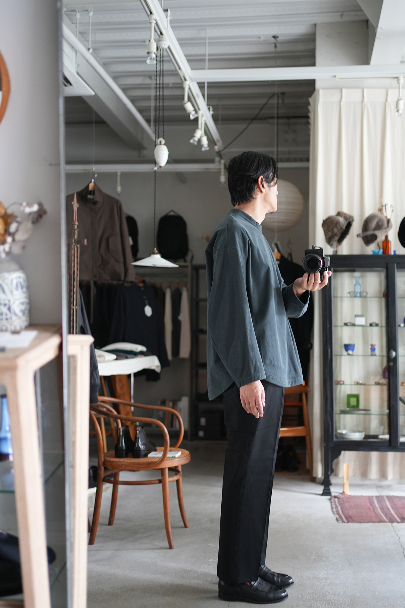 「FLAT TAPERED EASY TROUSERS」は、定番のフラットフロントをベースにイージー仕様にしたモデル。ノータックの腰まわりから自然にテーパードしたシルエットが、洗練された都会的な印象を与えます。ウエストはゴムとドローコードを内蔵し、快適な穿き心地とリラックス感を両立させました。絶妙な太さと美しいラインにより、フォーマルからカジュアルまで幅広いスタイリングに対応。ジャケットと合わせたビジネスやパーティーシーンはもちろん、ブルゾンやTシャツとのデイリースタイルにもフィットします。現代のライフスタイルに寄り添う、高い汎用性が魅力の一本です。トルコ産オーガニックコットン100%を使用。天然素材ならではの快適さと、合成繊維のようなシャープな質感を兼ね備えた、革新的なチノ素材です。日本の高度な織布技術により、強撚糸を高密度で織り上げ、シャリ感のあるドライなタッチと、美しい落ち感を実現。従来のチノのイメージを覆す、モダンで上質な生地に仕上がっています。