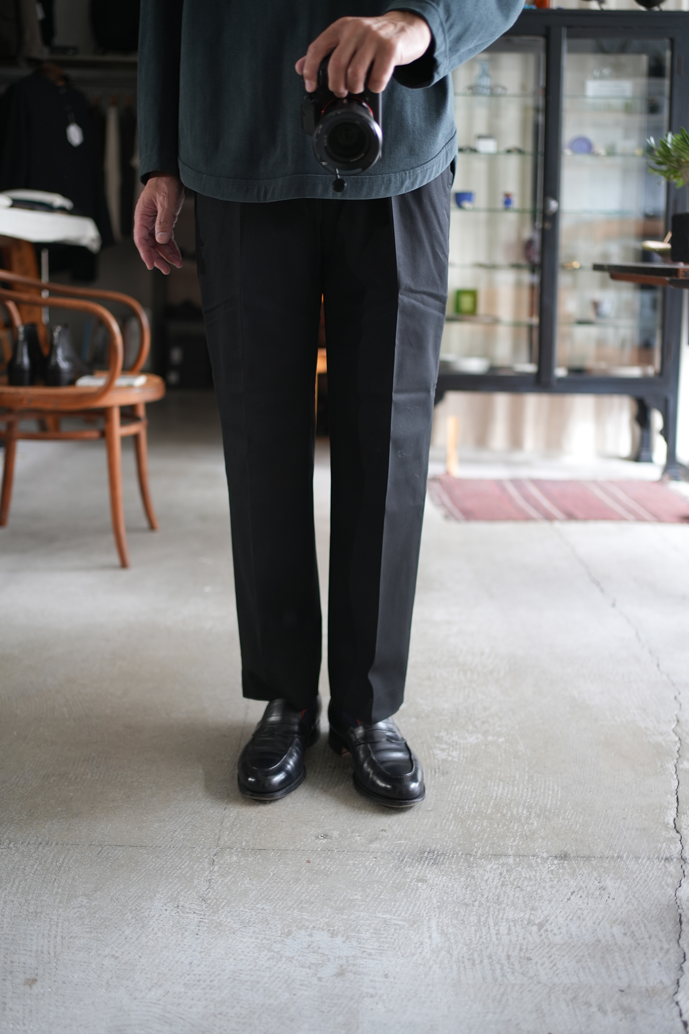 「MARKAWARE」 オーガニックコットン 40/2 ギャバジンフラットテーパードイージートラウザーズ ¥31,900-