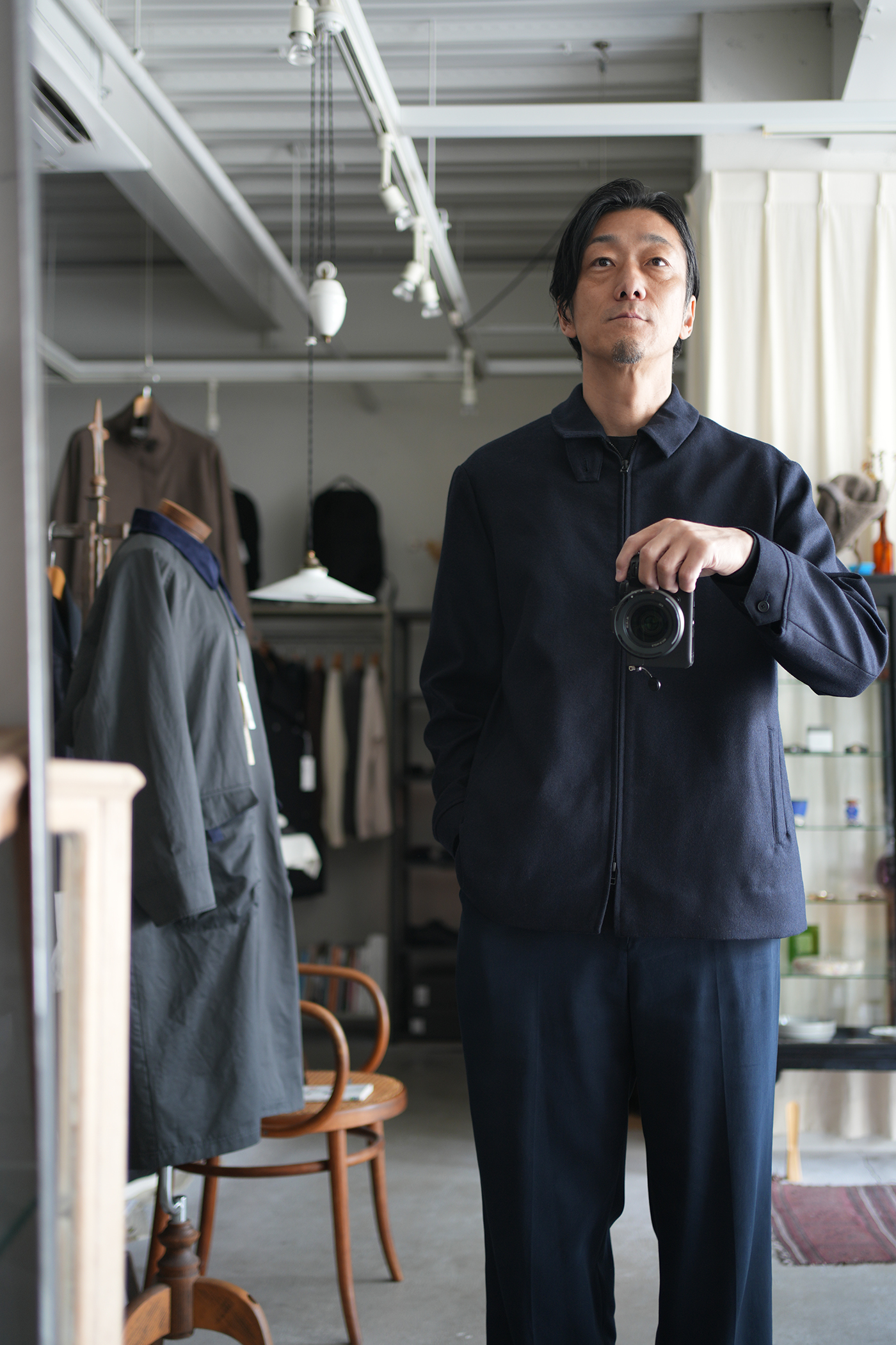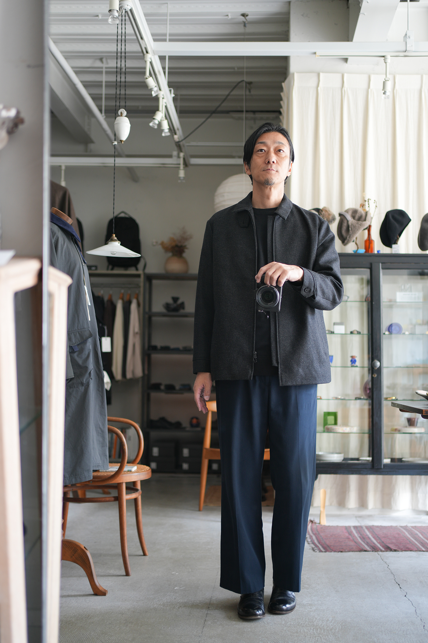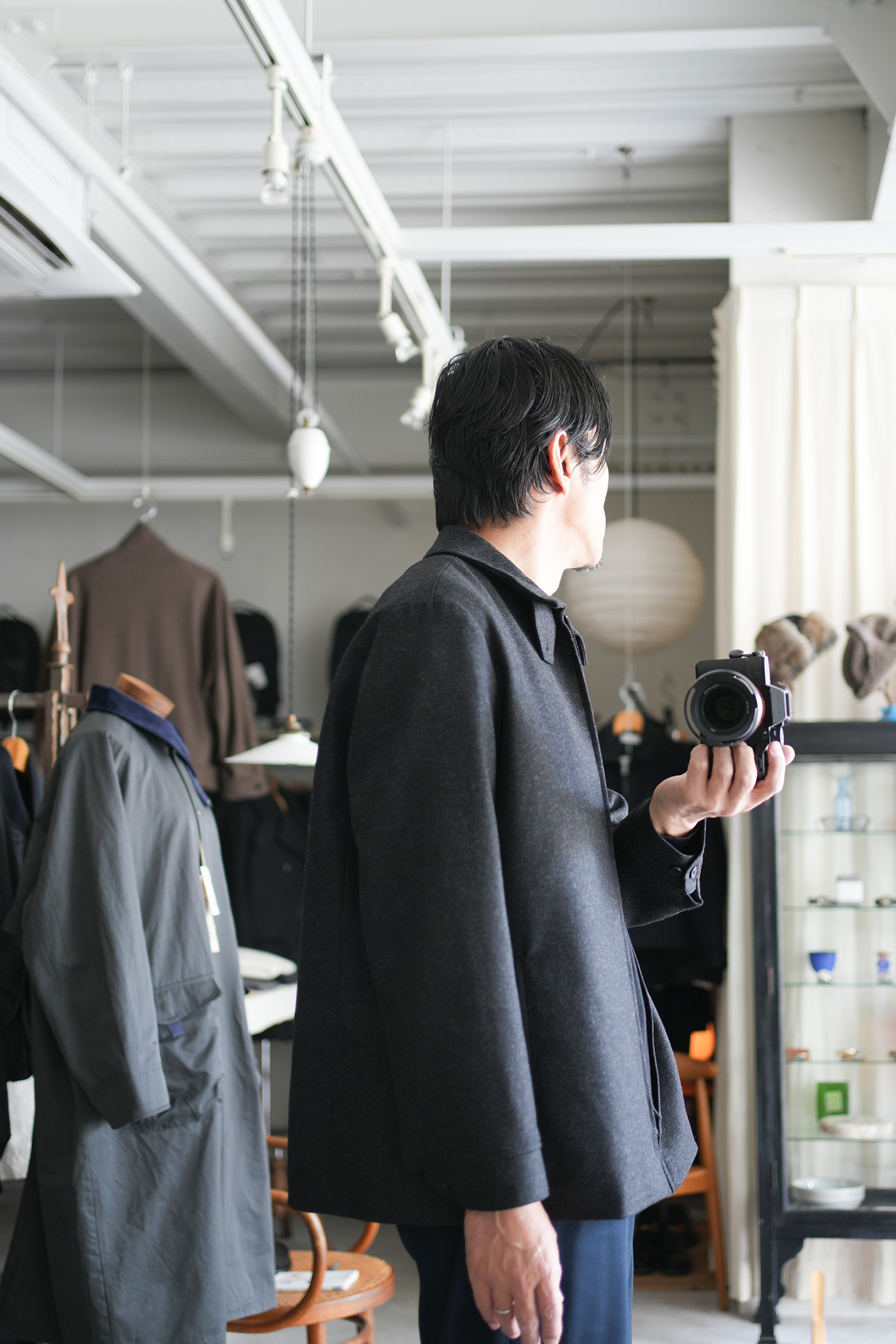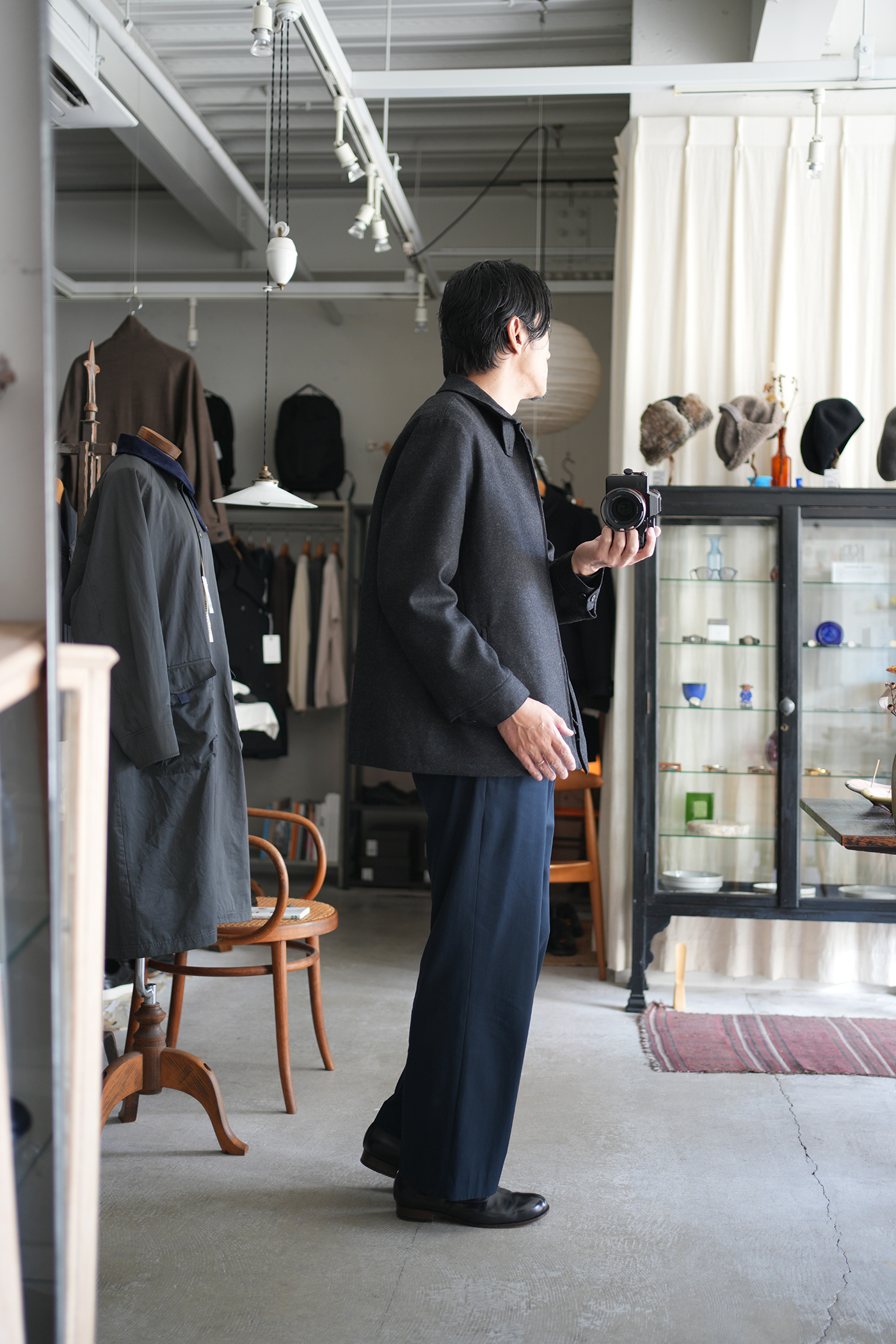 スタンダード高密フラノ生地、メルトンよりも軽量でアウター類には芯地をボンディングししっかりとしたハリと防風機能を高めています。ドリズラージャケット、ステンカラー、立ち襟仕様、総裏仕立て、中生地に高機能暖房素材コマサーモをキルティングで配す。ゆったりサイズですので最小サイズSを私の体格ですとすっきりジャストサイズで着用いただけます。