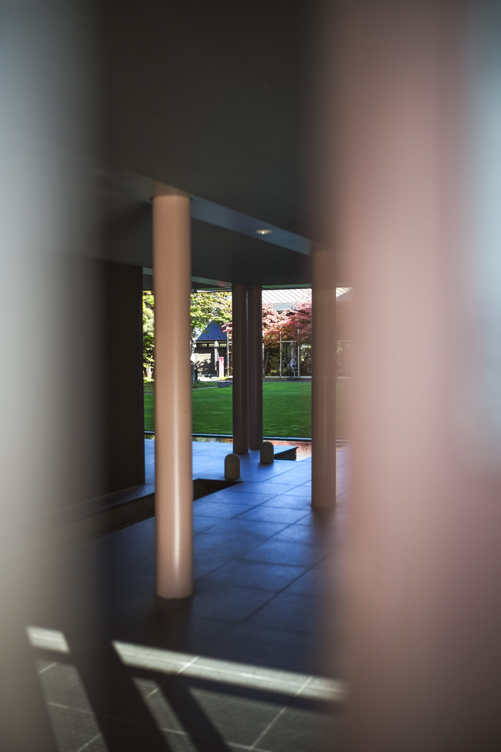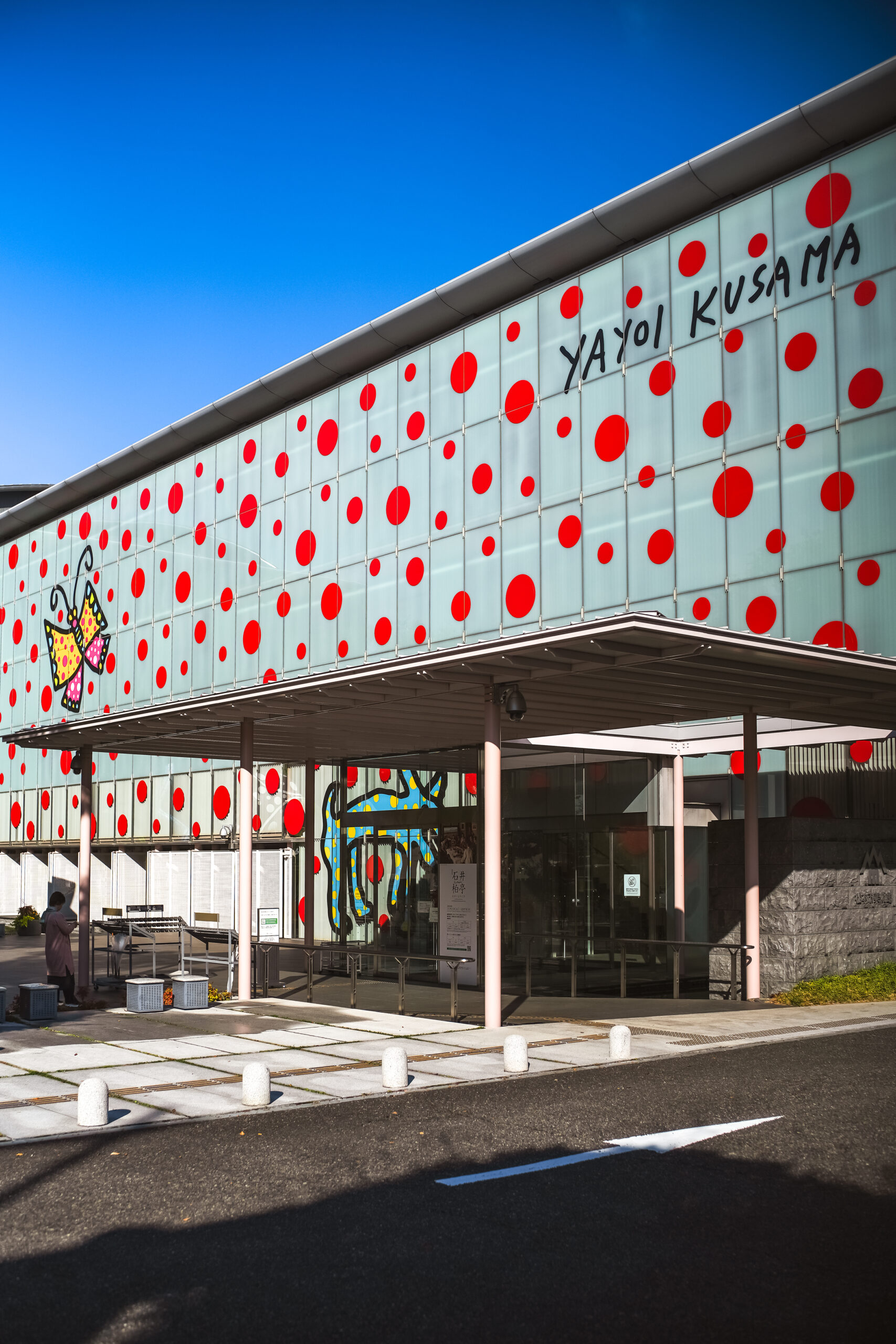 「品がない!」と言う感覚を持たれる方も皆無ではないのでしょうが、”草間彌生さん生誕の地&常設展のある美術館”を訪れた分かり易い感慨を持て、記念の写真を撮れる正面演出であると青空バックに陽射しを受けた館景に「イイネ」と思う。
