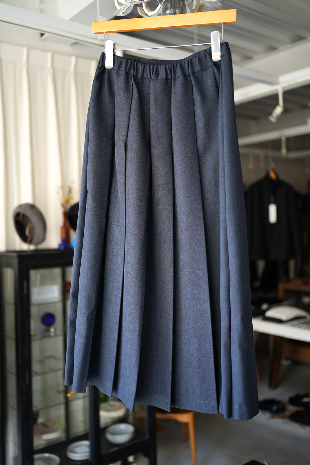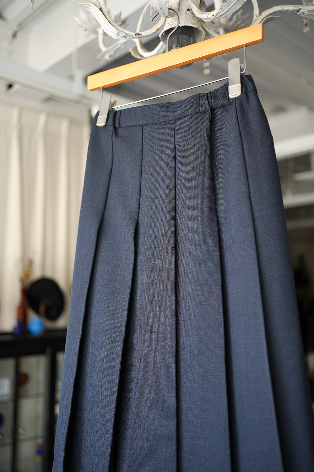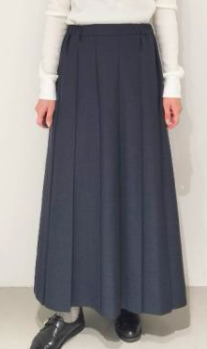 ウールツイード見えするポリエステル地を使用。程よい厚みがあり、非常に落ち感のきれいな素材を使用したプリーツスカート。