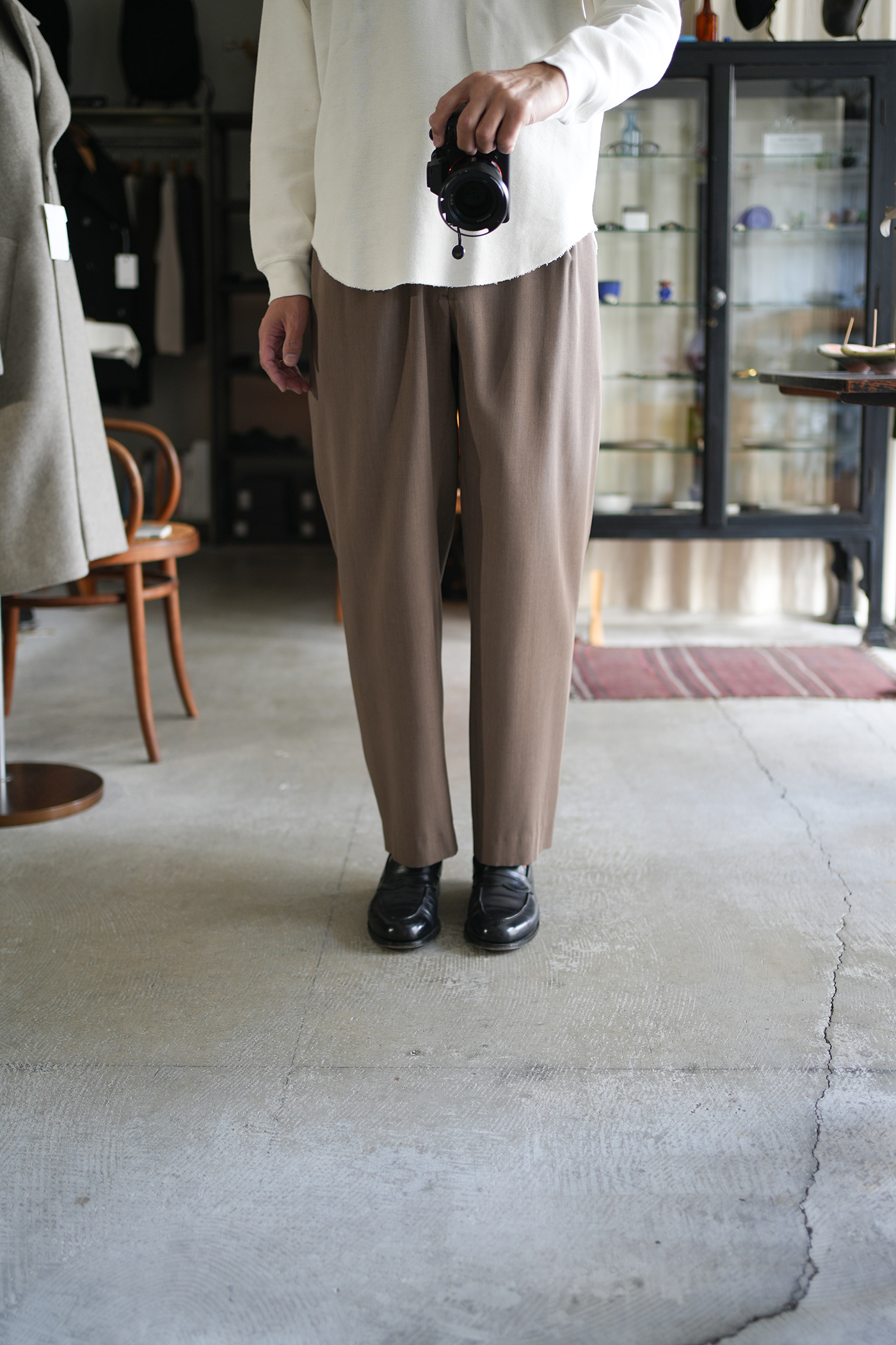 「marka」ORGANIC COTTON HEMP MESH KNIT CREW NECK L/S TEE & 「UNDECORATED」VCLEAR WOOL TWILL PANTS