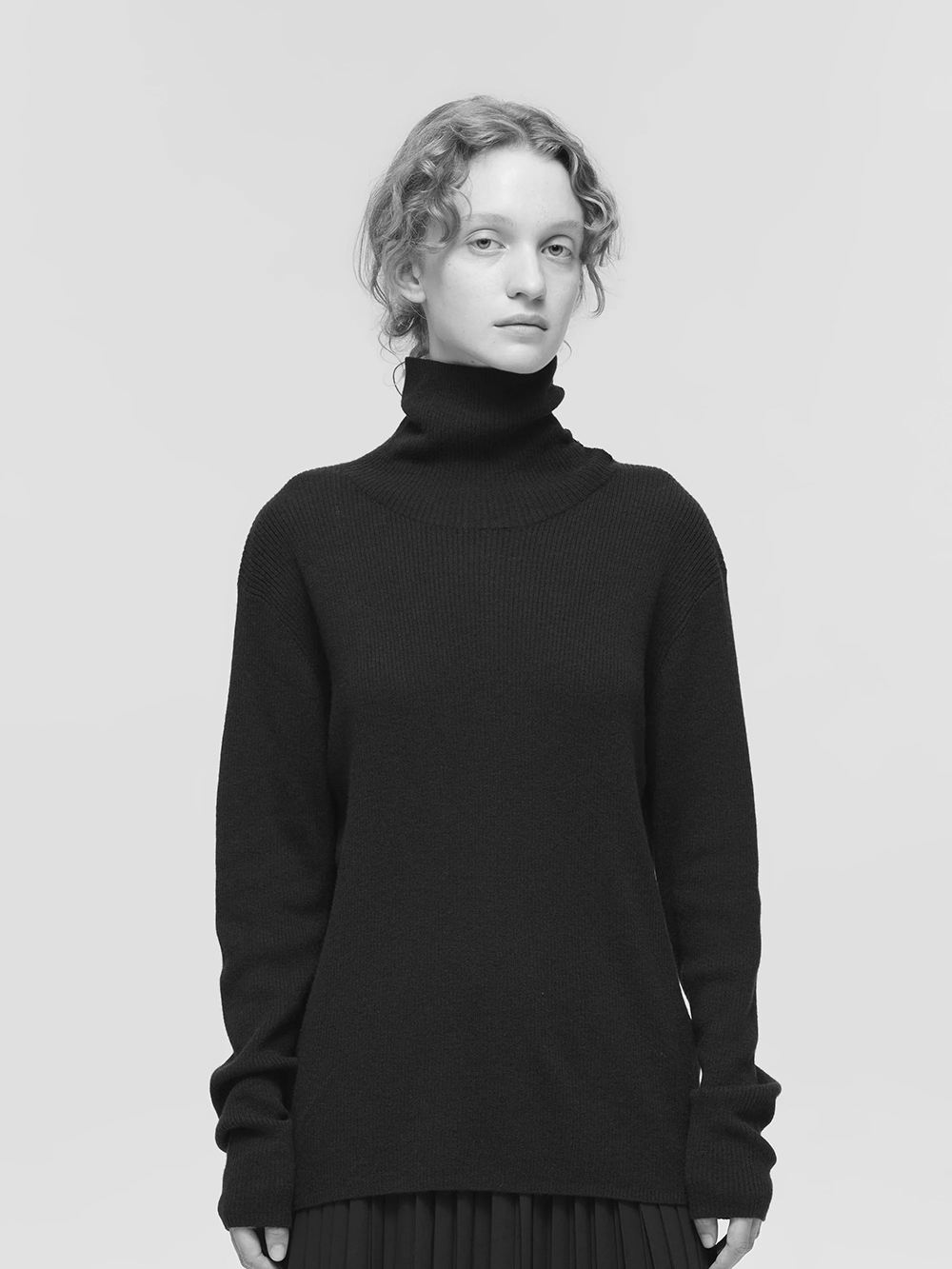 「mizuiro ind」rib high neck P/O with button