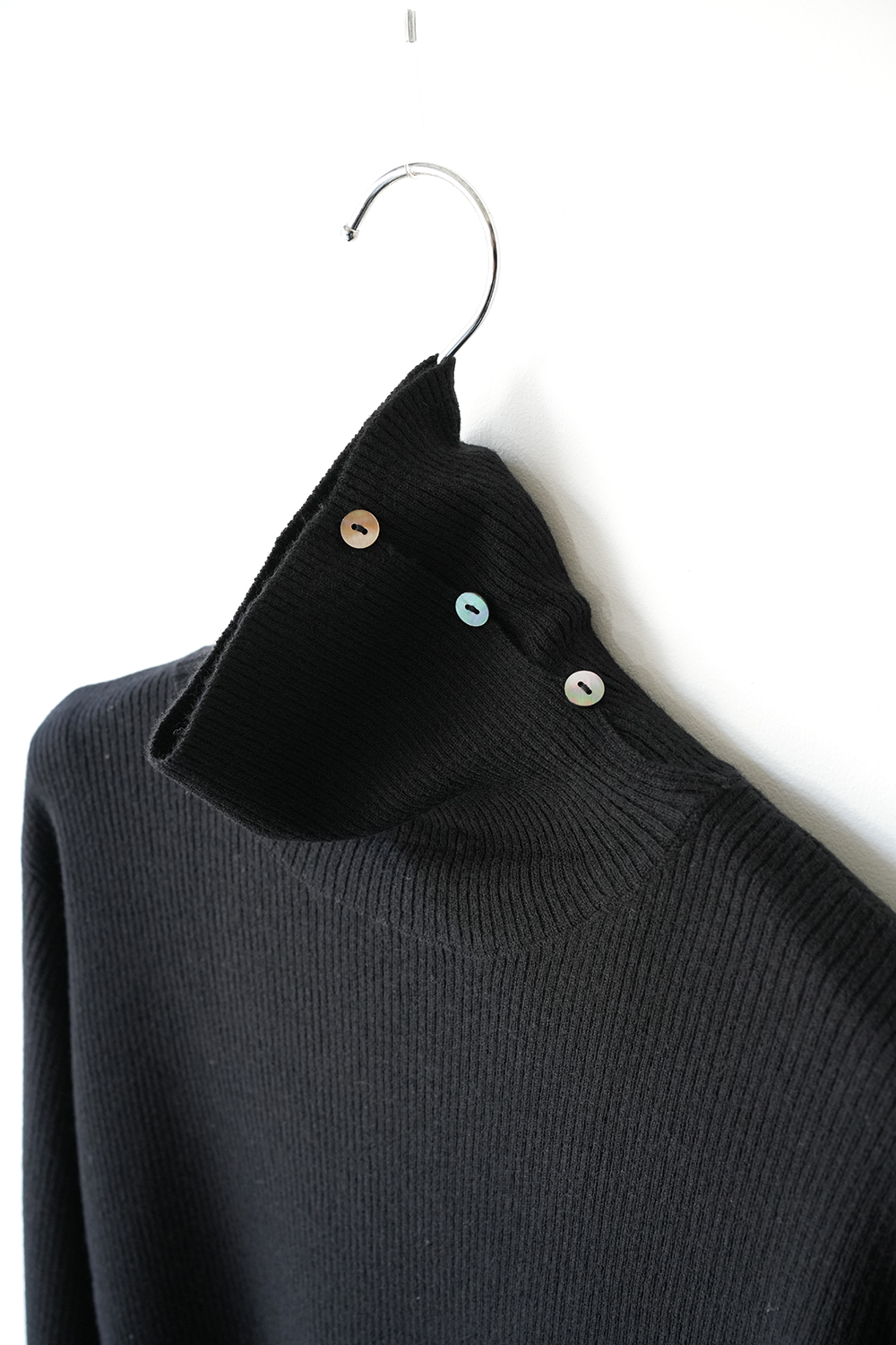 「mizuiro ind」rib high neck P/O with button、入荷。
