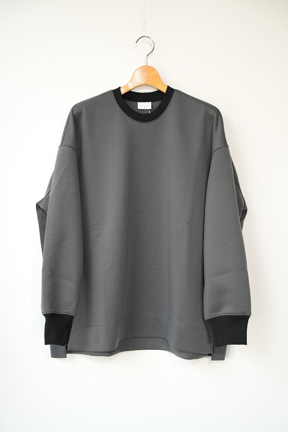 ポリエステル糸でしっかりと編んだ厚みがあり軽量・伸縮性抜群のダンボールニット。スウェットに近しい着方ができます。ポリウレタン糸を引き揃えている為適度な立体感を生むしっかりとした生地感です。オーバーサイズシルエット、襟・袖リブ仕様のクルーネック。製品洗い・タンブラー乾燥済み、ご家庭洗いできます。