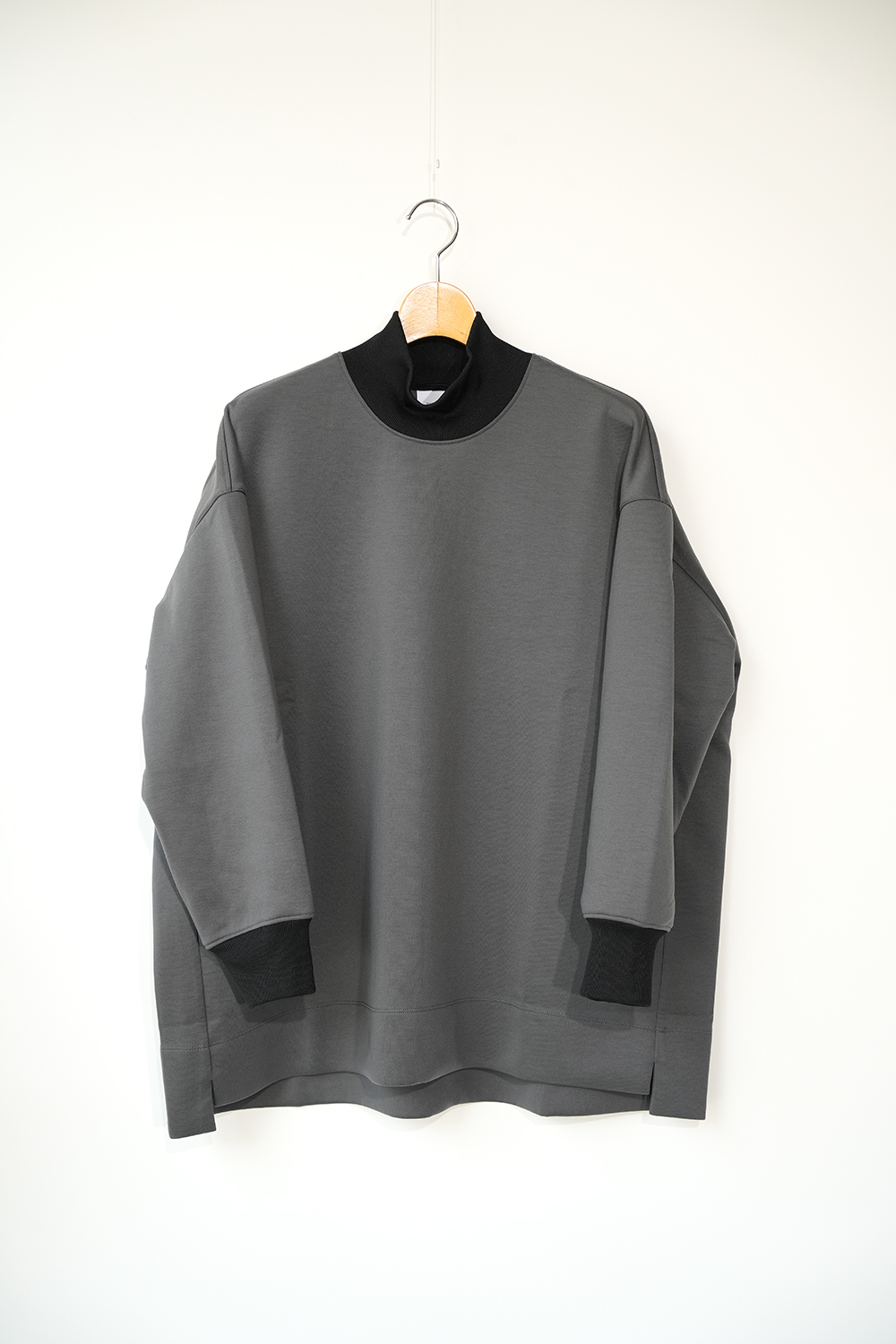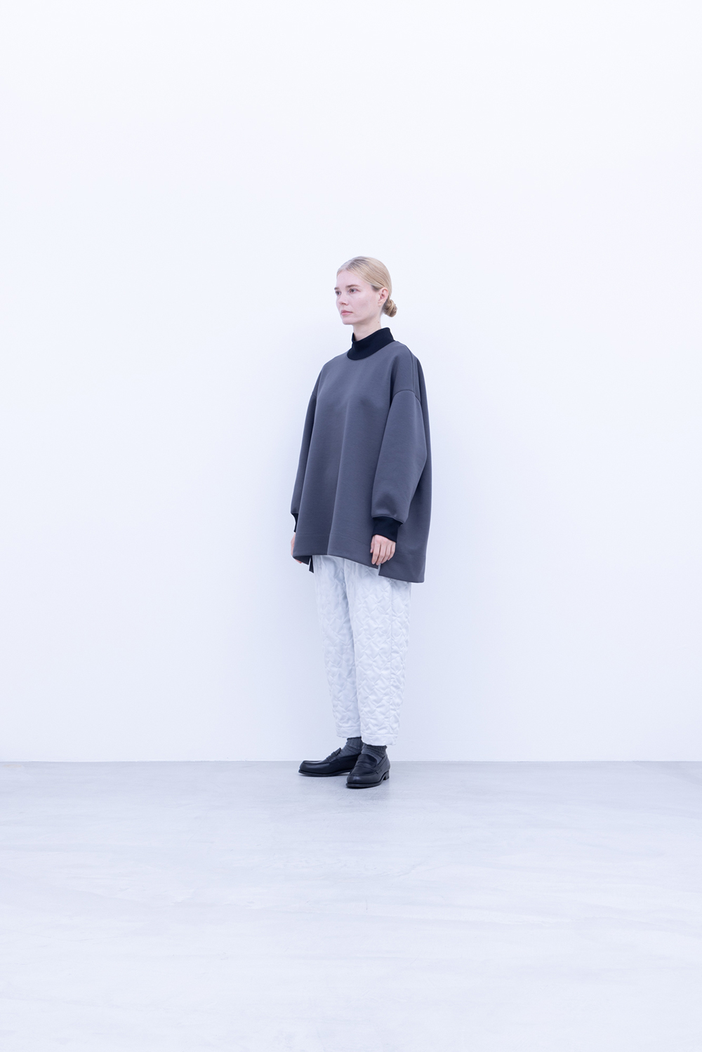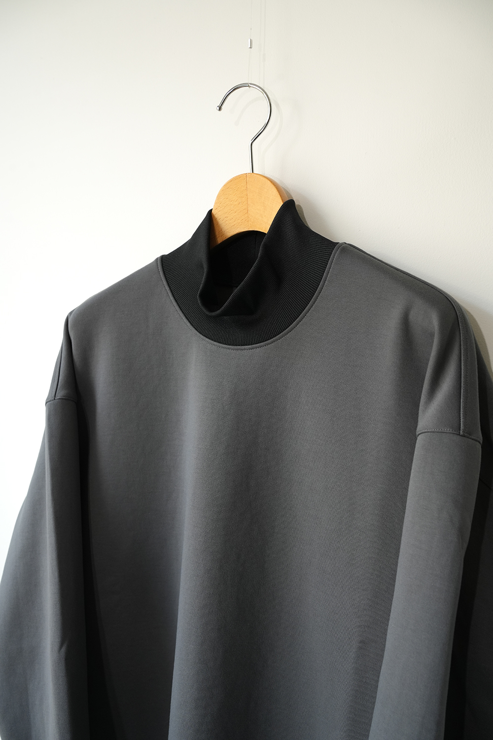 ポリエステル糸でしっかりと編んだ厚みがあり軽量・伸縮性抜群のダンボールニット。スウェットに近しい着方ができます。ポリウレタン糸を引き揃えている為適度な立体感を生むしっかりとした生地感です。オーバーサイズシルエット、襟・袖リブ仕様のタートルネック。製品洗い・タンブラー乾燥済み、ご家庭洗いできます。