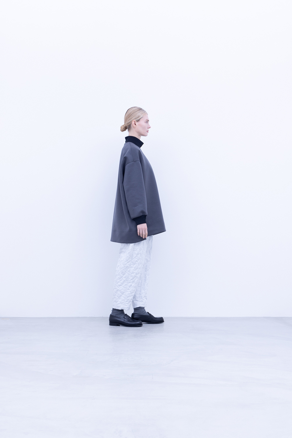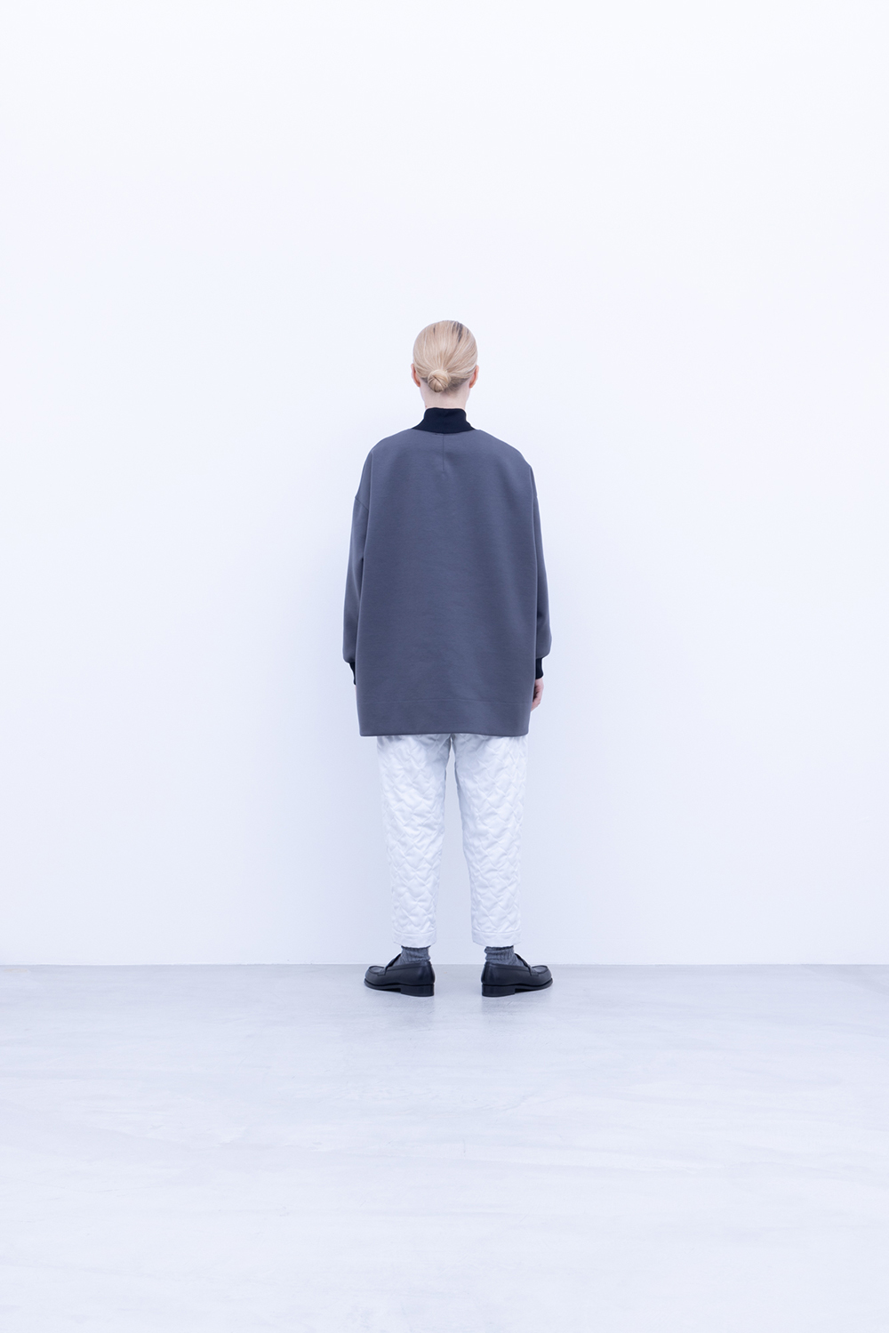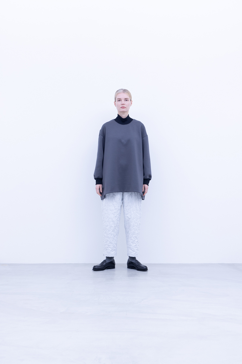 ポリエステル糸でしっかりと編んだ厚みがあり軽量・伸縮性抜群のダンボールニット。スウェットに近しい着方ができます。ポリウレタン糸を引き揃えている為適度な立体感を生むしっかりとした生地感です。オーバーサイズシルエット、襟・袖リブ仕様のタートルネック。製品洗い・タンブラー乾燥済み、ご家庭洗いできます。