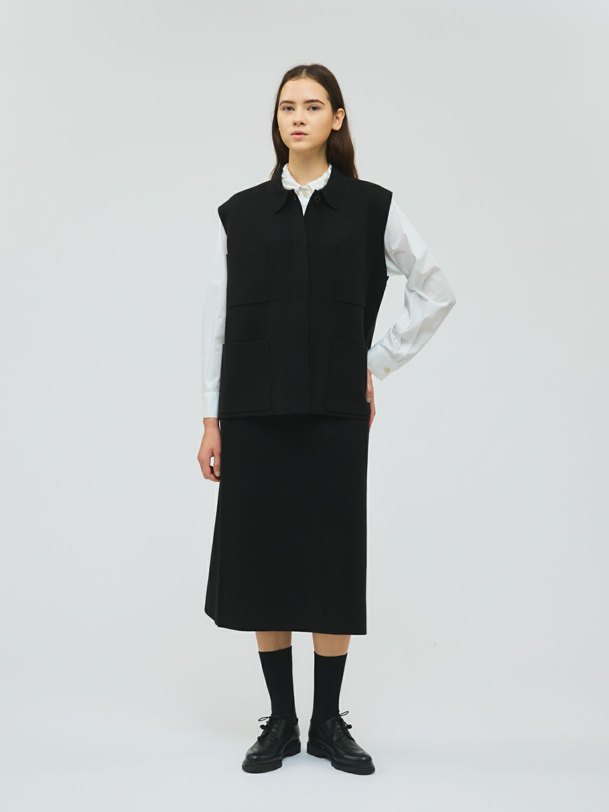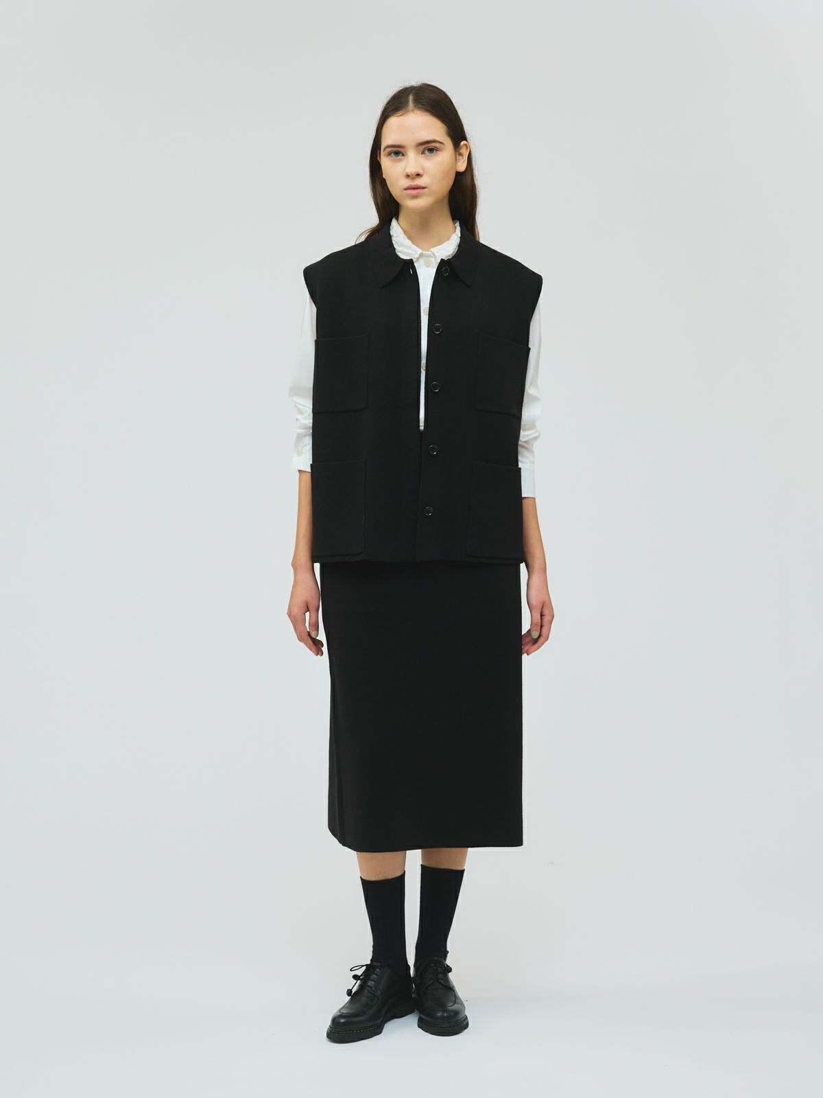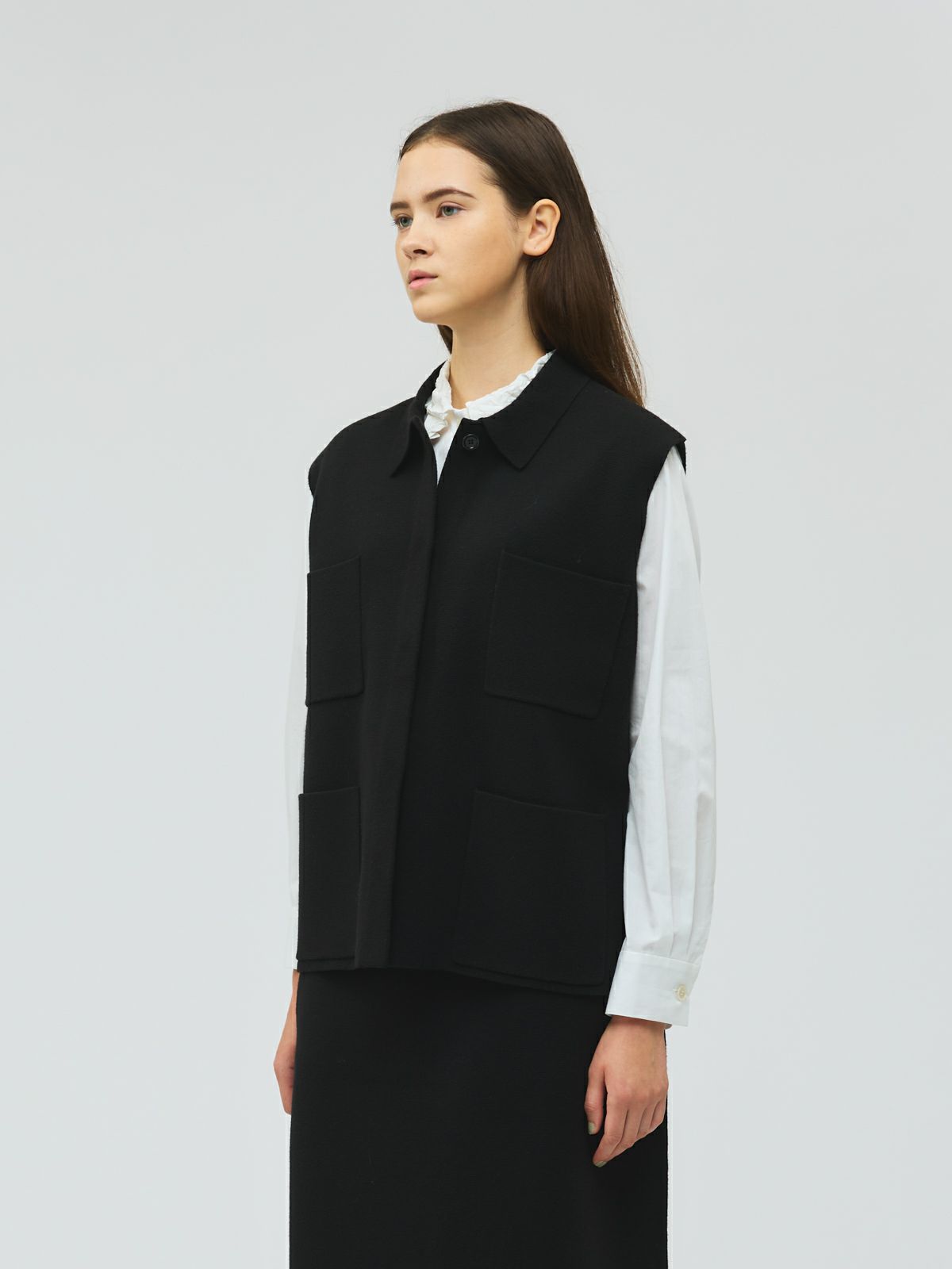 「mizuiro ind」 襟付きワイドベスト ¥14,960-