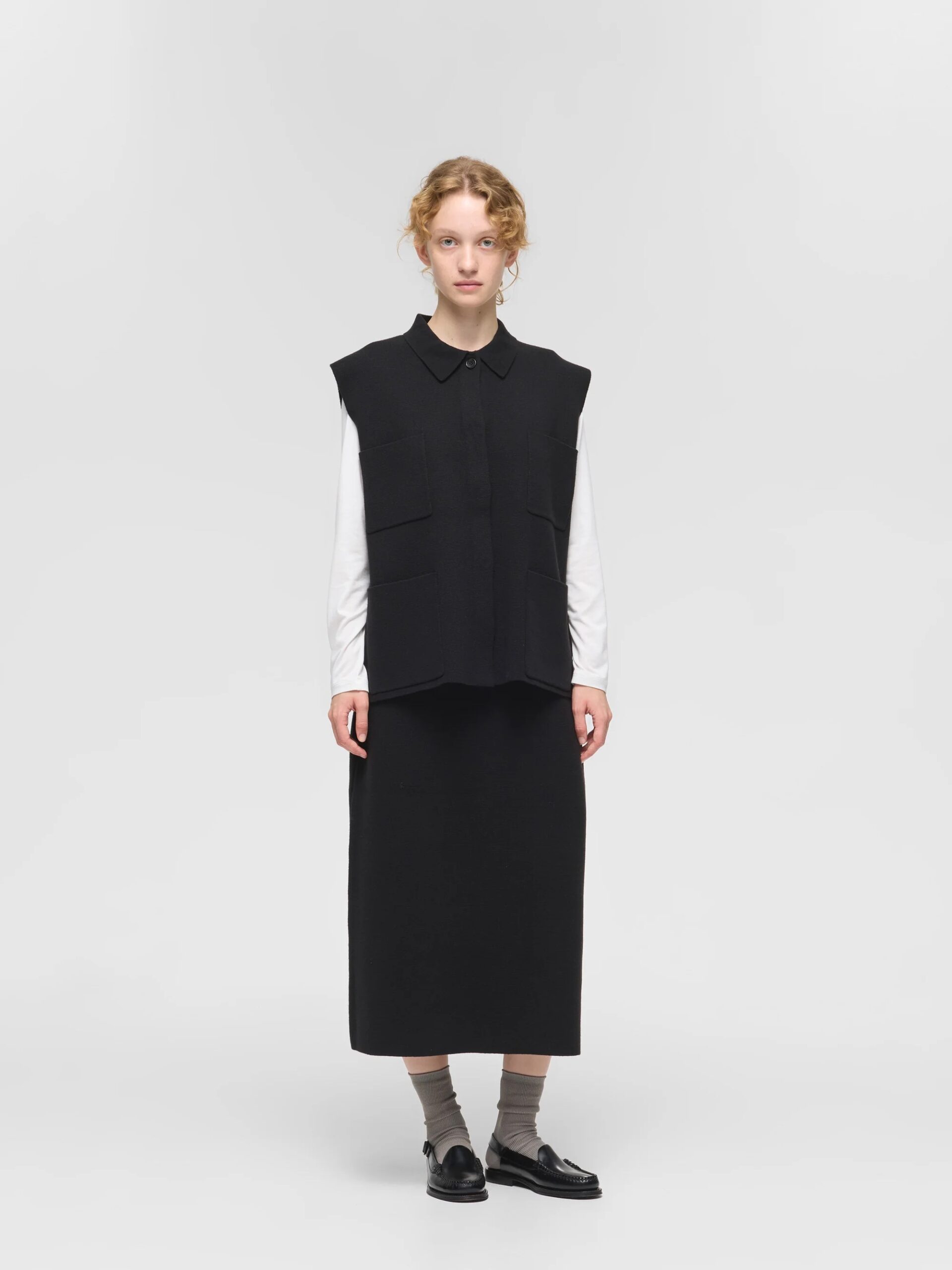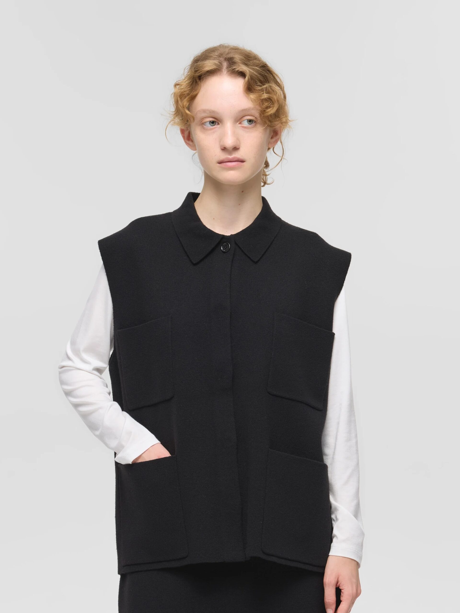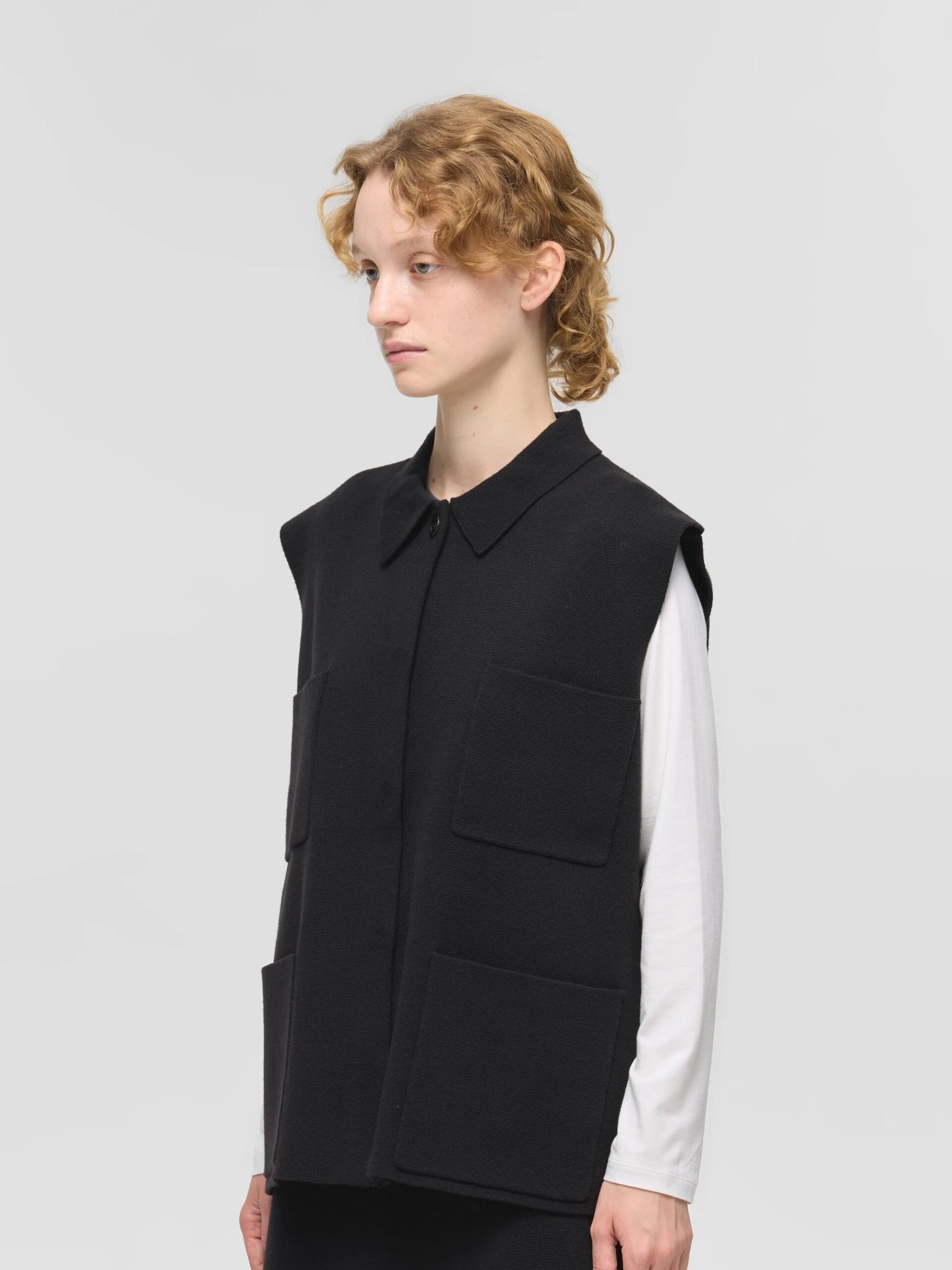 「mizuiro ind」 襟付きワイドベスト ¥14,960-