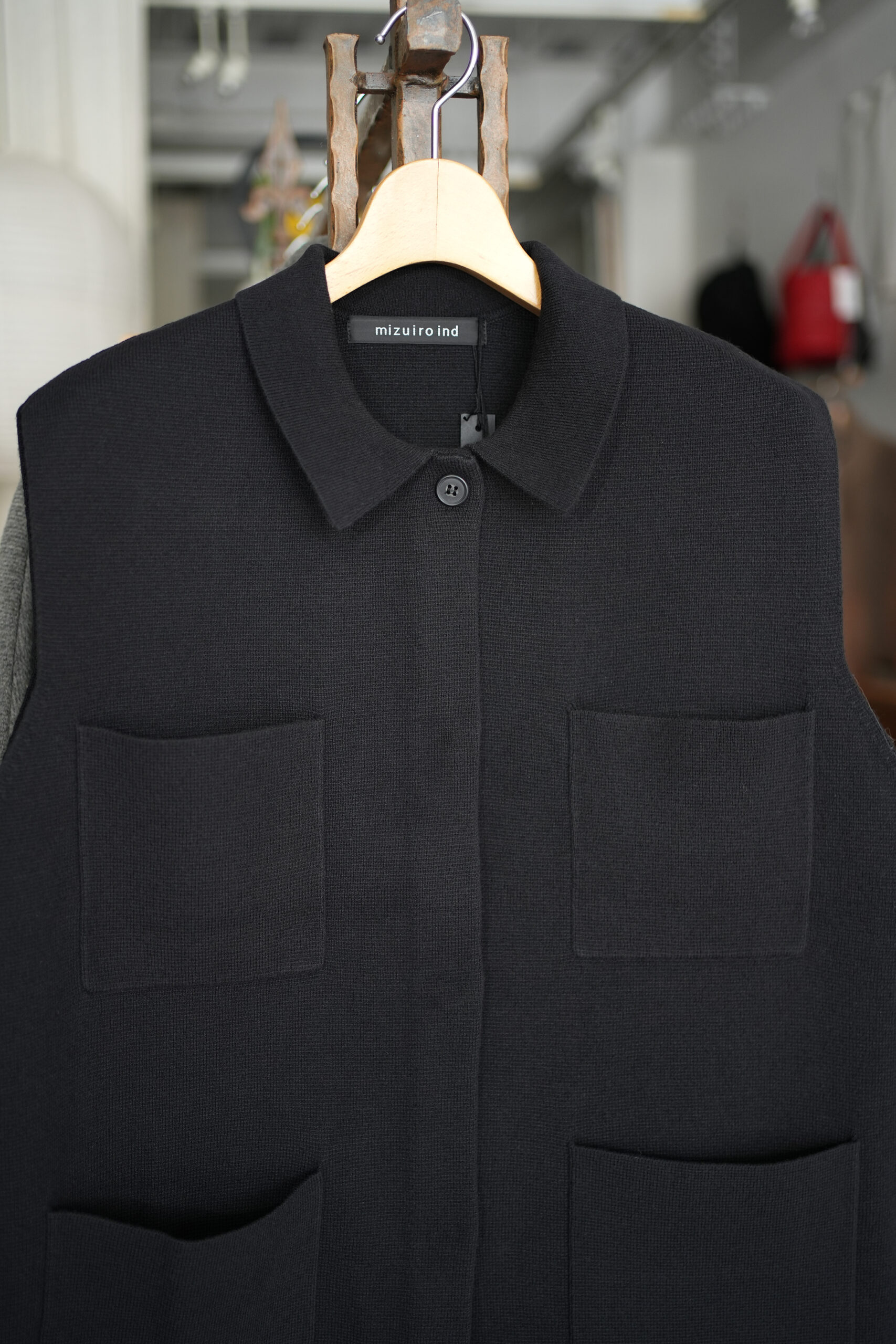 「mizuiro ind」襟付きワイドベスト、入荷。
