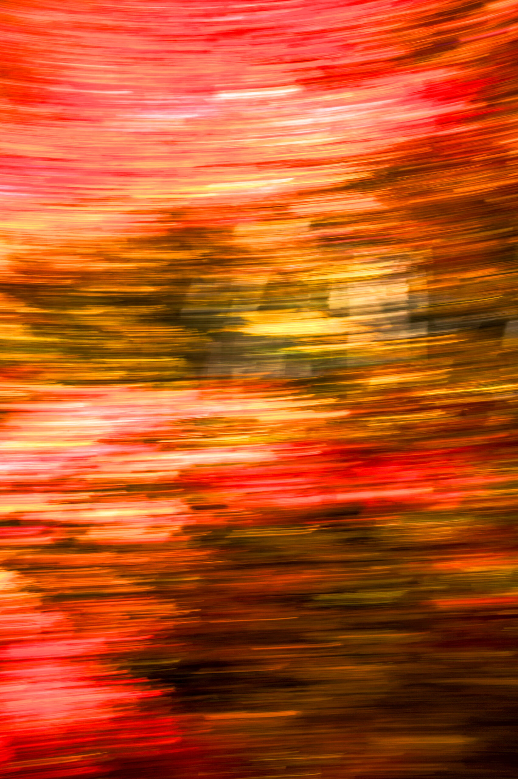 先日行った霊松寺の紅葉風景、カメラをスローシャッターにして縦の横に振って写真を撮った。