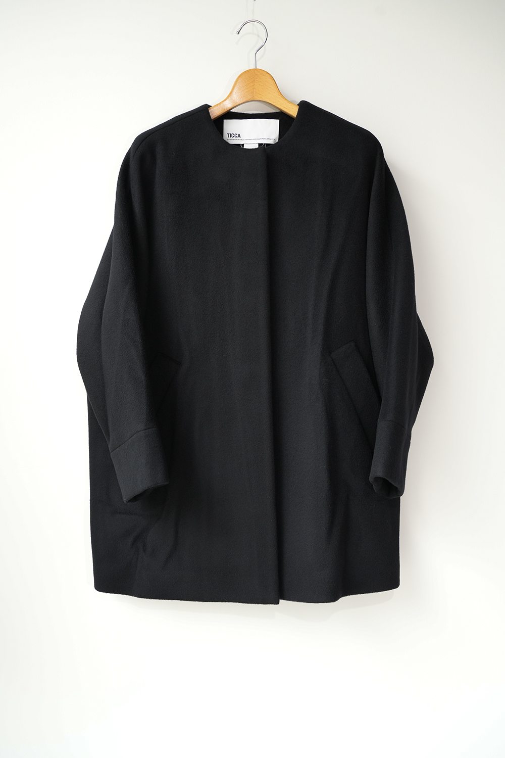 「TICCA」ノーカラーテントコート。