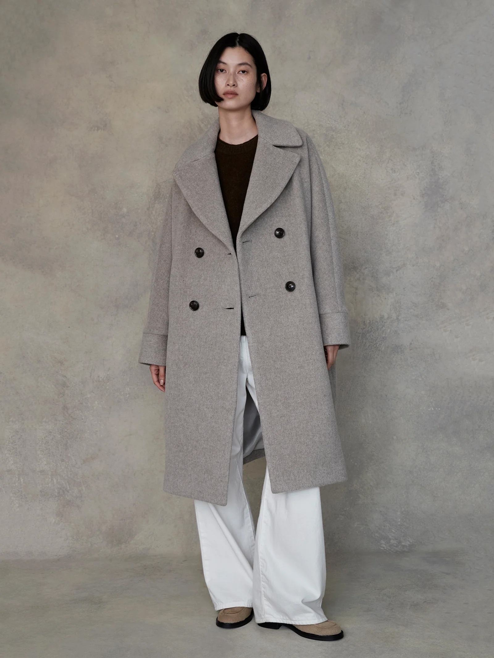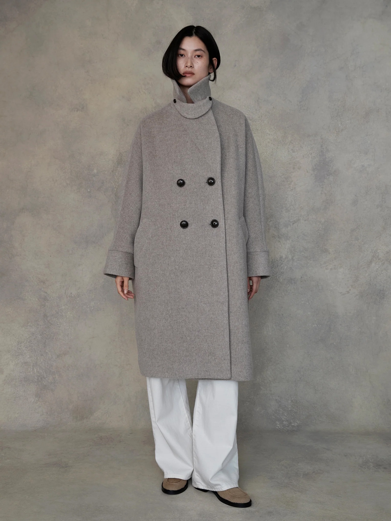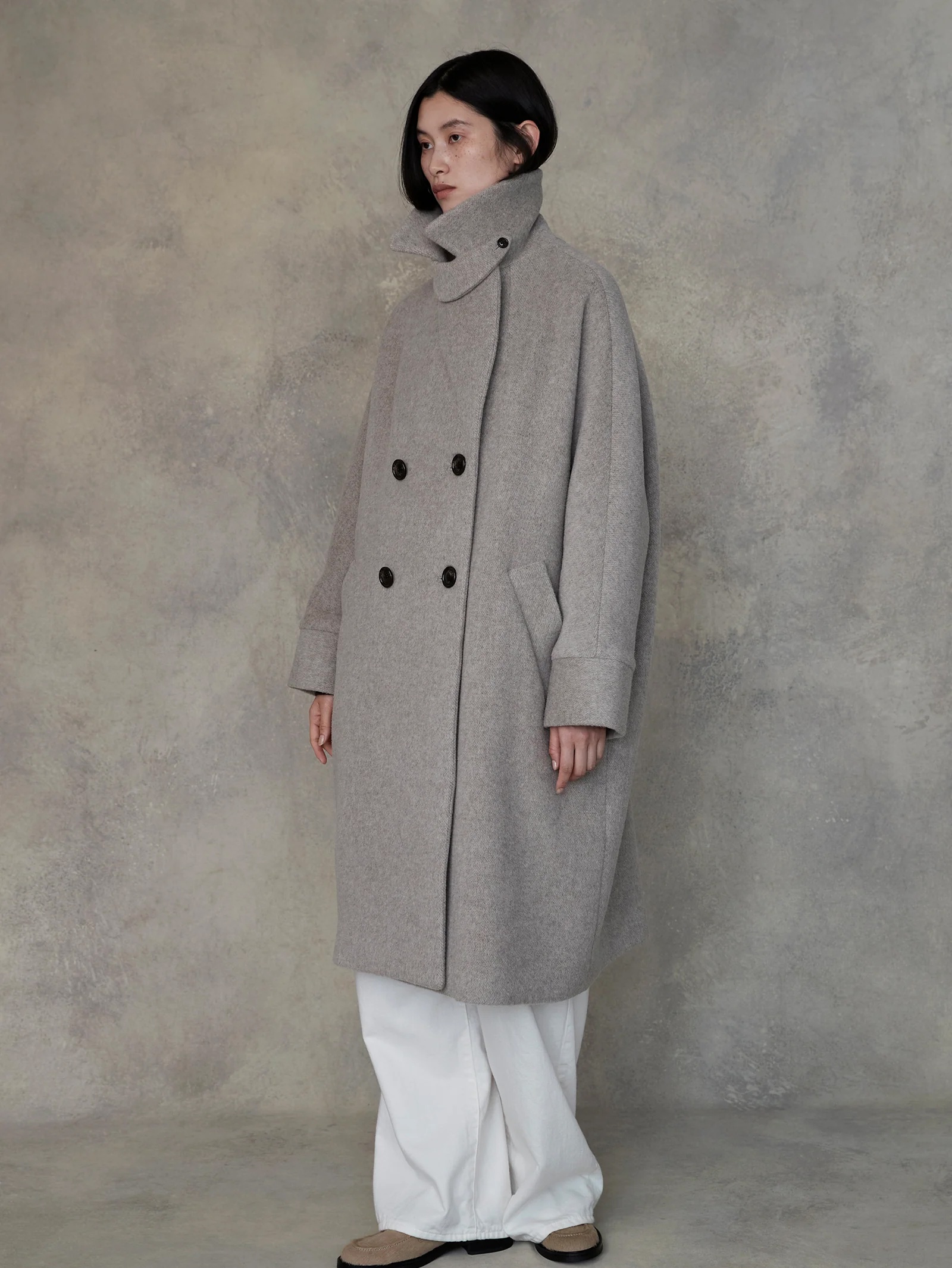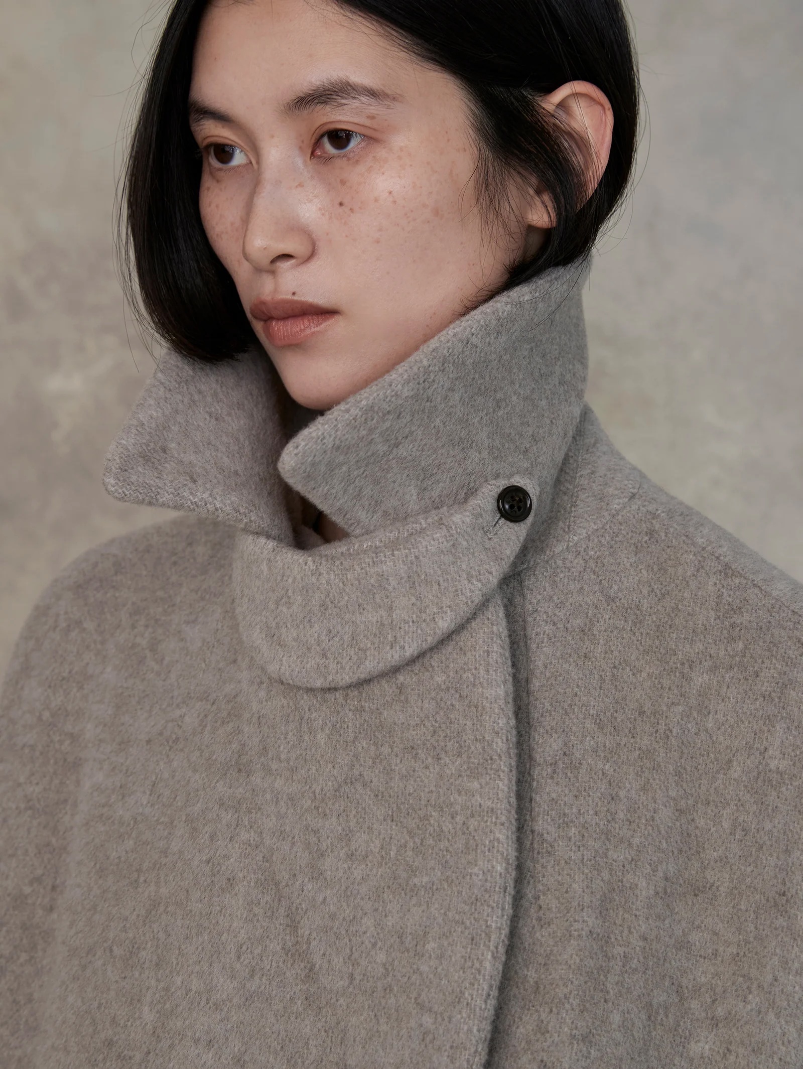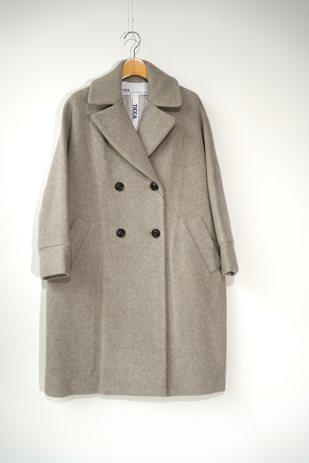 TICCAの代表的なアイテムのテントコート、アームホールのハギを無くして贅沢に身頃を一枚で取ることで、肩幅の狭い人や大きい人にも対応。どんな体型の方にも合うように作られたゆったりとした絶妙なシルエット、袖丈も折って調整可能なカフス仕様。襟元にはチンストラップ付きで、寒い日は首もともしっかりガード、ウール100%の暖かさに、見た目以上に軽い着心地で、ストレスなし。こだわりぬいて作られた素材は、選び抜かれた高品質なラムウール原料を国内産地特有の美しい水を使用して一流の職人達が仕上げることで、非常に美しく上質な毛並みの表情、その見た目に反する驚くほどの軽さ、保温効果に優れた機能性を持った宝物のような素材です。各色がもつ美しさを最大限いかせるように色ごとに緻密に配列を計算し細部の作り方まで変えて作成しています。グラデーションの色糸を組み合わせて無数の色で奥行きを出した色合い。ゆったりとしたシルエットで、ニットなどの重ね着も楽に行え、幅広いサイズに対応。シンプルながらもシルエットや素材、着心地にこだわったTICCAこだわりのテントコート。オンオフ問わず、幅広いコーディネートに活躍する一着。