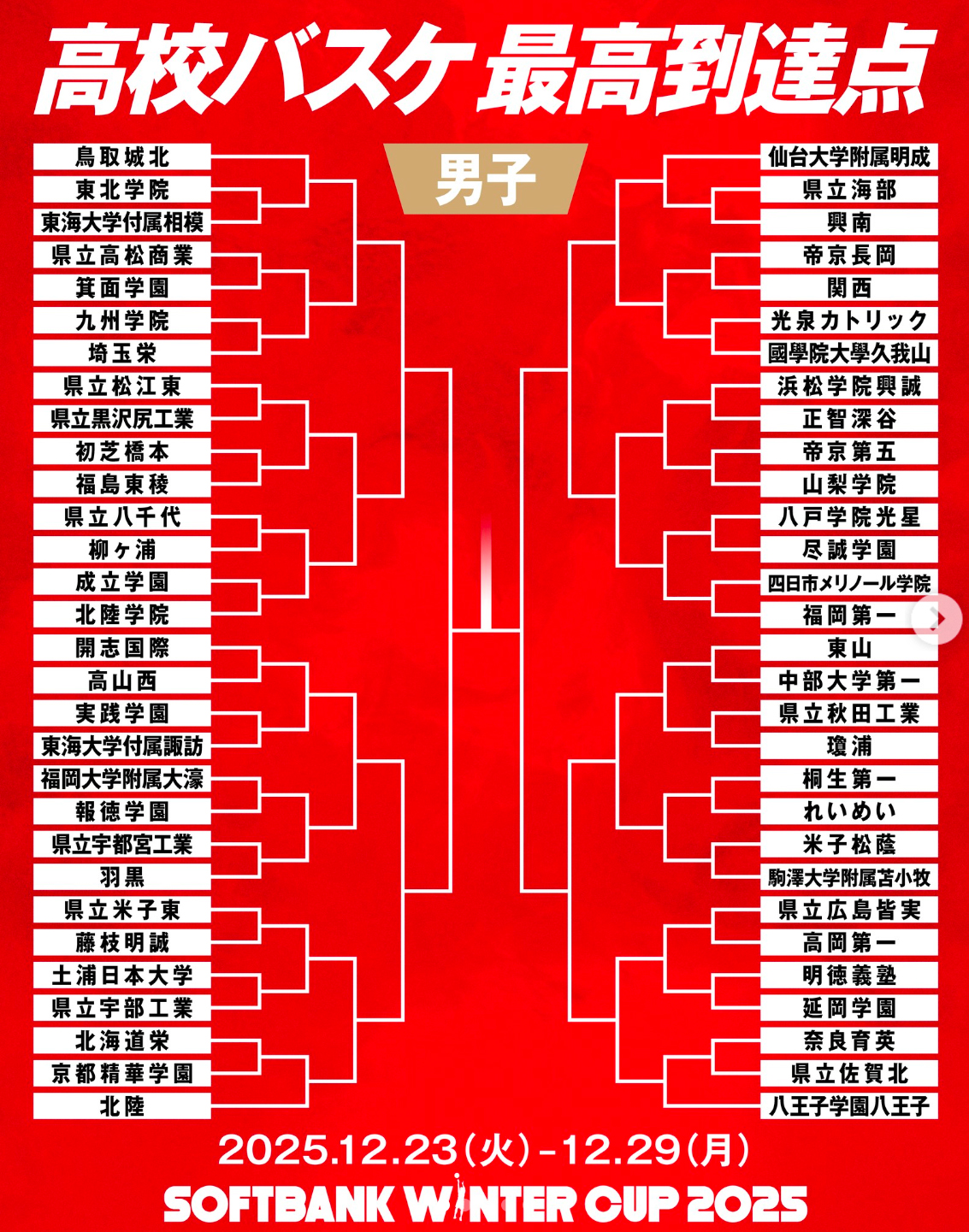 高校バスケ3年間の集大成「ウインターカップ2025」の組み合わせが決まり、トーナメント票が発表となった。