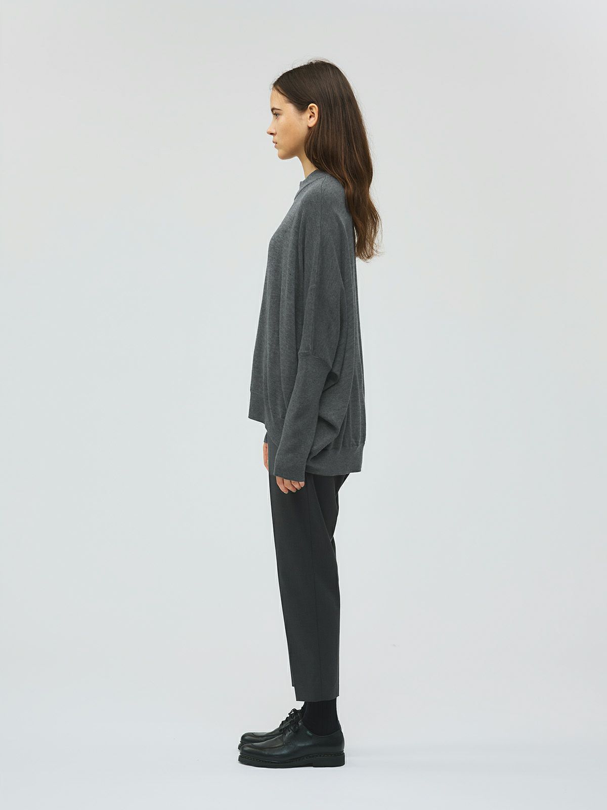 袖のリブが肘まであり、袖丈でニュアンスを遊べるコクーンリブスリーブプルオーバーです。シンプルで動きのあるデザインニットでとても雰囲気のある1枚です。ヒップの隠れる丈感でザックリとボトムにコーディネートするだけでかっこよく決まります。3色のカラー展開も落ち着いた色使いなので、大人のニットコーデを演出してくれます。今季新鮮なデザインのニットアイテム。