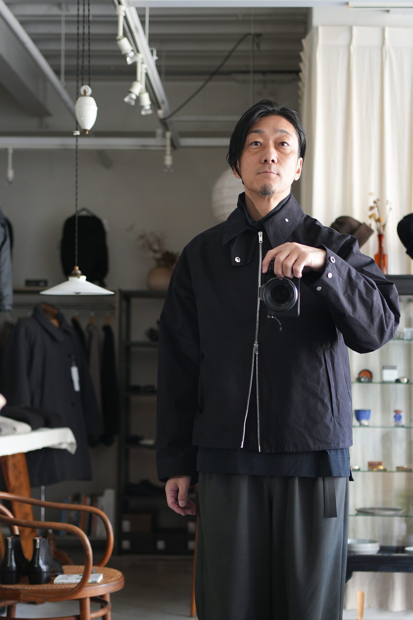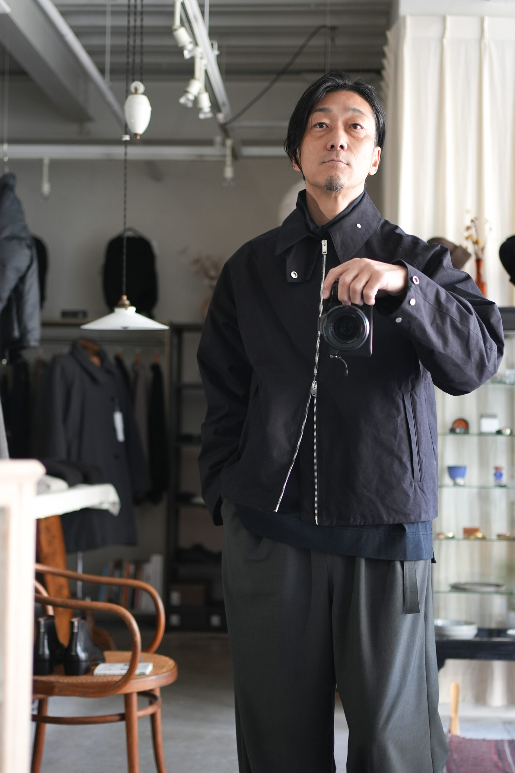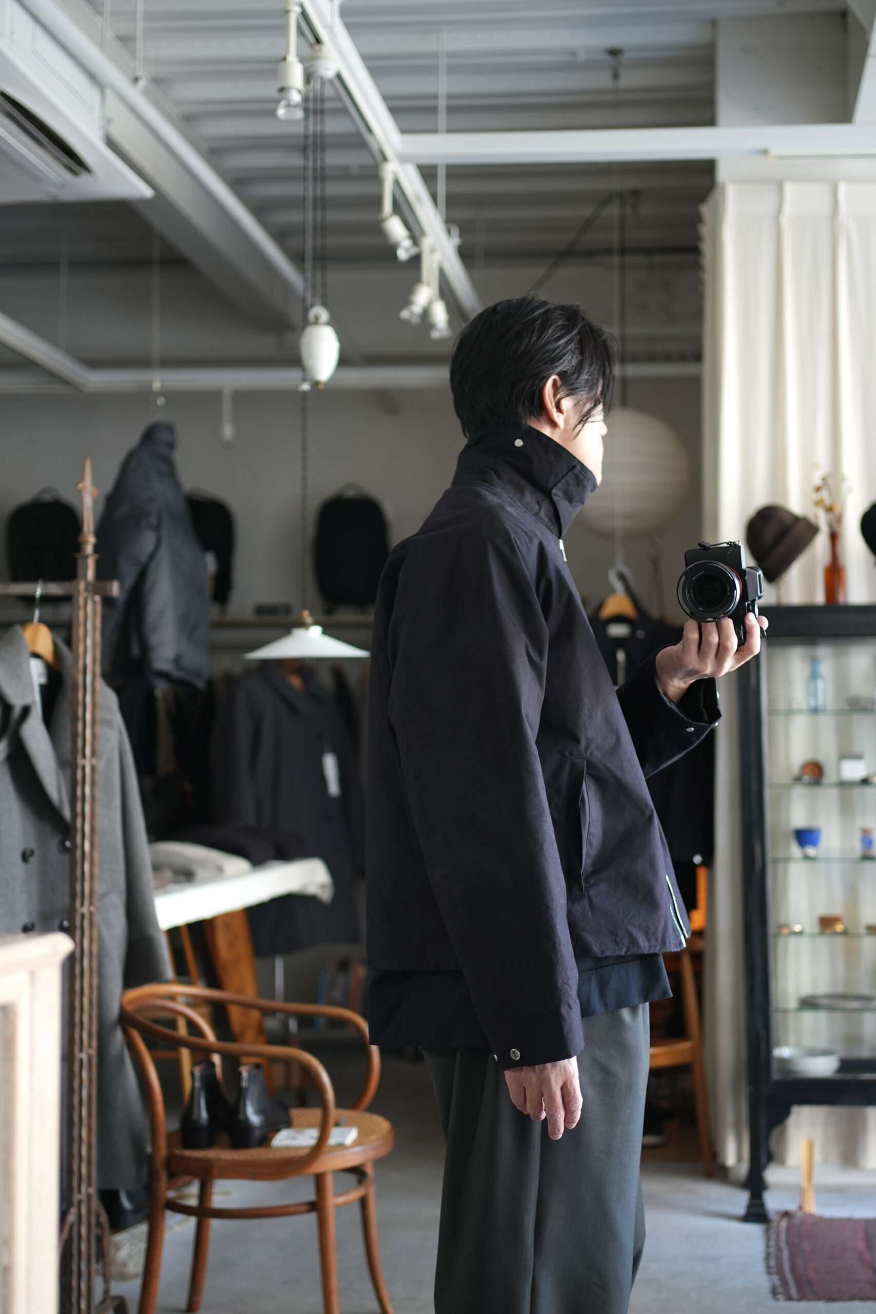 インド産のオーガニック超長綿を使用、80番手の繊細な糸を3本撚り合せた「三子(みっこ)撚り」の糸を生地を織る織機の限界を超えるほど超高密度に織り上げた極めてしっかりとしたコットン生地。光にかざしても明かりが透けないほど超高密で、天然繊維にも関わらず撥水性、耐水性が高いためちょっとした雨であれば浸み込む心配はありません。風を通しにくく、天然素材なのでゴム引きのように劣化もしなければ、オイルドの生地のようにニオイの心配もいりません。蒸れにくく、風も通しにくい生地です。はじめは板のような硬さがありますが、着用を重ねるごとに柔らかく体に馴染んで参ります。秋や春はこれ1枚で、冬はインナーダウンなどと組み合わせることで3シーズン着用が可能。四季折々の移動シーンに配慮したミニマルデザインのジップアップジャケット。