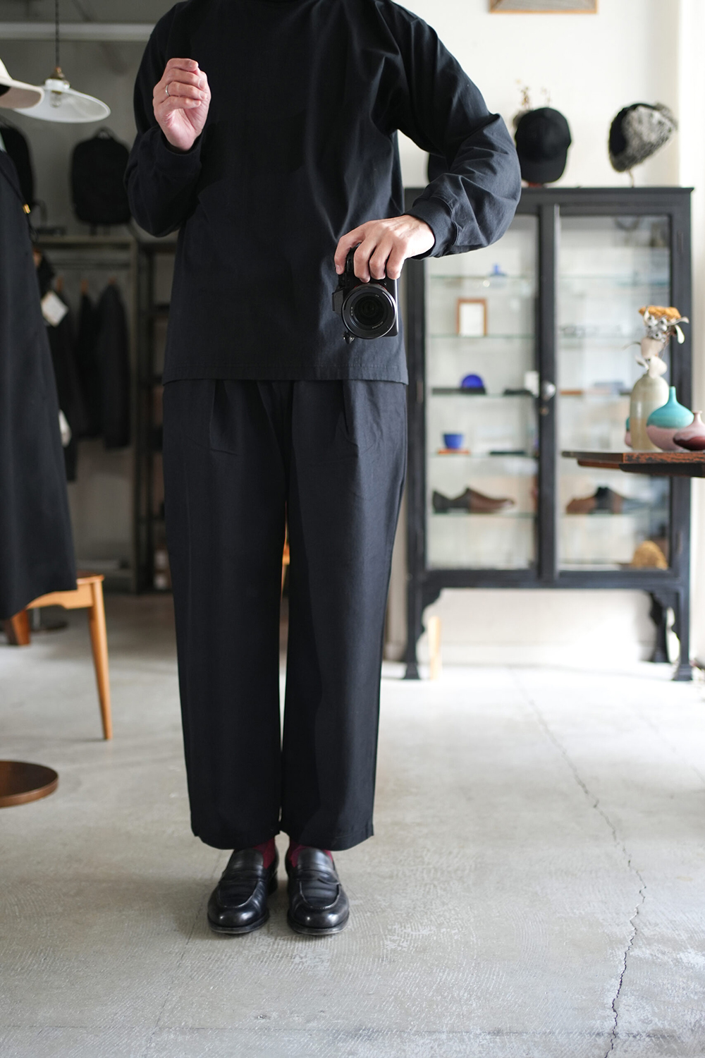 程よくゆったりワイドテーパードシルエット、普段のスタイリングに加えやすい綺麗な生地感、貴重品収納も安心なポケットデザイン、穿き易く洗濯し易く丈夫な生地、スタイリングを選ばず長年活躍、2025年の締め括りにお勧めさせていただきたいパンツです。