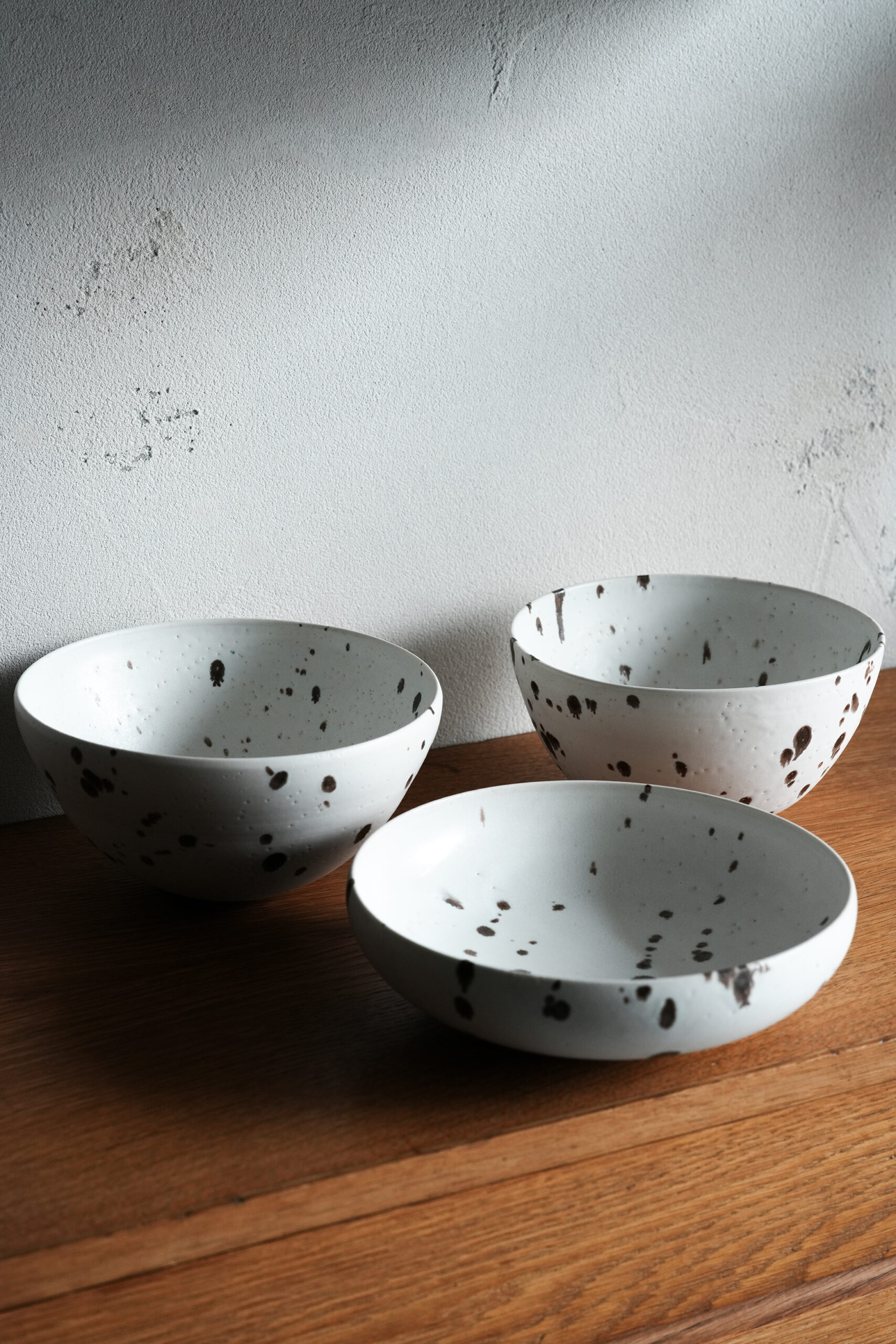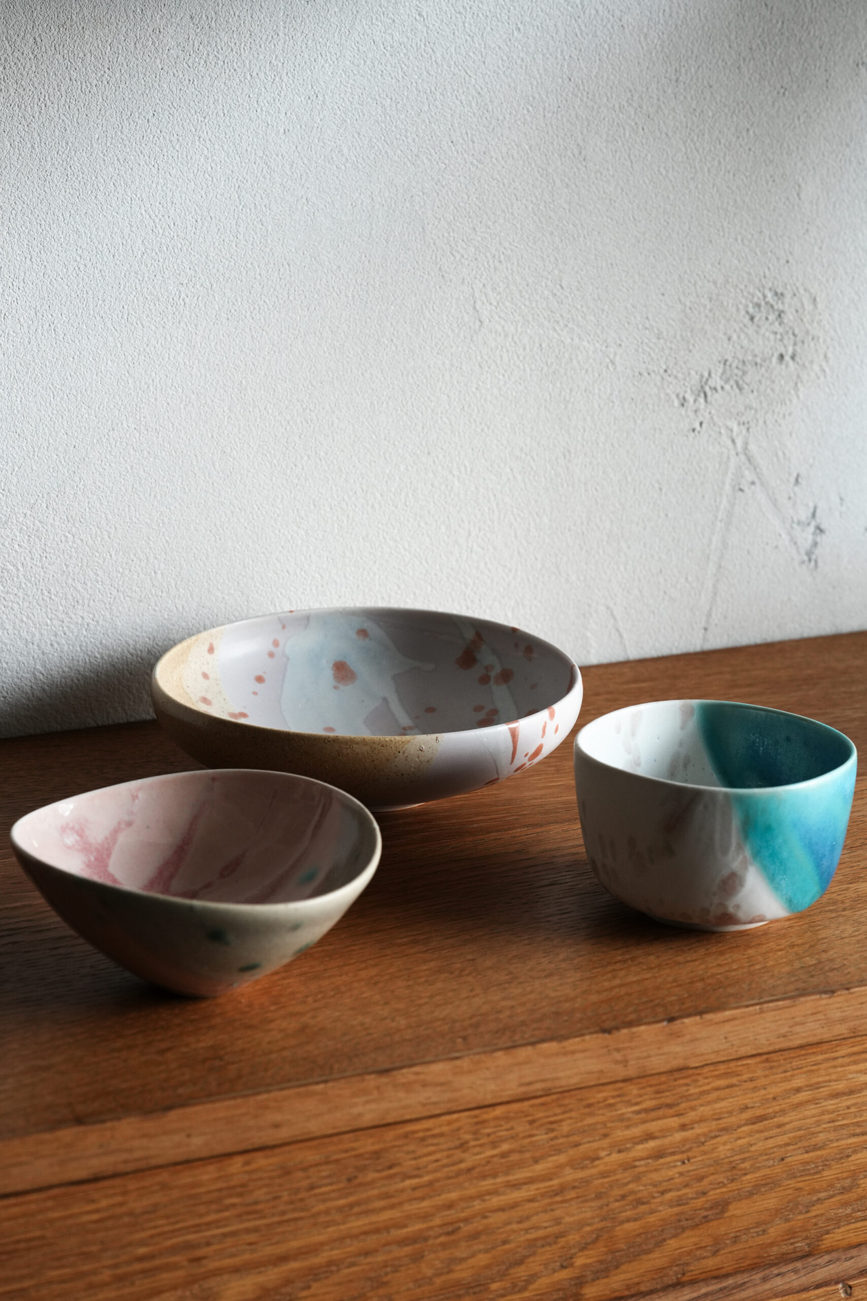 Gift |陶芸家 竹村 良訓さん、新作器入荷 2025.12.08 <HOUSEHOLD> Gift |陶芸家 竹村 良訓さん、新作器入荷いたしました。 年内最後の作品を竹村さんにご紹介いただいての入荷。マグカップ、小鉢、深皿、ダルメシアン釉薬の大ボウルと18cm径の大きな深皿、花器の入荷となります。特に、高さ15cmエメラルドブルー鮮やかな釉薬に茶紫の釉薬を纏った花器は美しさと力強さを感じる大好きな作品です。 本日よりお店出ししております、パートナーさまへのクリスマスプレゼント思案も含めご来店の際ご覧いただけましたら幸いです。
