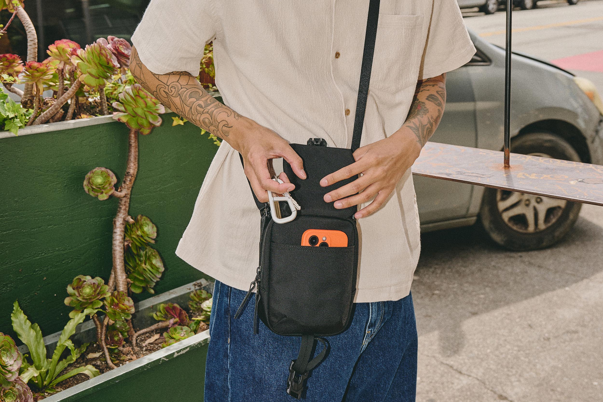 新作コンパクトショルダーバックStreet Sling。「必需品をスタイリッシュに持ち運ぼう」をコンセプトに、洗練されたデザイン、スマートな整理機能、そして高級感のあるディテールを兼ね備えたバックです。1680D CORDURA®バリスティックナイロン(bluesign®認証)、YKK®ジッパー、Duraflex®ハードウェア、軽量ナイロンリップストップライナー(bluesign®認証)、日常の必需品を収納できるスマートなオーガナイザー、Fidlock® マグネット V バックル付きのフロントポケット、フラットなアイテムを収納できる背面スリップポケット、調節・取り外し可能なクロスボディストラップ、ギアを取り付けられるサイドループ、掴みやすいトップハンドル。