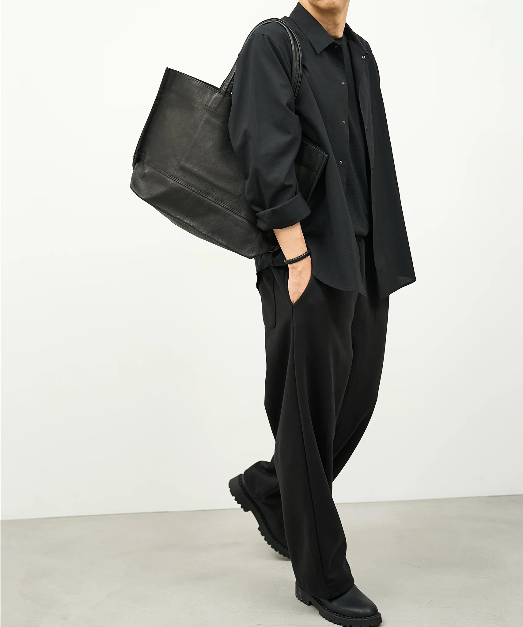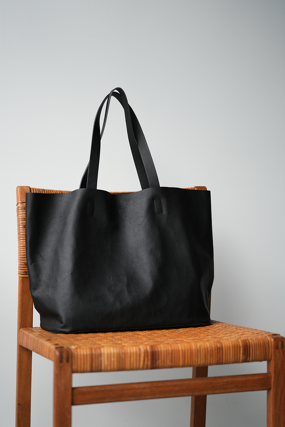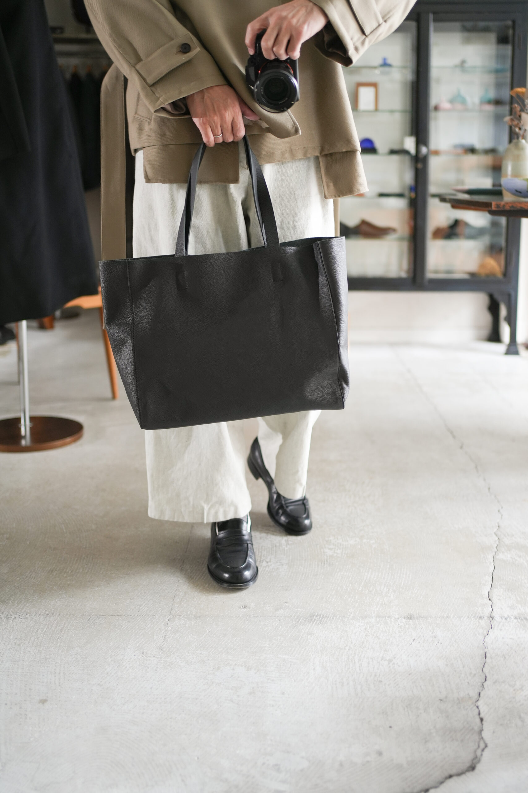RENのレザートートバッグの中で最も大きいワイドトートL。軽量な素材、ピッグスキン・HALLIE(ハリー)を使用しているため、大きさの割にはとても軽量な仕上がり。シンプルなデザインは性別や年齢を問わずに似合います。ゆったりと使える大きなサイズ。通勤バッグとしても、プライベートのお買い物やお稽古バッグとしても活躍します。使用しているピッグスキン・HALLIE(ハリー)は、軽量ながらに強度のある素材。軽くても、荷物の重さに負けない耐久性があります。お仕事用具をたっぷり入れても、十分に耐えることのできるタフなレザー。ビジネスシーンでは、ノートパソコンやファイル、タンブラーやカメラなど、荷物が多いときでも余裕のある収納力。通勤バッグとしても選ばれています。たっぷりの収納力は、お買い物や旅行バッグとしてもぴったり。使い込むほど、ヴィンテージ感のある風合いへと変わっていきます。使うことで自然とうまれる革の艶は、使い方や使う人により変化の過程もさまざま。やわらかな質感は、より、くったりと。しなやかな表情と軽い使い心地は、布バッグのように思えるほど。