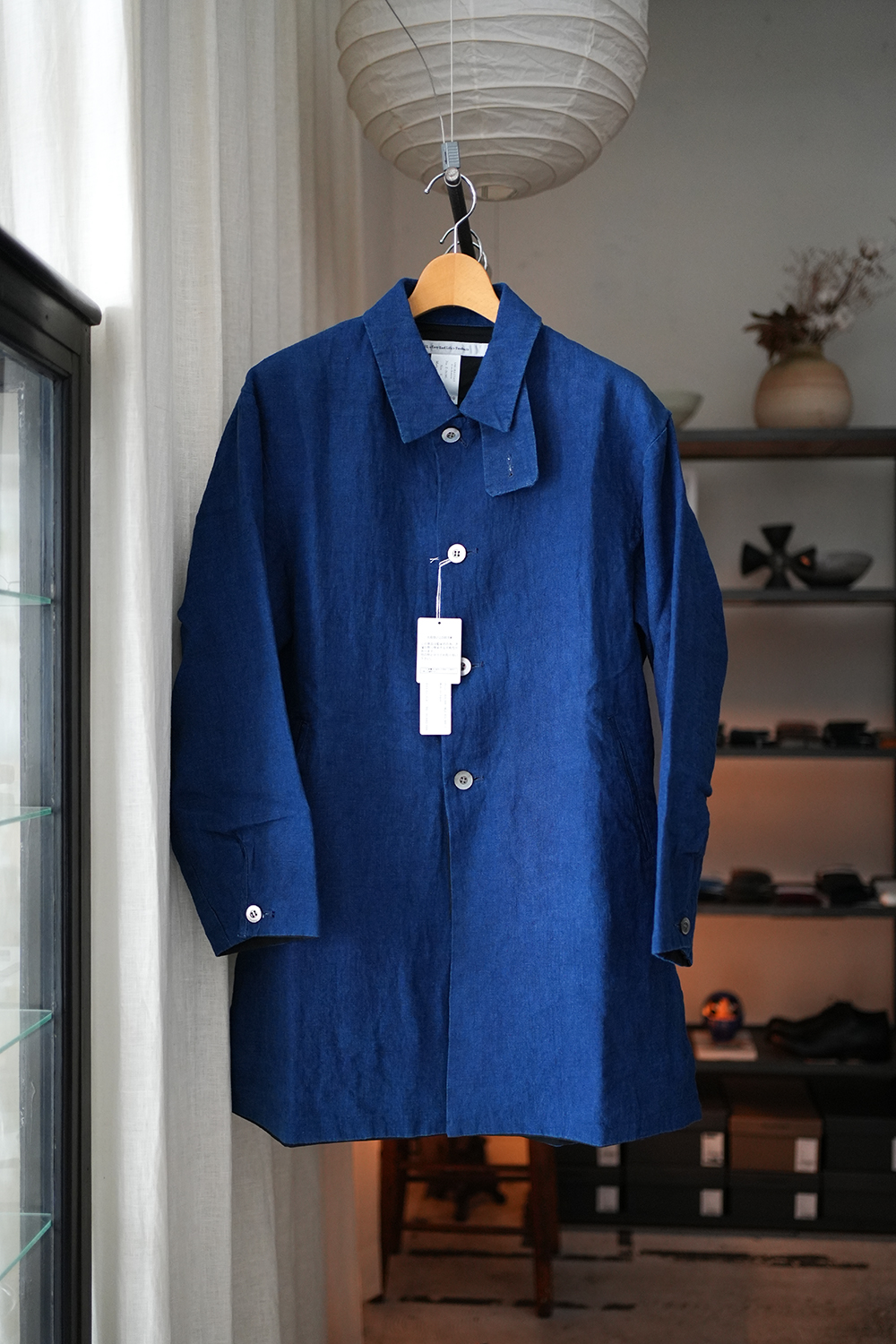 サクラコート藍を込めて。過去に発表していたインディゴ染めの”サクラコート 藍を込めて”をリネン100%に本藍を染めた生地を使用したプロダクト。