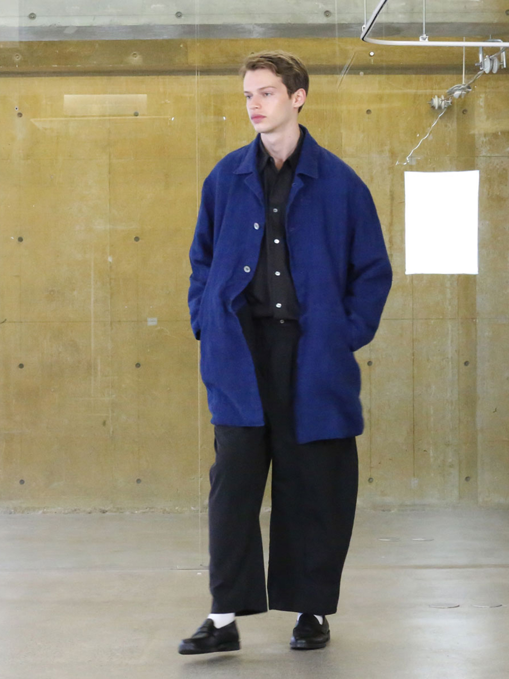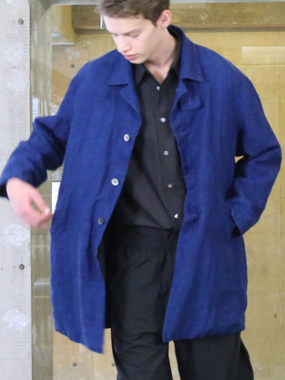 サクラコート藍を込めて。過去に発表していたインディゴ染めの”サクラコート 藍を込めて”をリネン100%に本藍を染めた生地を使用したプロダクト。