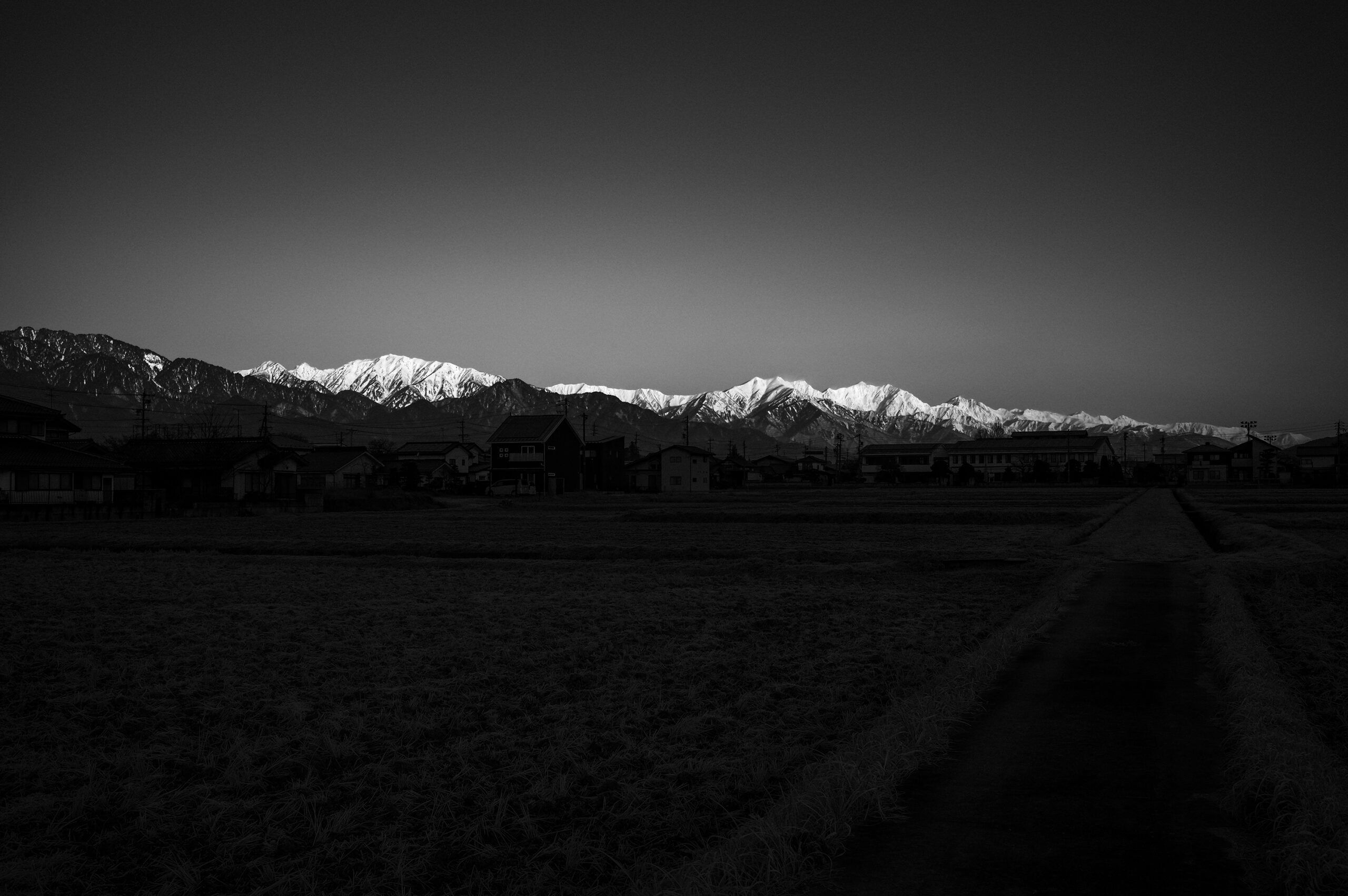 真冬と言える1月、今朝は快晴なれどアルプスの姿は僅かに烟っていた。