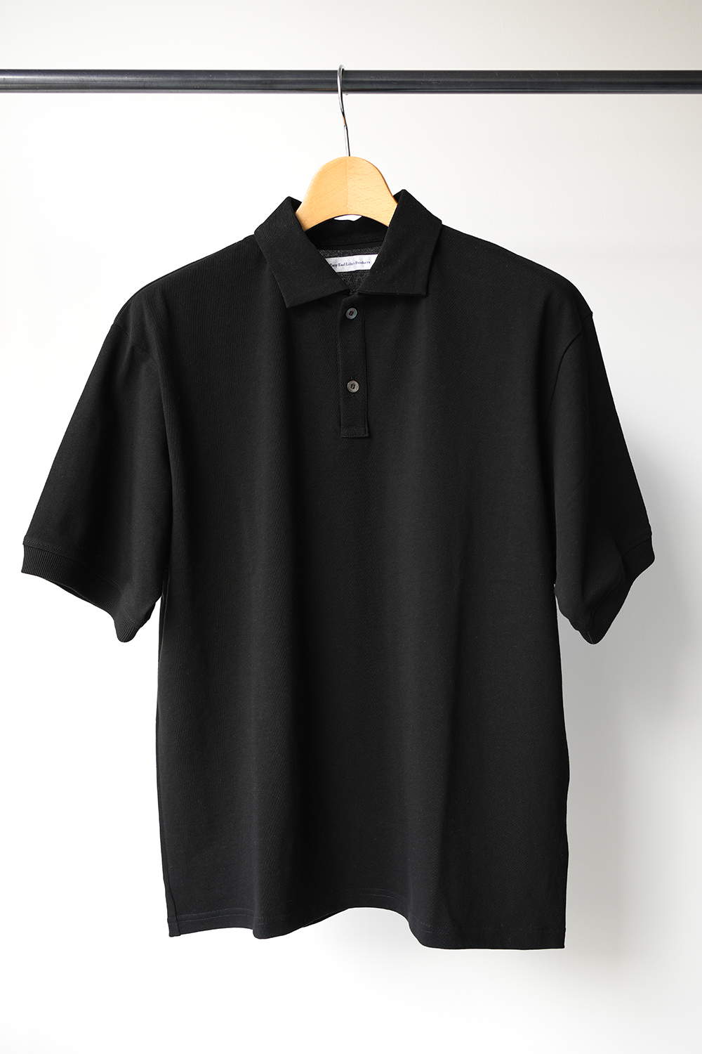強撚糸を使ったトライタッチなPOLOシャツ。共地襟にすることで首へ沿った襟になり、ジャケットなどとの相性も良い。