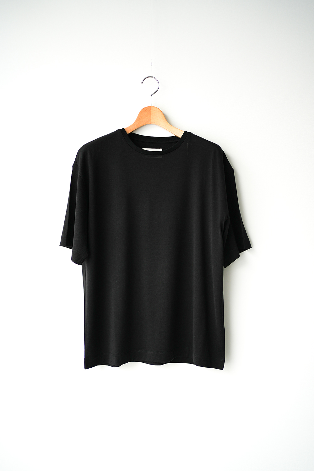 着る人を選ばず、1枚着としてもインナーとしても活躍する「Short Sleeve Tee」。デザインはミニマルに抑え、シルエットの美しさを際立たせています。襟幅をあえて細く設計することで、首元に程よい抜け感とリラックスした印象をプラス。ゆとりを持たせた身幅から生まれる美しいドレープが素材の上質さと自然な光沢を引き立て、この素材ならではの表情を存分に楽しめるシルエットです。トレンドに左右されず、幅広いシーンで活躍する“究極のベーシック”なウールTシャツ。上質なカシミヤに匹敵する15.5マイクロンの極細ウールによる、肌に触れた瞬間の滑らかさと上品な光沢が魅力です。暑い季節は快適な一枚着として、寒い時期は保温性に優れたインナーとして、シーズンを問わず活躍する汎用性の高い一着。南米ウルグアイでデザイナー自らが厳選したスーパー160’sウールを使用。15.5マイクロンの極細原料をワタの段階で防縮加工し、90番手の糸に紡績したスーパー160’sウールの防縮天竺。ハイゲージで編み立てることで、さらりとした肌触りと優れた通気性を実現。真夏まで快適に着用でき、素肌に直接触れても心地よいスムースなタッチが特徴です。家庭での洗濯可能な最高級のオリジナルウールTシャツ素材です。
