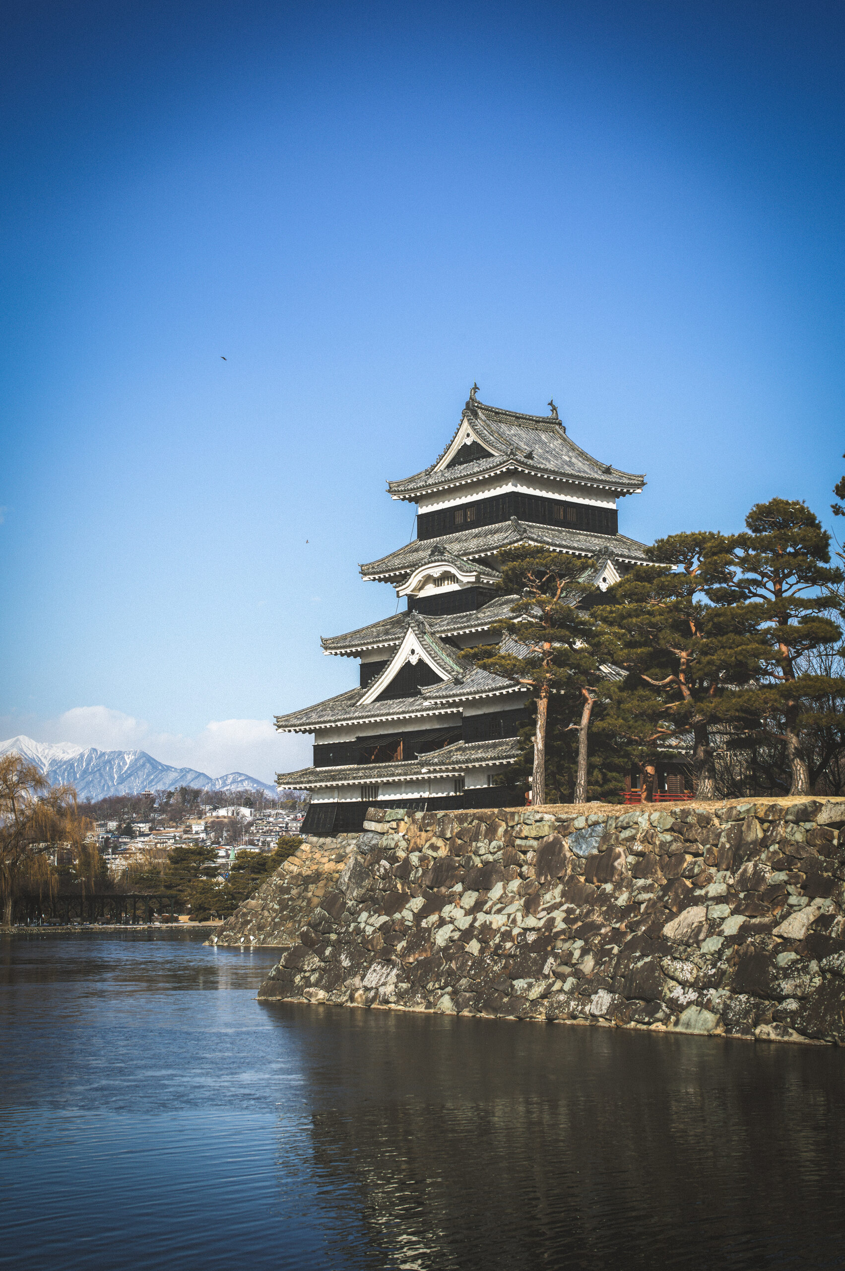 黒と白の櫓、石と木共演、コンコンと湧く湧水のお堀、晴れ渡った空と凛とした空気、日差しを受け輝くお城群の姿には何故かしら清い気持ちを覚える。