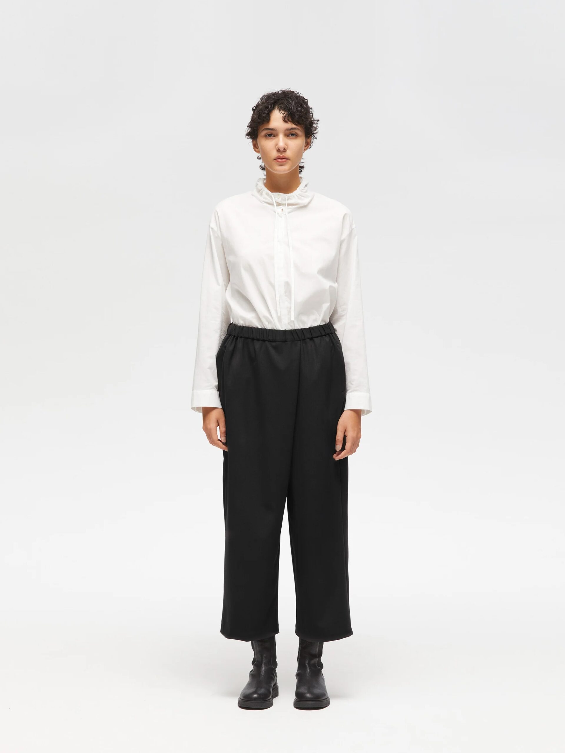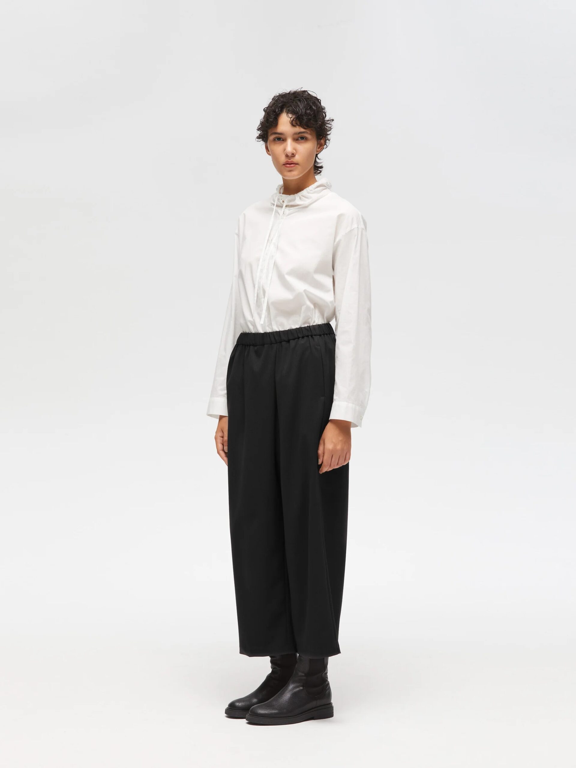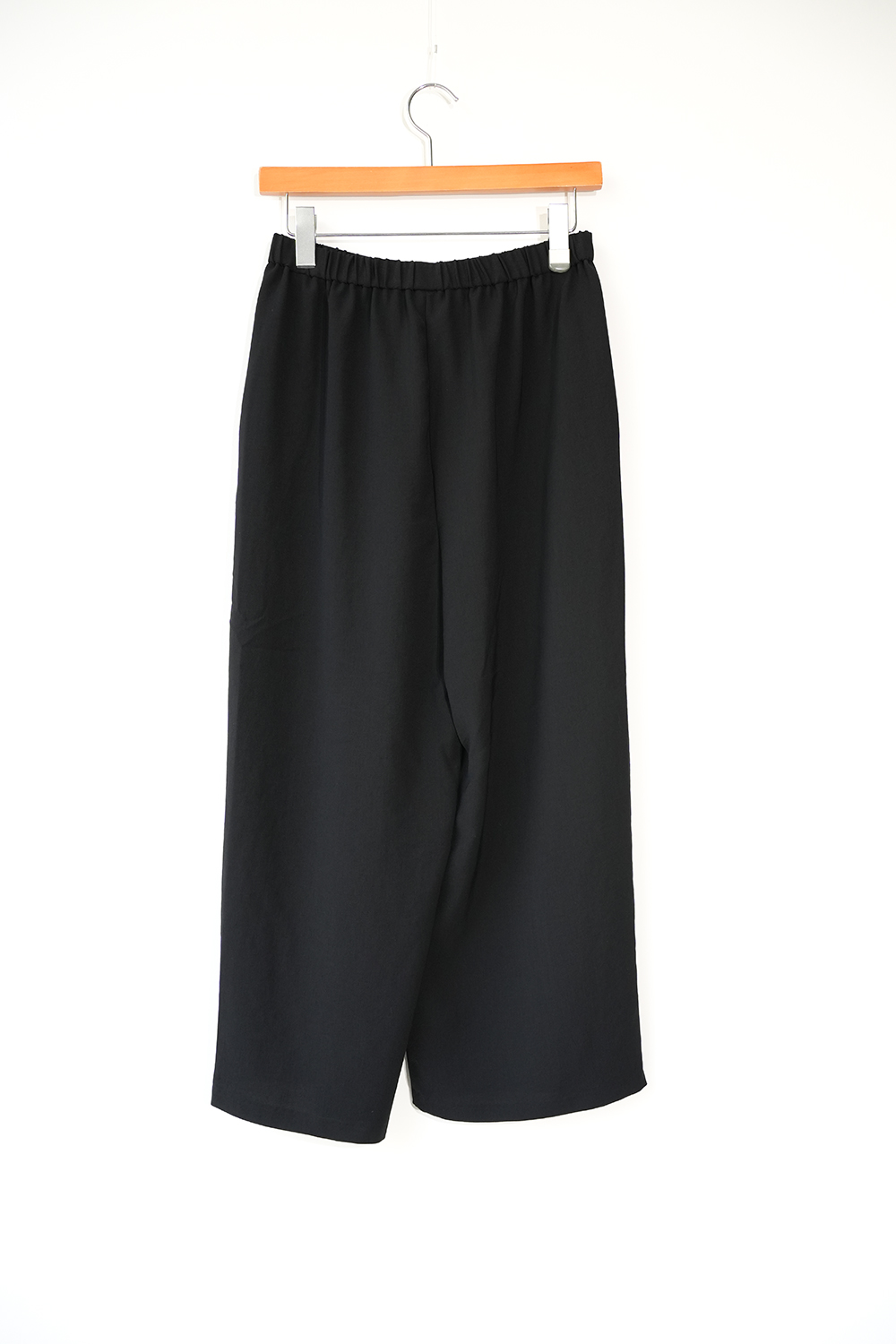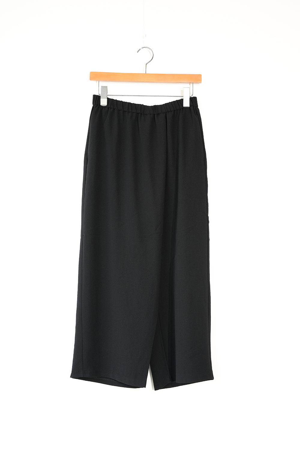 フロントのラップデザインが特徴のイージーパンツ。程よくワイドでルーズなシルエットが、フレアなラインとしなやかな落ち感を生み出します。フルレングス設計で、ウエストは全ゴム仕様のため快適な穿き心地。丈感も多少調節可能です。ドライツイルワッシャー素材、さらっとした肌触り、シワになりにくい合繊素材で肌馴染みが良く上品な光沢と落ち感が特徴。サイドポケット付き。