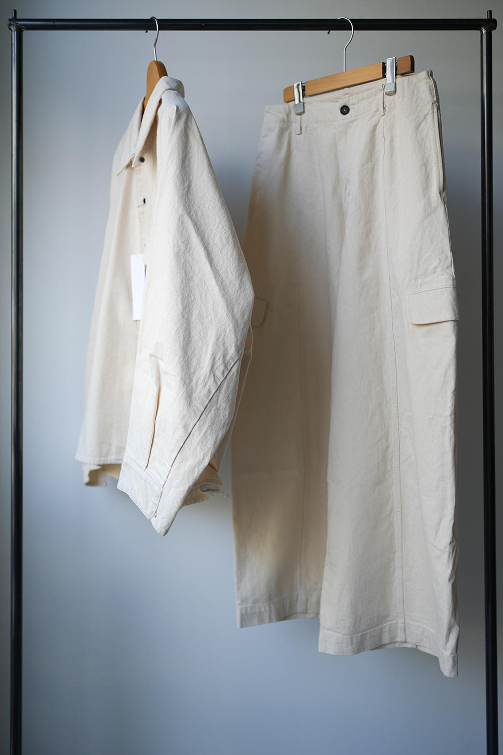 「my beautiful landlet」PIGMENT PRINT WASHED DENIM SHIRT & CARGO PANTS、入荷。
