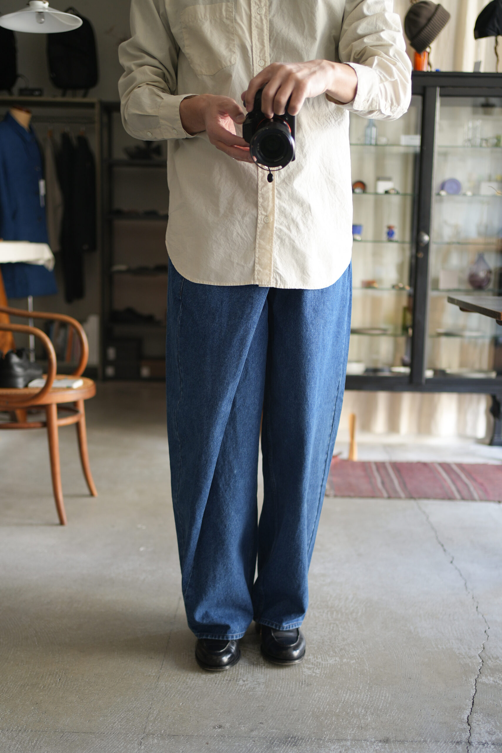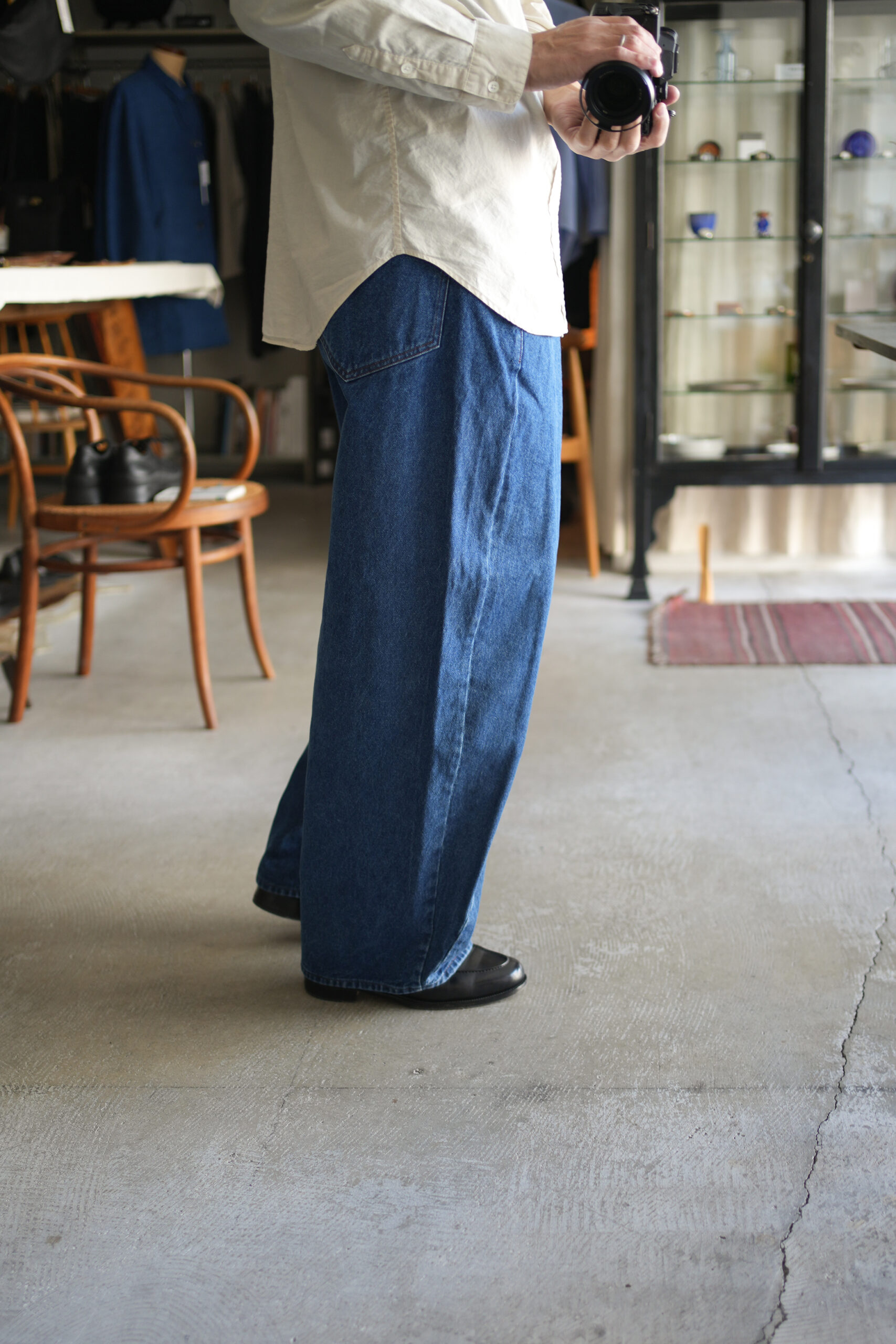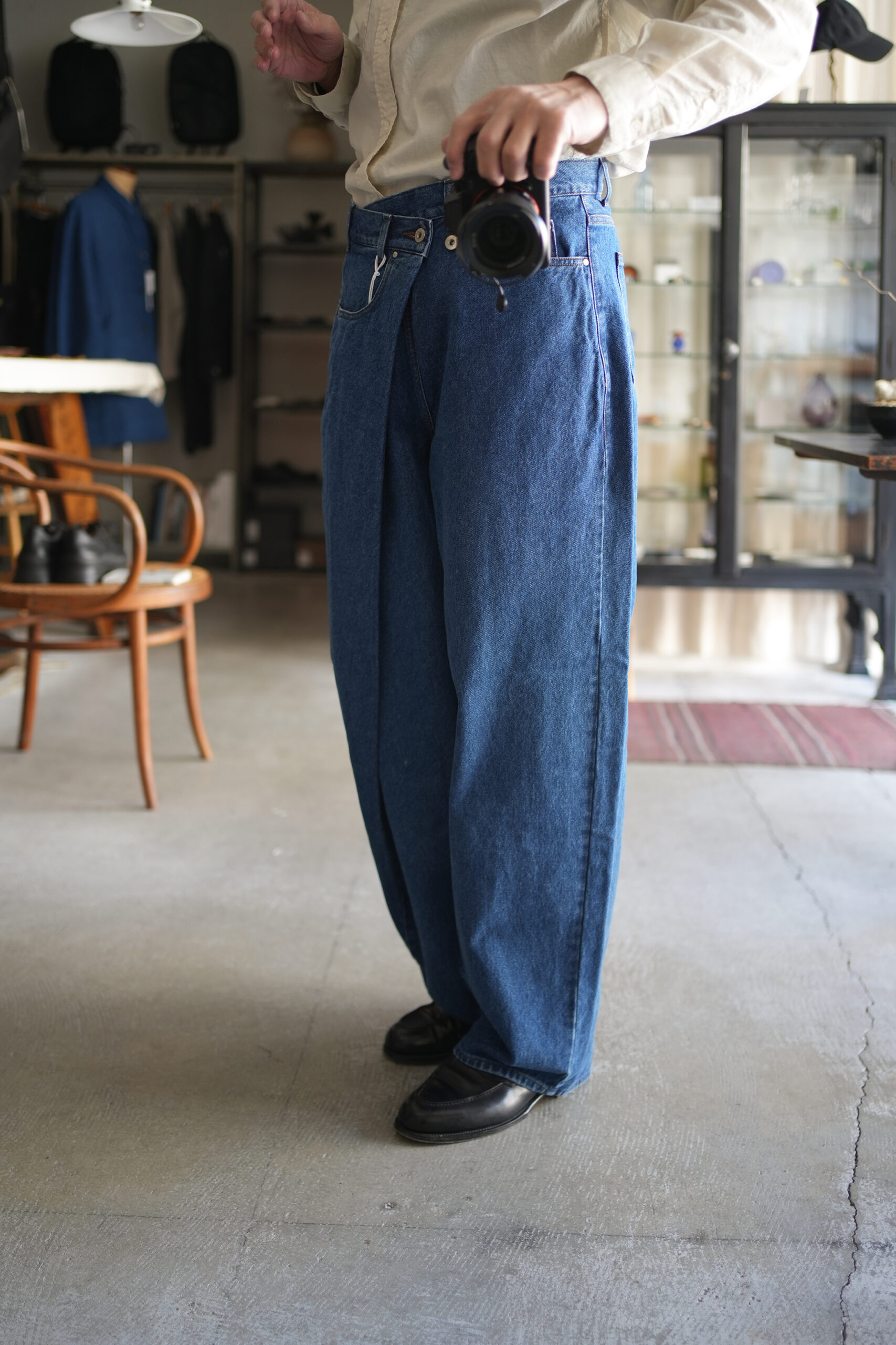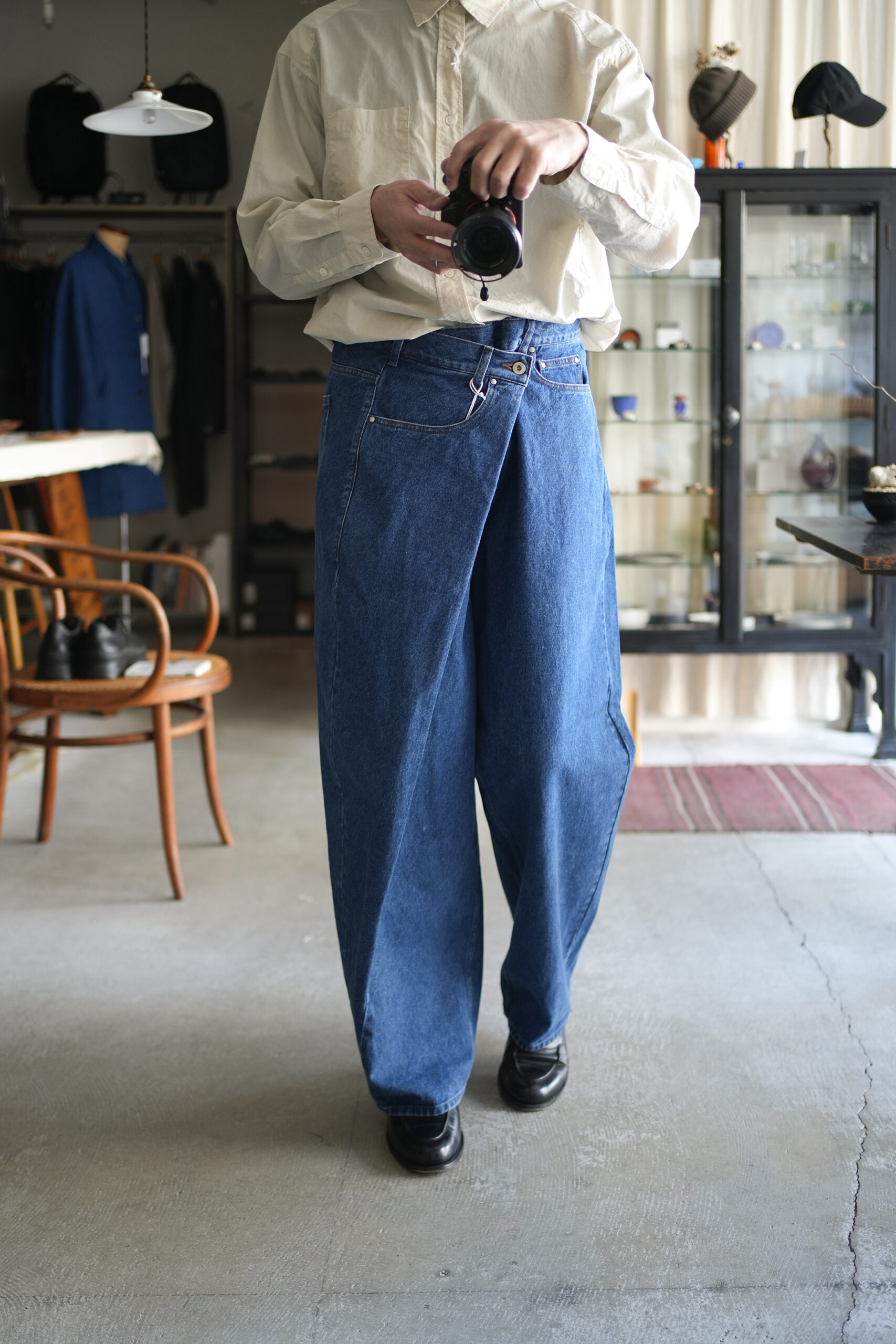 「UNDECORATED」AIRY COTTON L/S SHIRT & WRAPPED DENIM JEANS