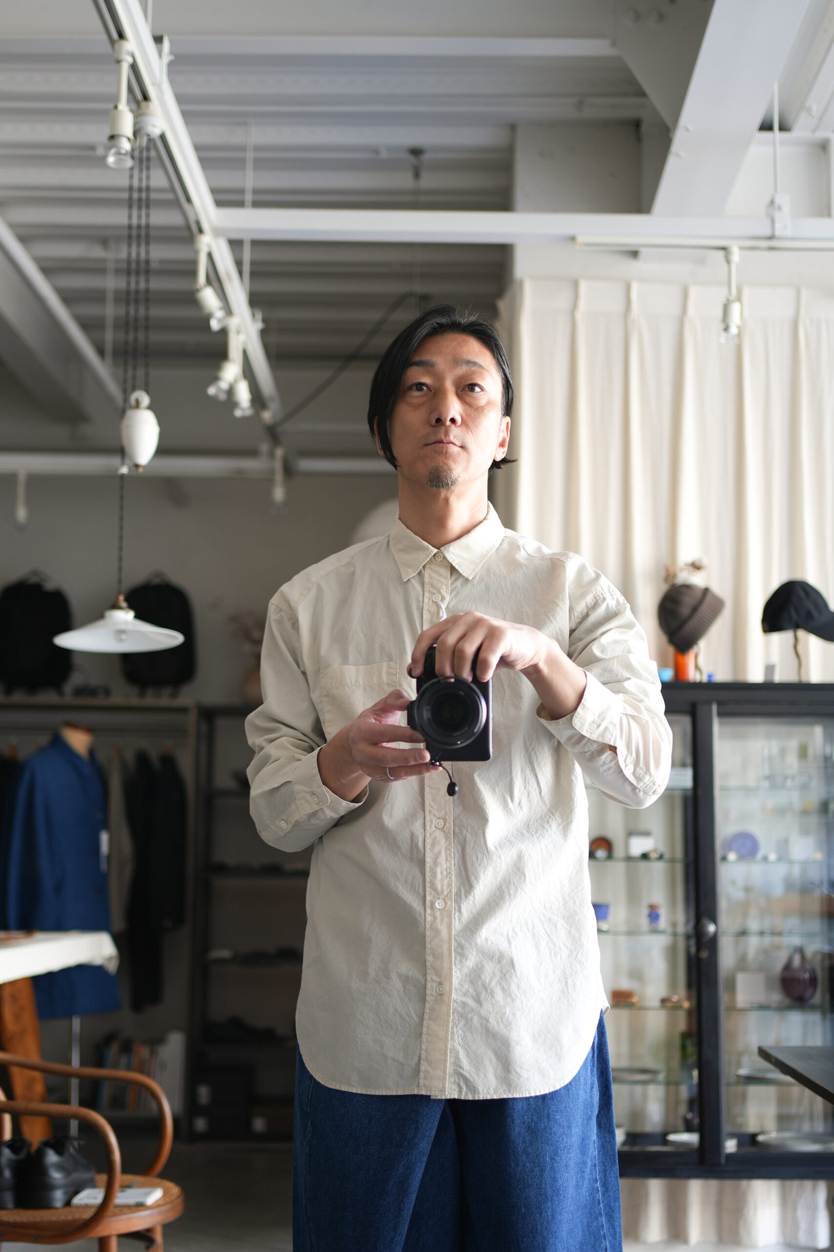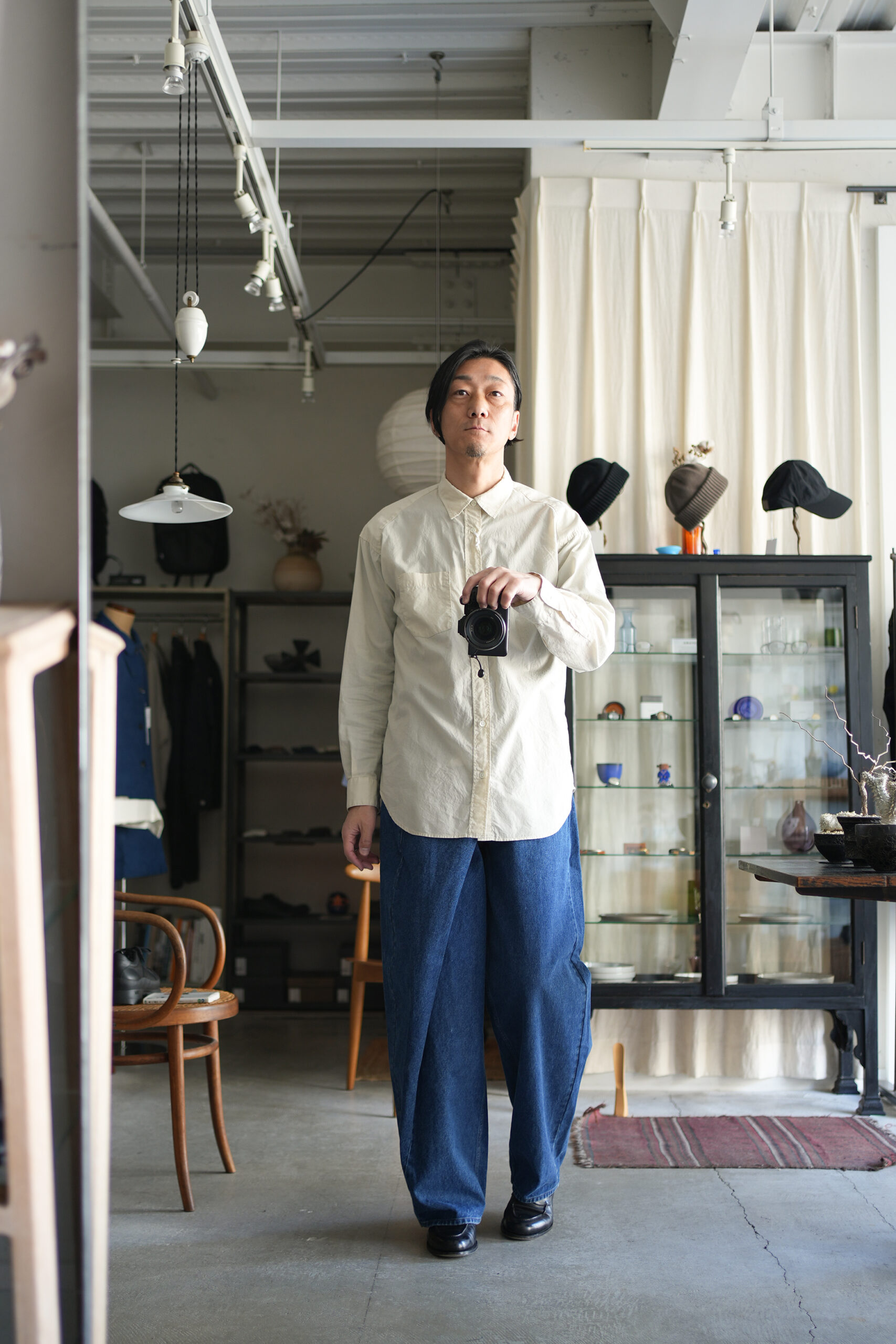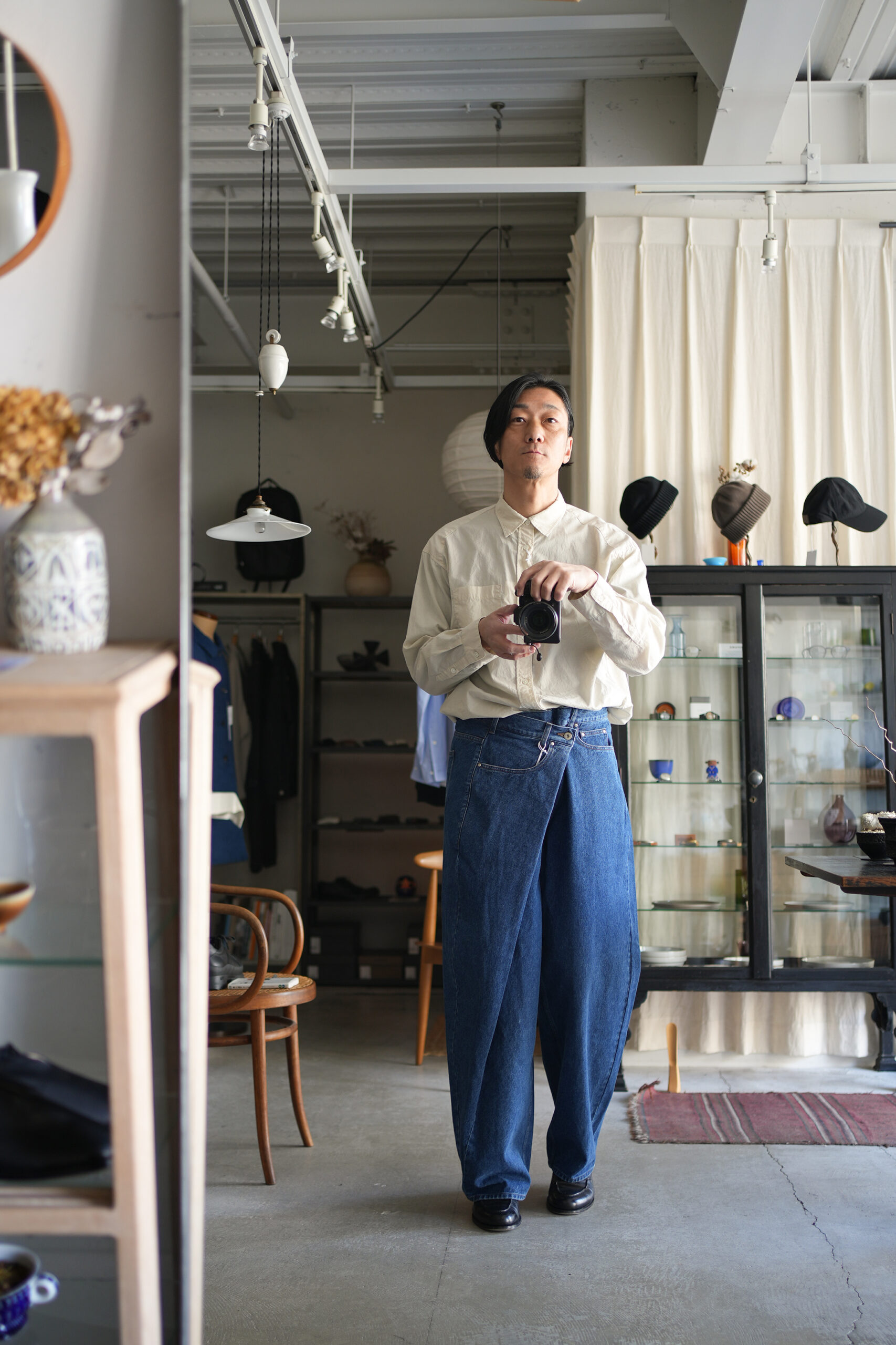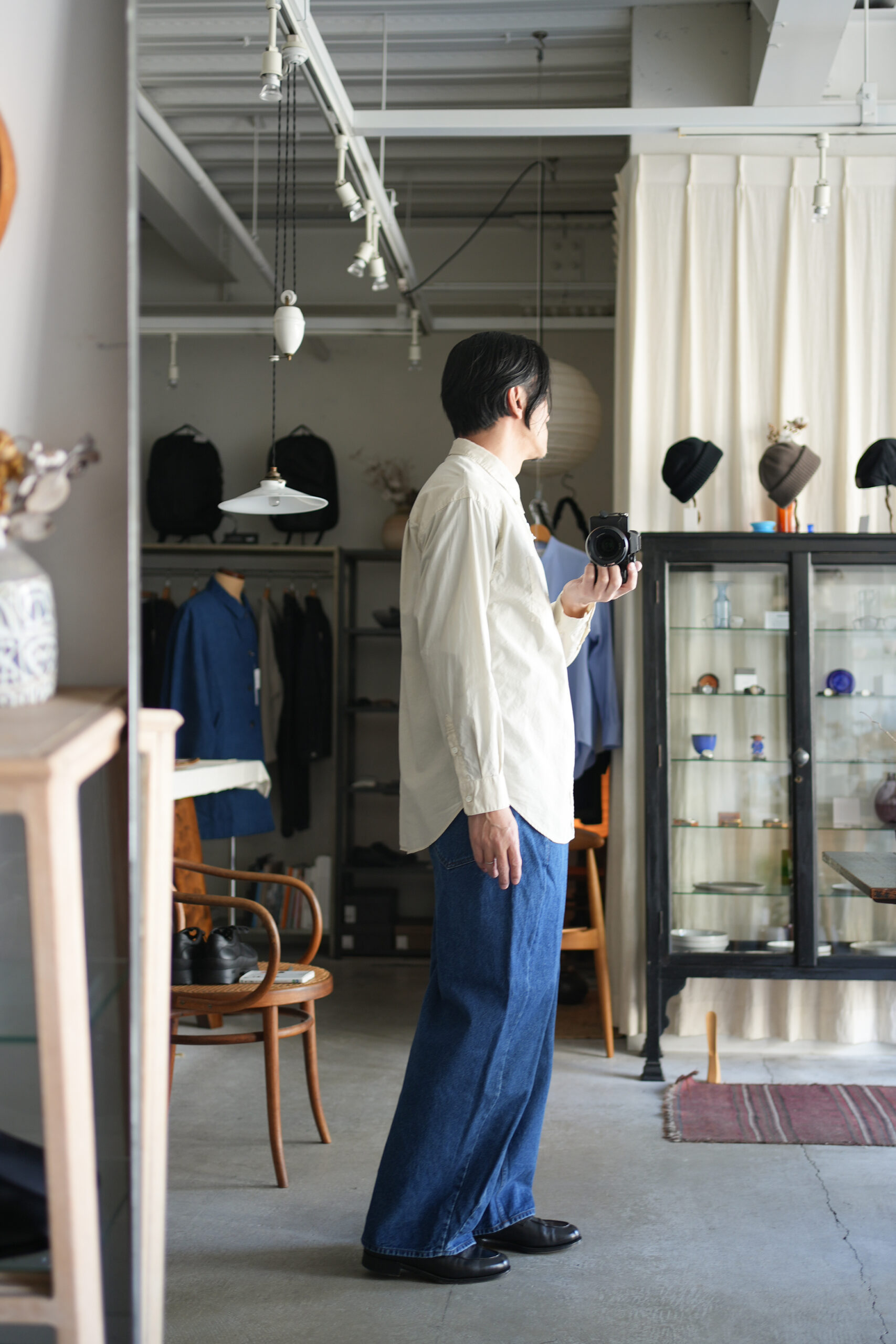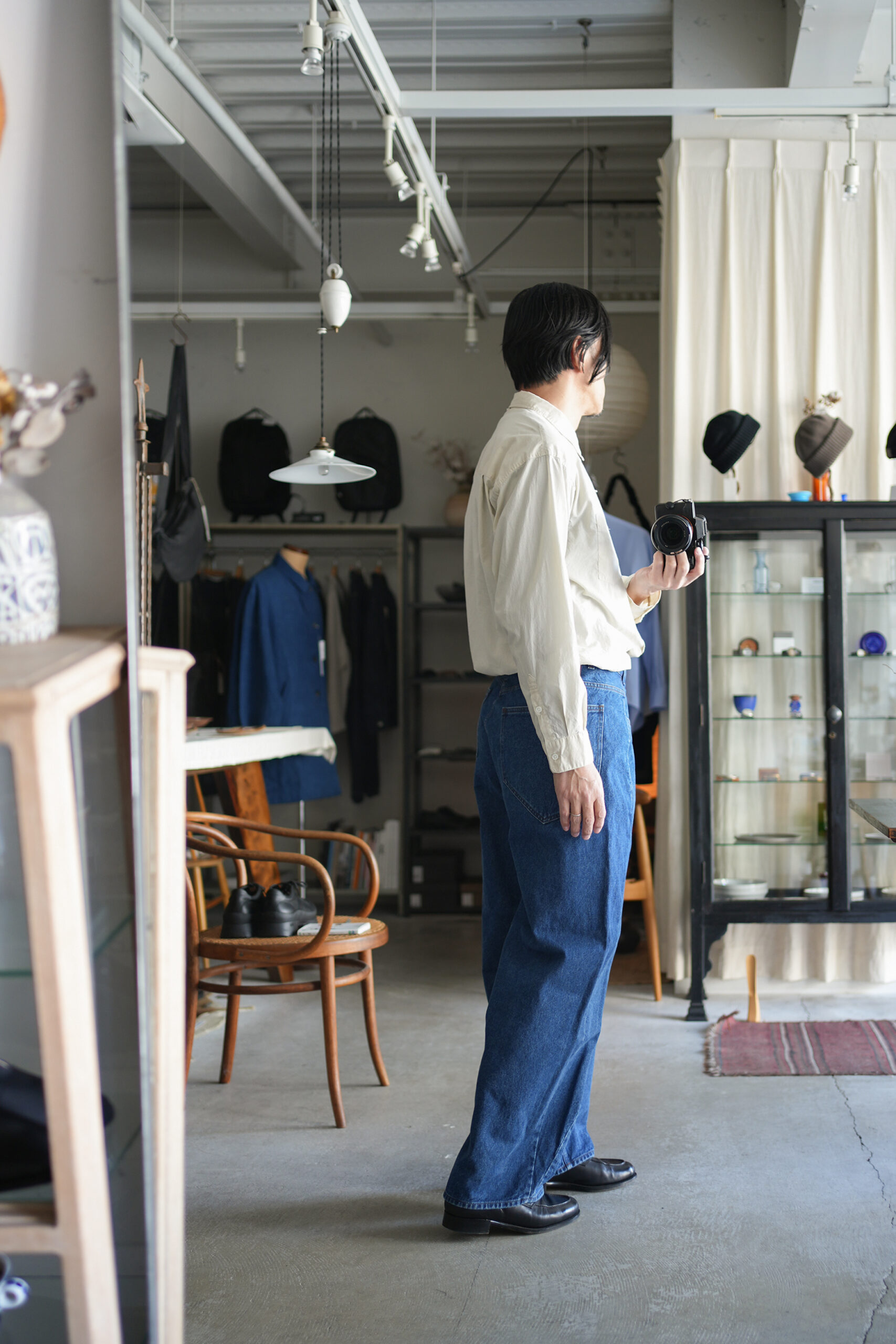 「UNDECORATED」AIRY COTTON L/S SHIRT & WRAPPED DENIM JEANS