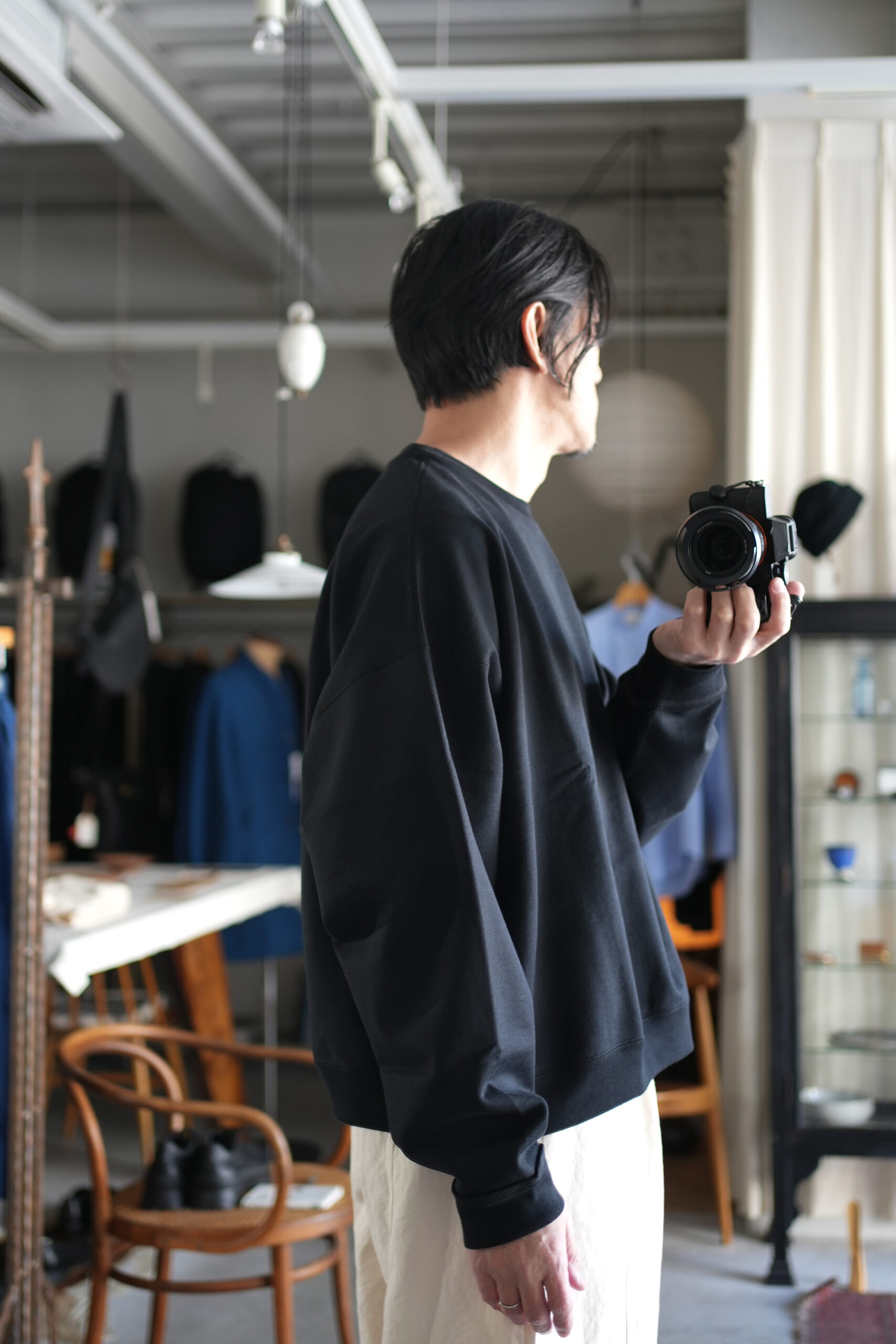 ベーシックなクルーネックスウェットを、現代のスタンダードとも言えるオーバーサイズシルエットで再構築。裾のリブがソフトにシルエットを引き締め、絶妙なドレープ感を演出。丸胴による脇の縫い目のない美しいシルエットに加え、後ろ身頃をやや長めに設定。肩が自然に落ちる、軽やかでリラックスしたラインが生まれ、360度どこから見ても美しいフォルムを実現しています。緻密に計算されたシルエットが特徴のクルーネックスウェット。着るだけでコーディネートに洗練されたモダンさをもたらす、魅力的なアイテムです。ハリコシのある上質な生地が、そのユニークなラインを鮮やかに表現。現代的なムードに調和したシルエットが、新鮮なセンスと視点をもたらし、多彩なスタイリングの可能性を広げます。厳選されたオーガニック・ピマコットンを使用。毛羽を抑えたコンパクトヤーンの繊細な糸を双糸に撚り合わせ、吊り編み機で編み上げた贅沢な生地です。一般的なスウェット地と比べ、ピリング耐性に優れ、上品な光沢感が長く持続。吊り編み機特有のふんわりとした風合いと、緻密に詰められたタフな質感が絶妙に共存。空気を含んだような豊かな膨らみと、しっかりとしたハリコシのある風合いが、着る人を魅了します。