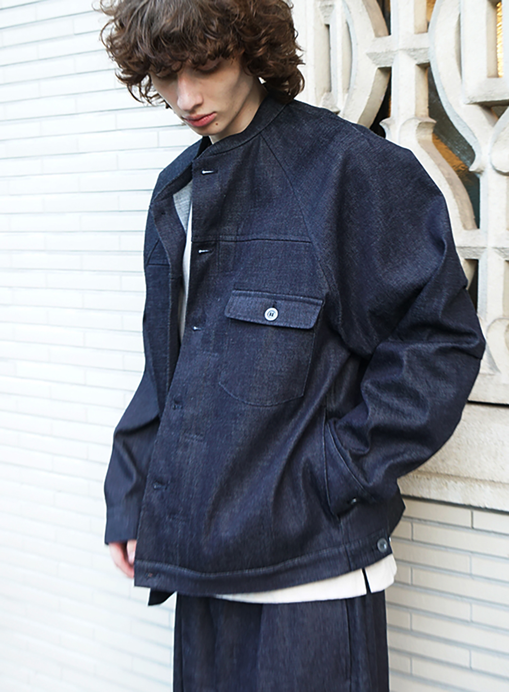 「VU」denim stand collar work jakec。