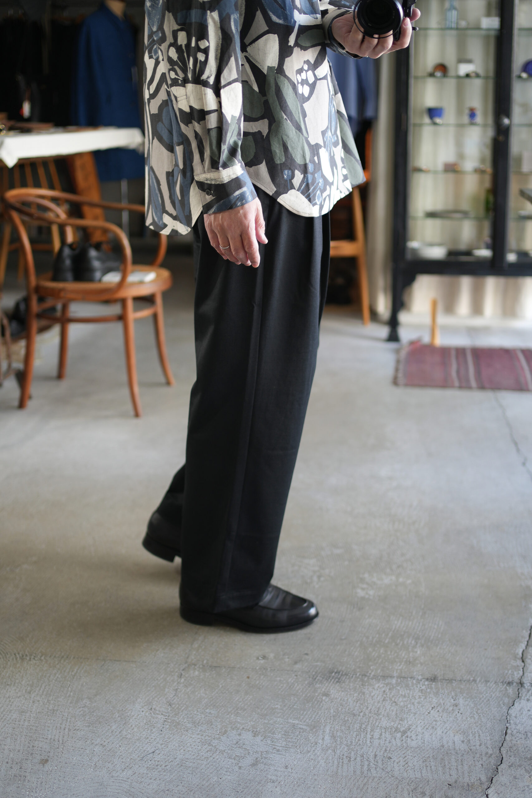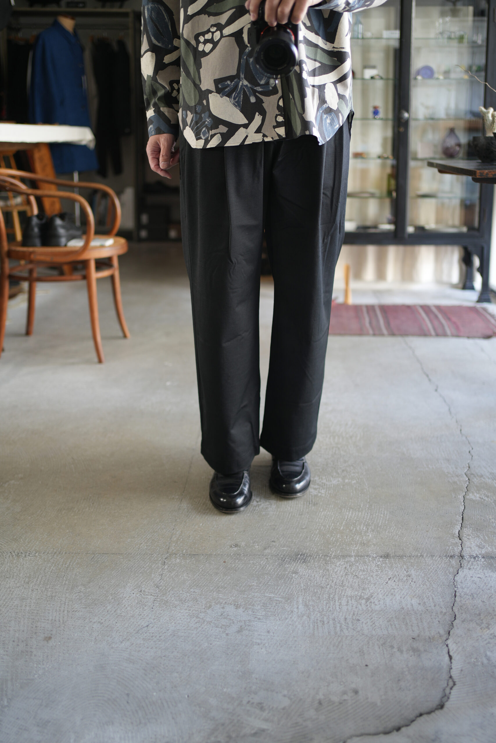 「my beautiful landlet」FLORAL PIGMENT PRINT OVERSIZE SHIRT &「KANEMASA PHIL.」36G Wool Trousers