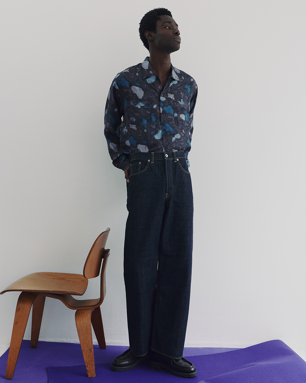 トルコ産のオーガニックコットンを使用した13.5ozセルビッチデニム、ムラ糸特有のヴィンテージライクな表情の生地。ワンウォッシュ仕上げによって生地に自然な表情が生まれ、着用を重ねるごとに味わい深い経年変化を感じらるデニム生地です。
