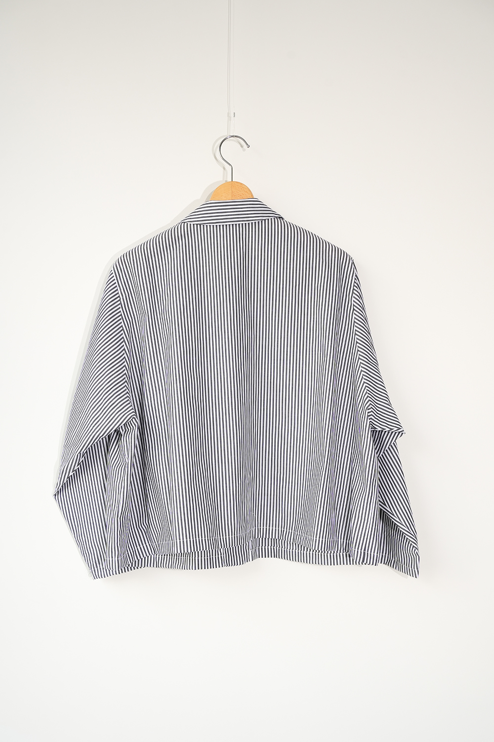 ロンドンストライプシャツ生地で仕立てたカバーオールジャケット。春から夏まで長く活躍するライトアウターです。