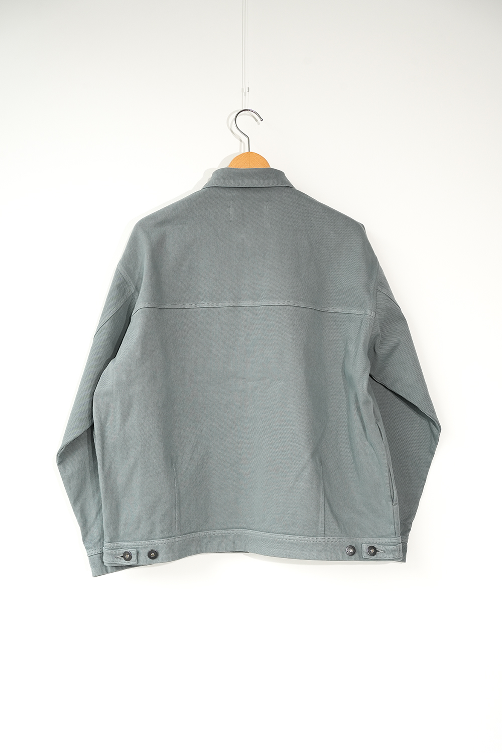 布帛では実現できないニットならではのストレスフリーなデニムシリーズ。独自のストレッチインレイ素材を用いたトラッカージャケット。ハイゲージで編み立てることで、ムラ感が強くハリのあるシャープな表情に仕上げています。編み素材ならではの柔らかい肌当たりと伸縮性を持ち、優れた着心地を実現。オーセンティックな形をベースに、前ヨークをなくしポケットも最小限に削ぎ落とし、軽い印象に仕上げています。アウター使用は勿論のこと、シャツ感覚で気軽に羽織れるアイテムとして重宝します。