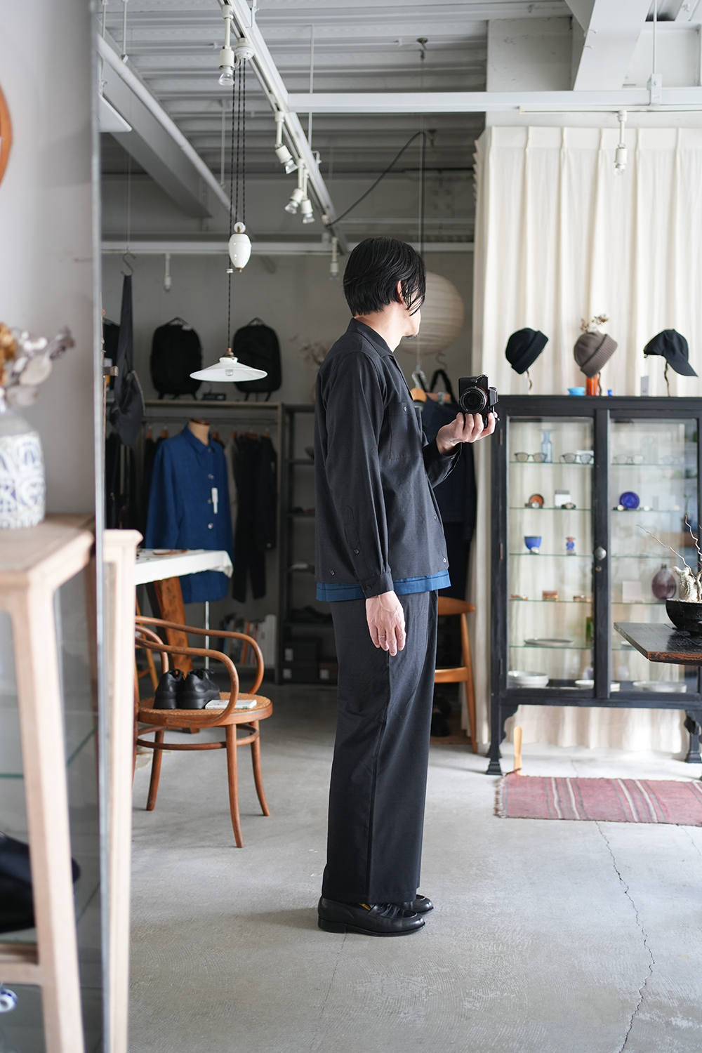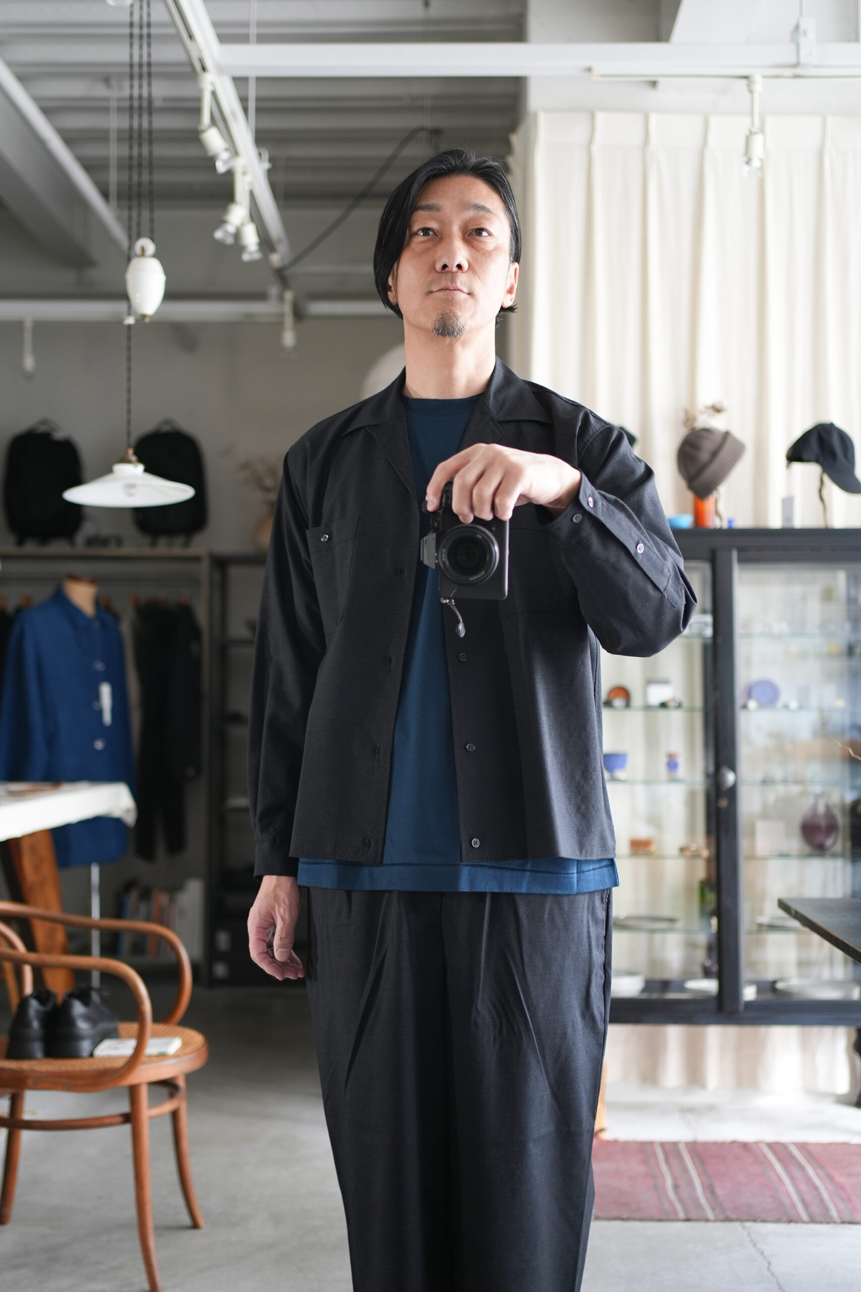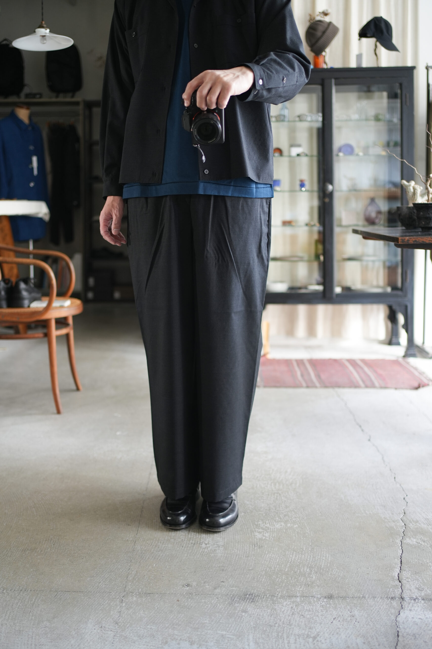 「marka」WOOL TROPICAL WASHER DOUBLE POCKET OPEN COLLAR SHIRT & WIDE CYLINDER FIT EASY PANTS